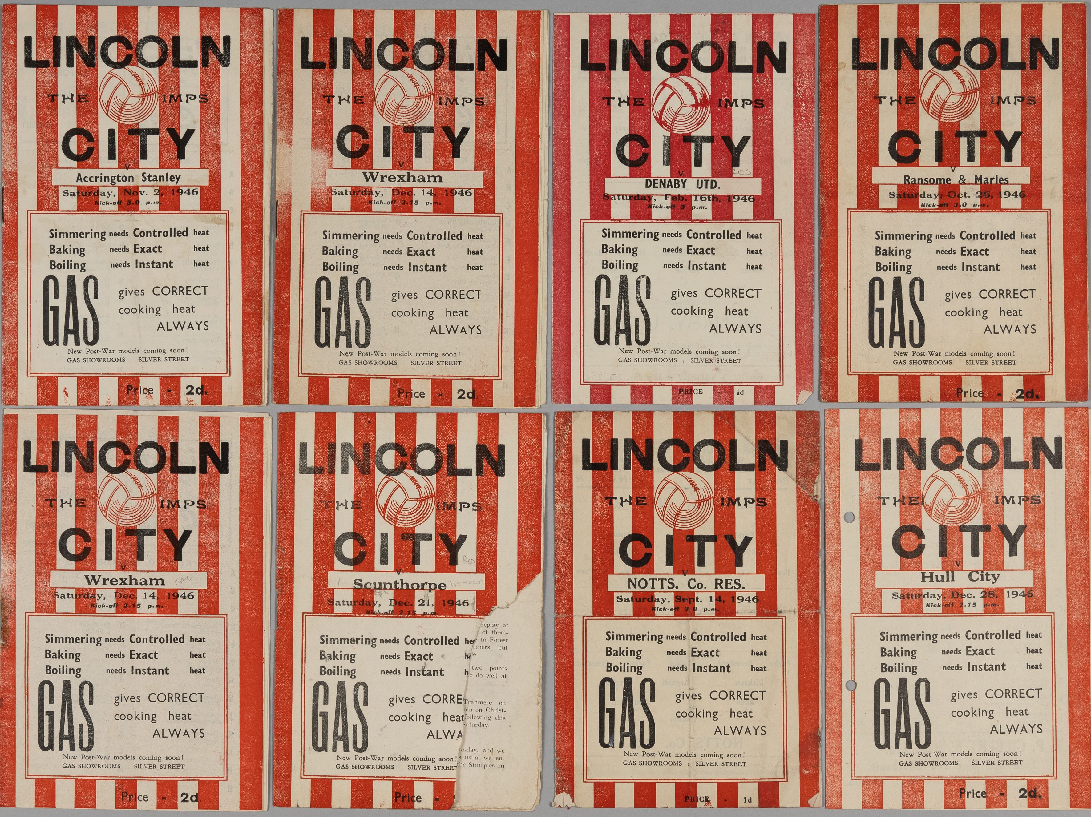 A good collection of Lincoln City home match programmes from 1944 to 1961, including Bradford Park Avenue Res., 1960, Nottingham Forest 1947 etc., approx. 350 programmes