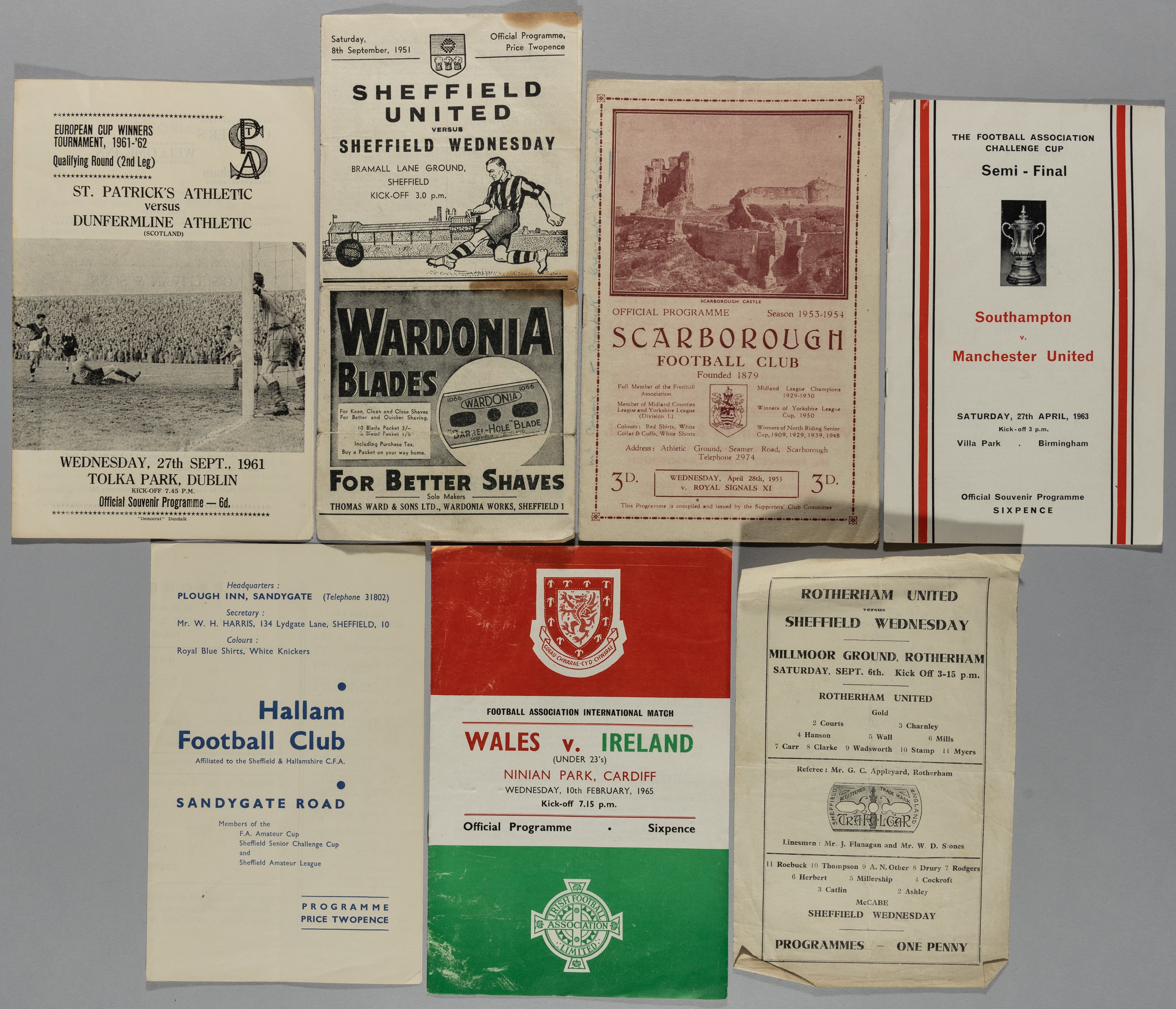 A selection of programmes including Rotherham v Wednesday reserves single sheet featuring George McCabe in goal for The Wednesday, (7)
