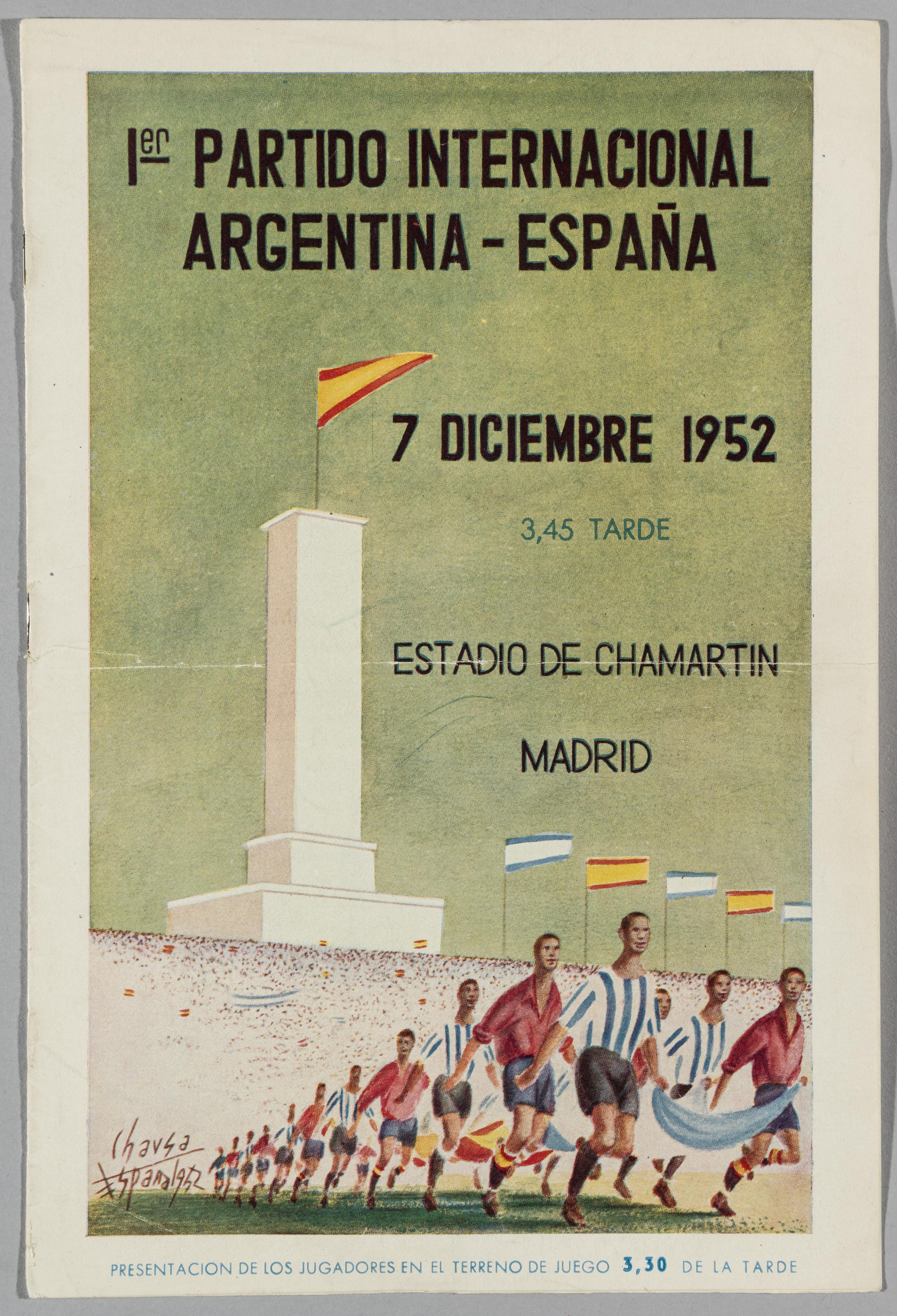 Spain v Argentina first ever international programme between the two sides, played in Estadio de Chamartín, Madrid Argentina defeated Spain 1-0.