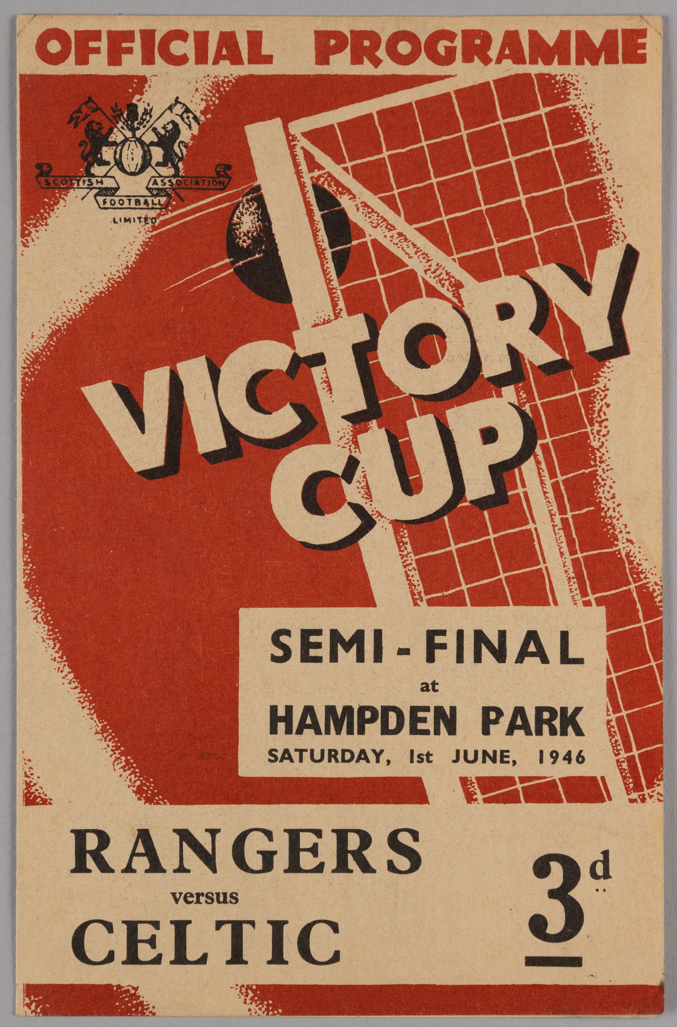 A Rangers v. Celtic, Victory Cup, semi-final match programme, 1st June 1946 Paper slightly browned, overall good