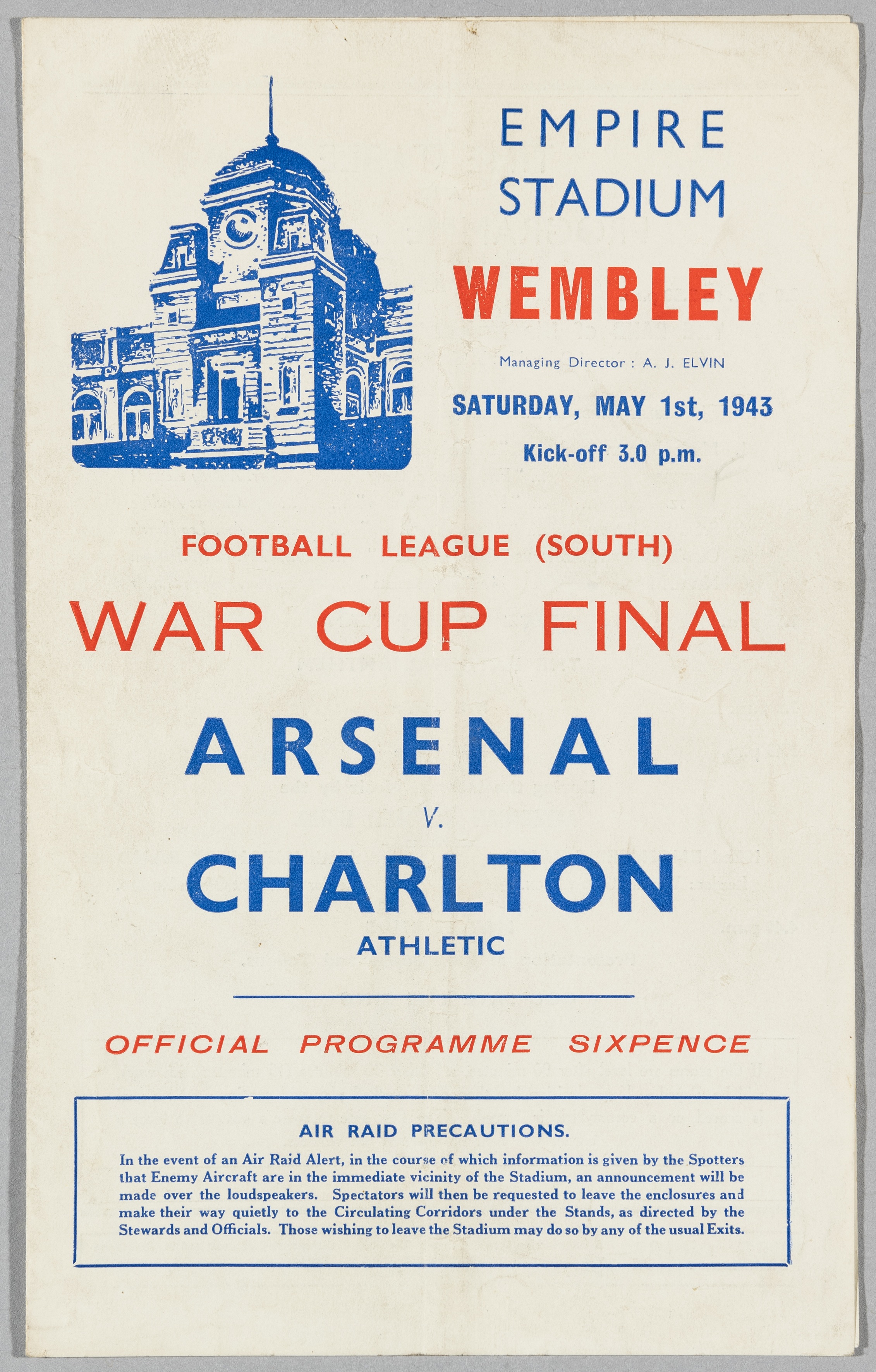 Arsenal v. Charlton Athletic War Cup Final match programme, 1st May 1943 Signs of fold, some slight staining