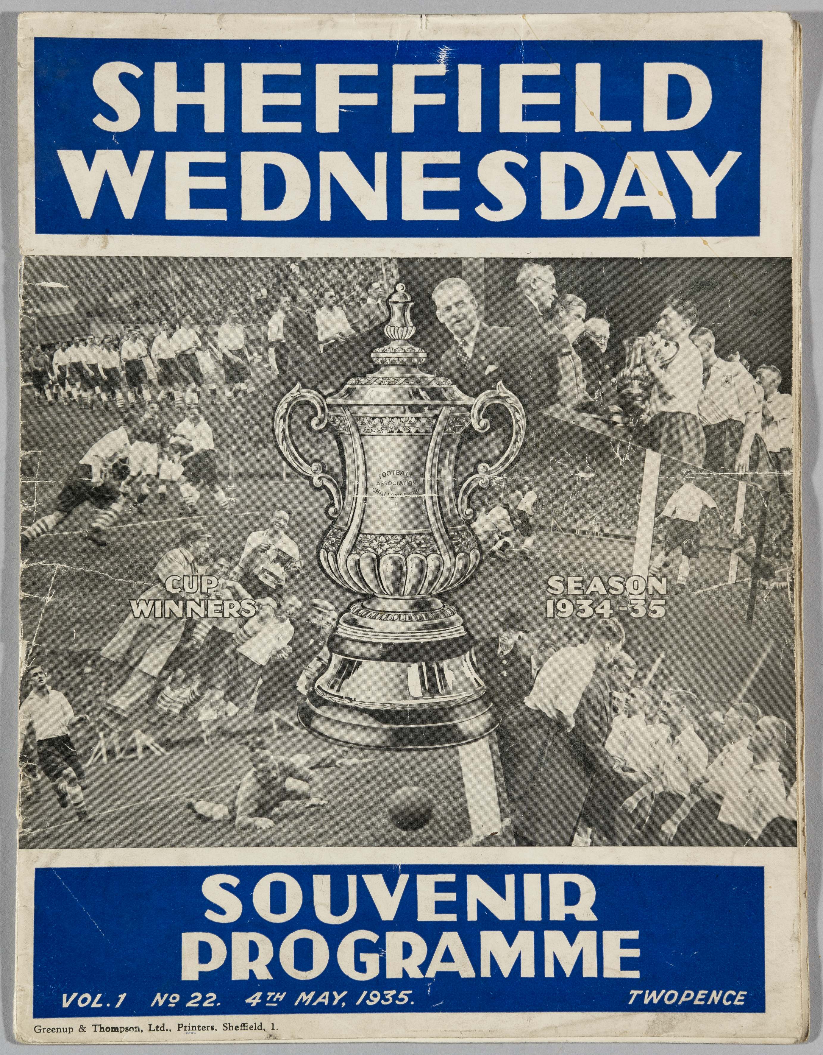 Sheffield Wednesday v. Grimsby Town, Souvenir programme, 4th May 1935 Centre-pages loose, scuffing to spine and some staining