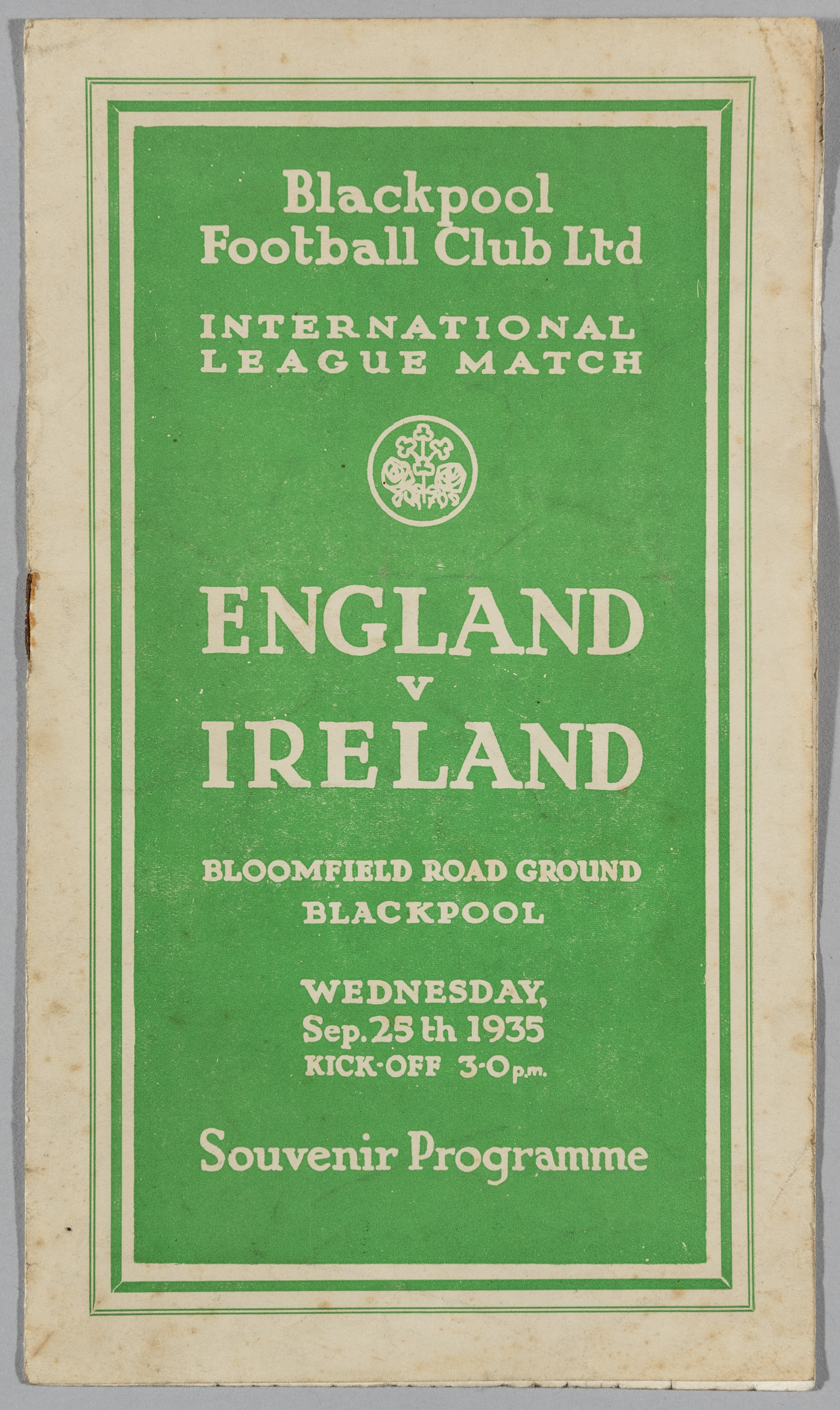 England v Ireland Inter-League programme played at Blackpool 25th September 1935, reasonably good condition