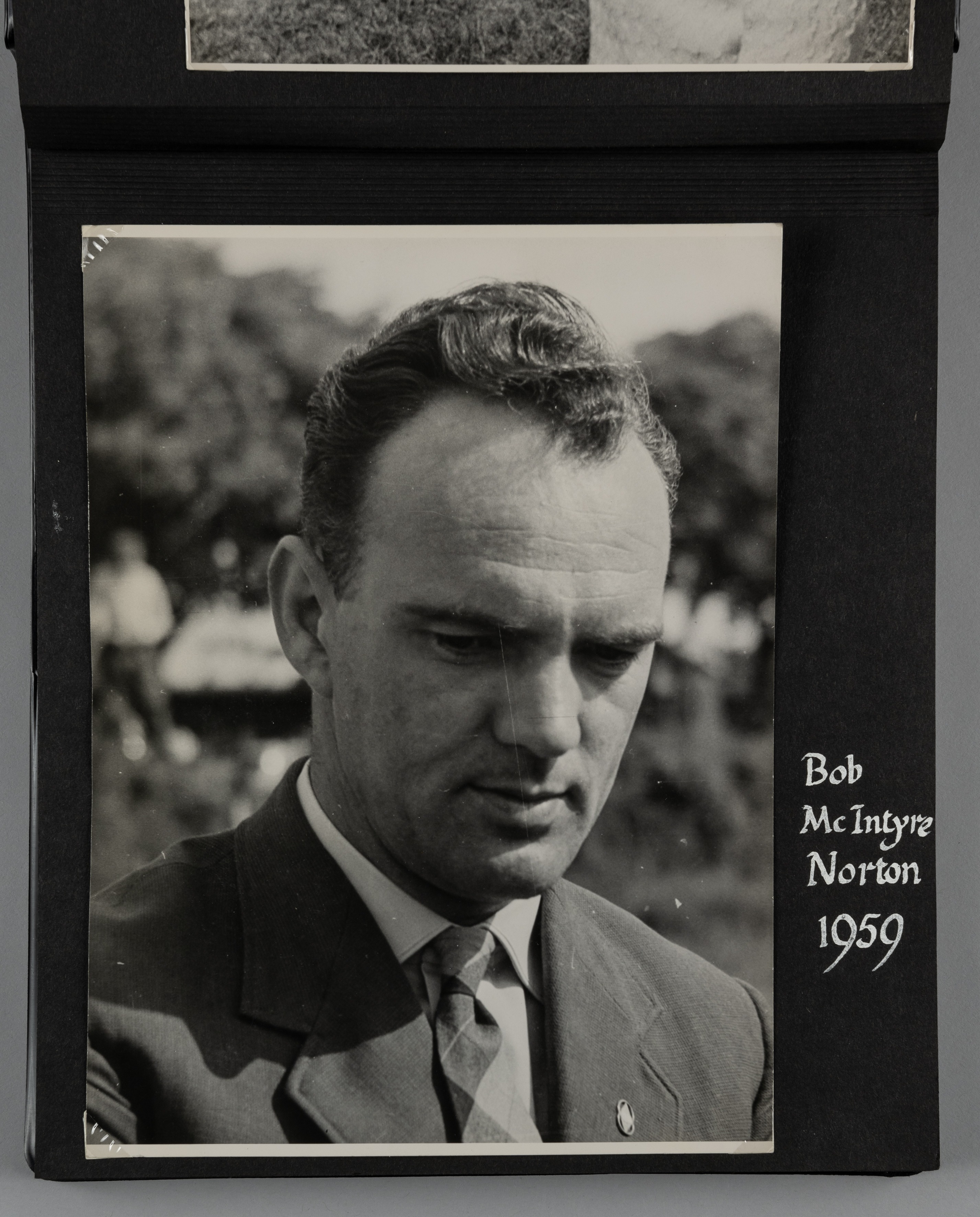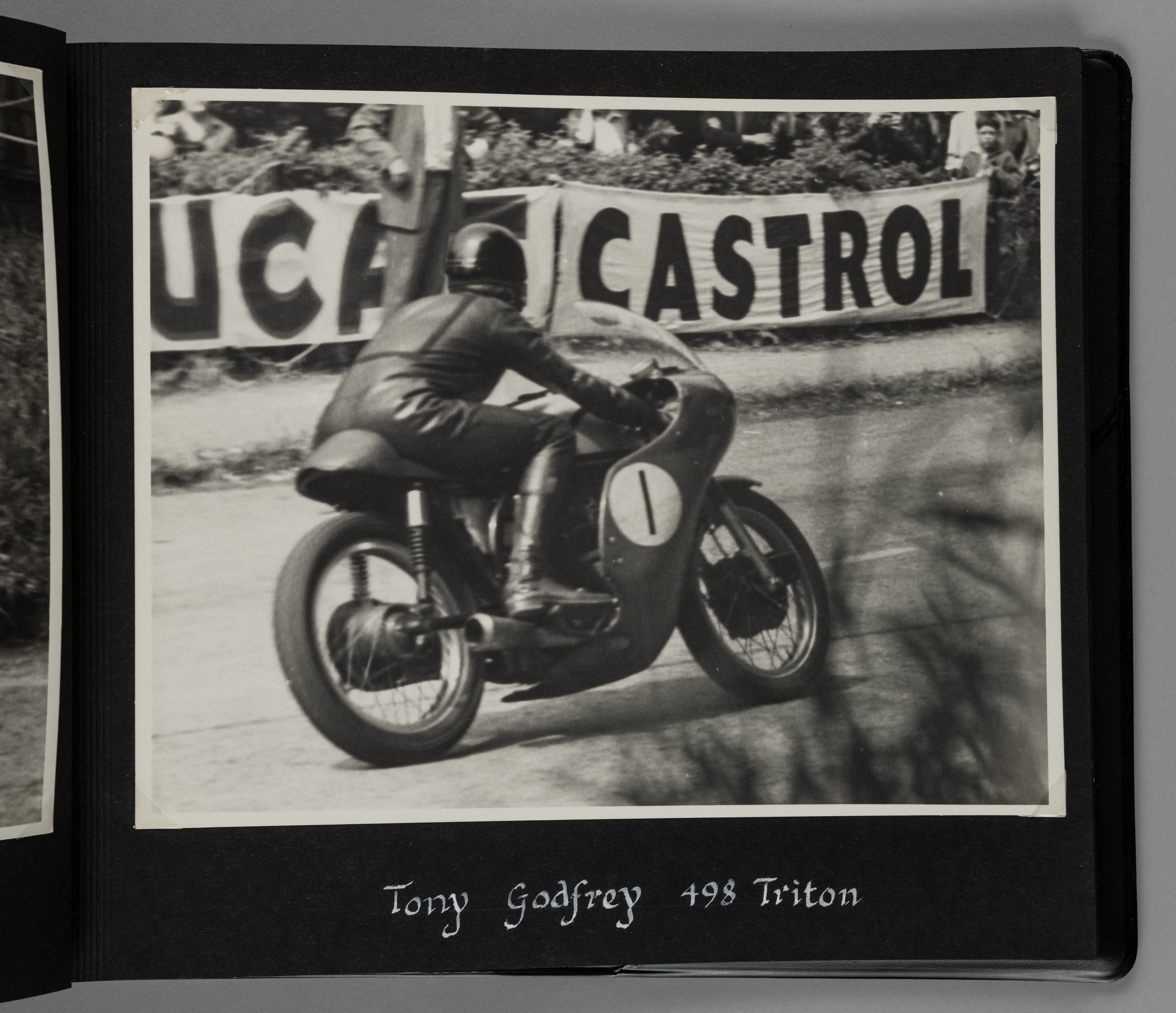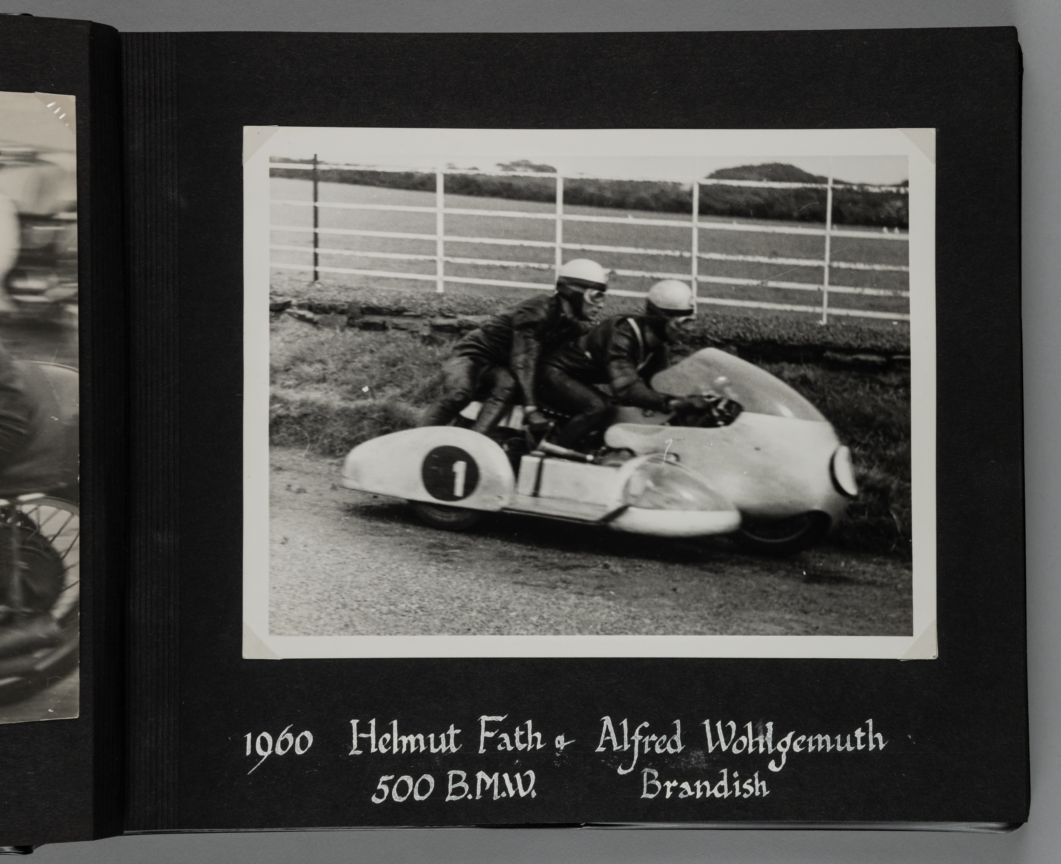 Isle Of Man TT Races 1959-1961 album containing a collection of 37 very good privately produced and previously unpublished photographs, either 9.5 by 7.5 or 8.5 by 6.5in., from 1959 to 1961 inclusive, riders and their motorbikes featured include: Mike Hailwood, John Surtees, Tarquinio Rovini, Bob McIntyre, Helnut Fath, Alwin Ritter, John Hempleman, Michael O’Rourke, Mike Duff, Tony Godfree, Jim Redman, Kunimitu Takahashi, Max Debel et al., all details of the driver handwritten in white ink to each page, an excellent compilation.