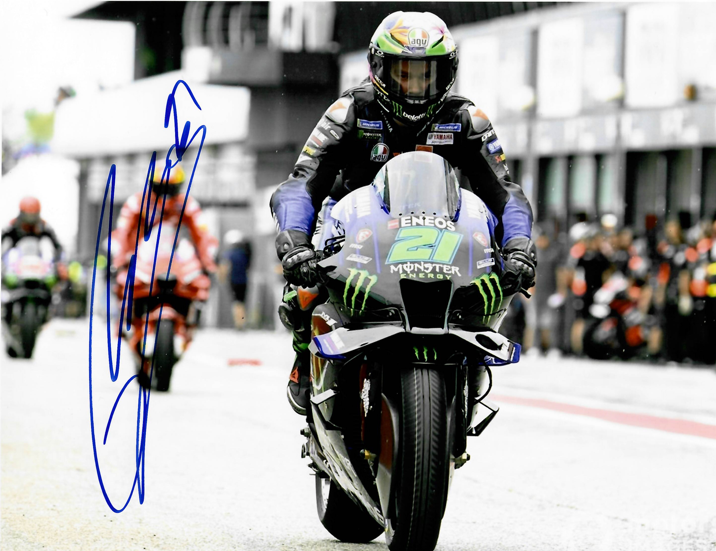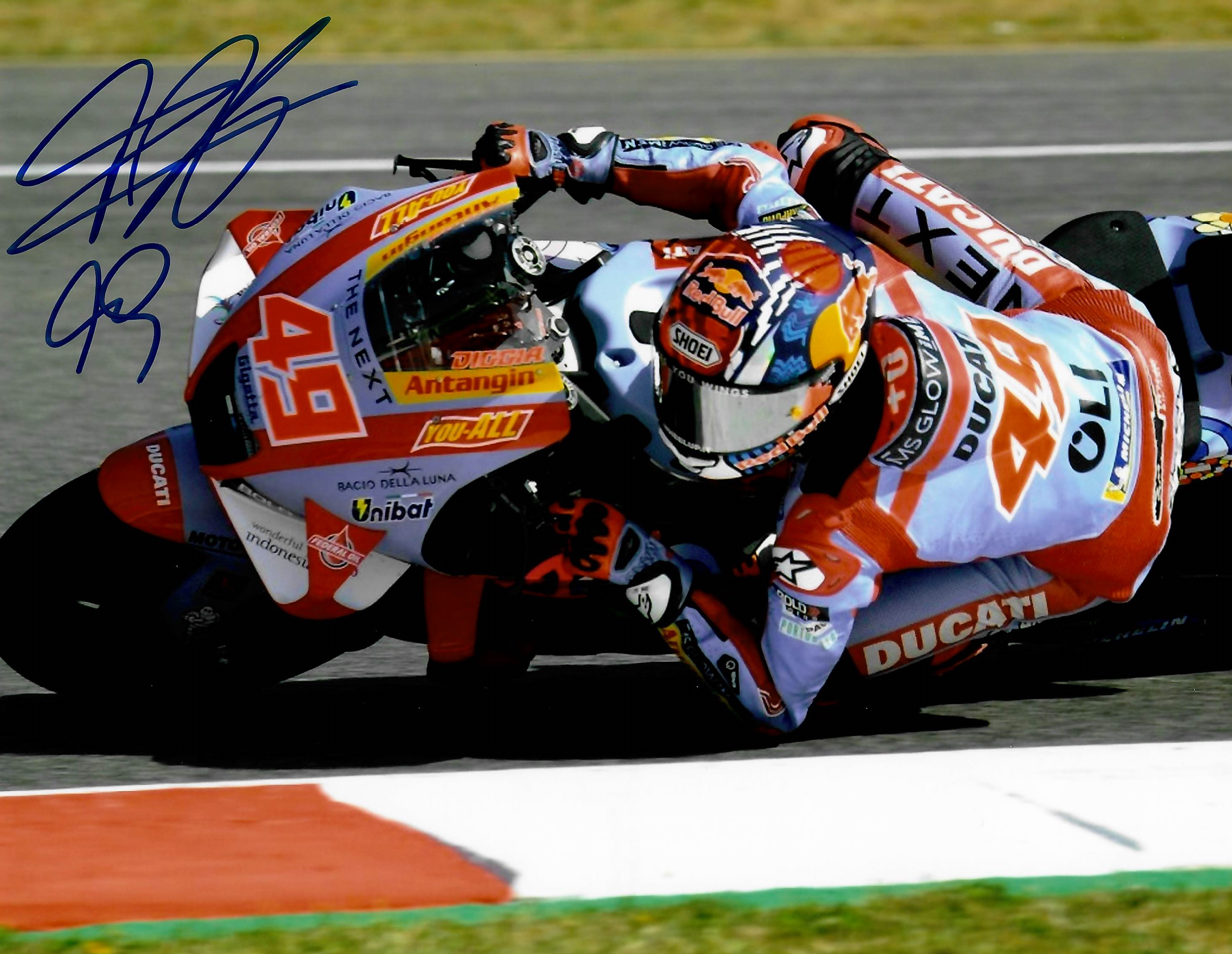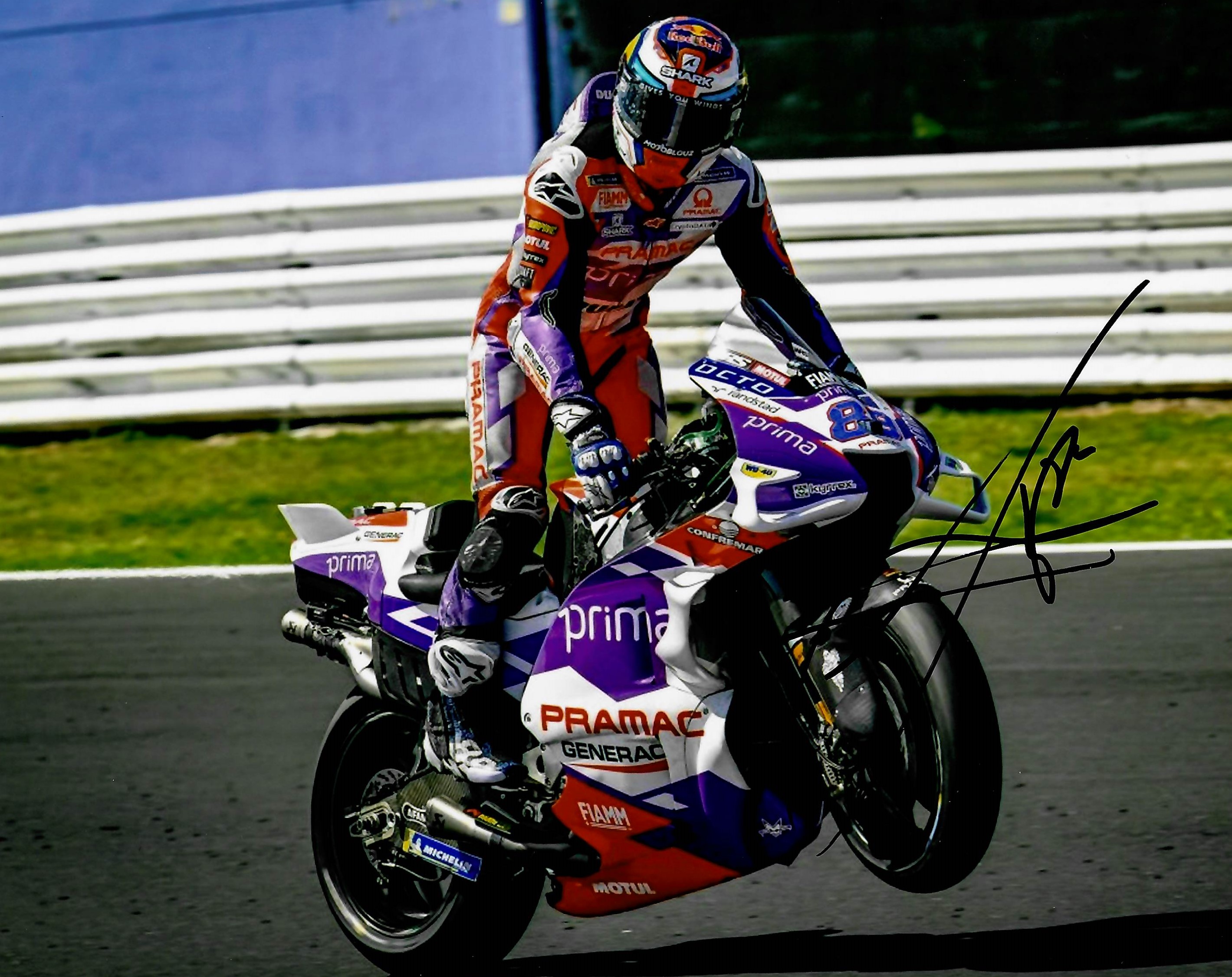 Moto GP: 2022 Moto GP Season, collection of signed 8 by 10in. photographs by 21 MotoGP riders, comprising (1) Fabio Quartararo (France – 2021 Moto GP World Champion) – #20 Monster Energy Yamaha MotoGP team, (2) Franco Morbidelli (Italy) #21 Monster Energy Yamaha MotoGP team, (3) Marc Marquez (Spain) Collection (2013, 2014, 2016, 2017, 2018, 2019 Moto GP World Champion)- #93 Repsol Honda, (4) Francesco "Pecco" Bagnaia (Italy – 2022 Moto GP World Champion)- #63 Ducati, (5) Jack Miller (Australia) #43 Ducati, (6) Joan Mir (Spain – 2020 Moto GP World Champion) - #36 Suzuki Ecstar, (7) Alex Rins (Spain) -#42 - Suzuki Ecstar, (8) Remy Gardner (Australia) #87 – Tech 3 KTM, (9) Raúl Fernández (Spain) #25 – Tech 3 KTM, (10) Aleix Espargaró (Spain) - #41 – Aprilla, (11) Jorge Martín (Spain) #89 – Pramac, (12) Johann Zarco (France) #5- Pramac, (13) Marco Bezzecchi (Italy) #72 Mooney VR46 Racing team, (14) Luca Marini (Italy) - #10 Mooney VR46 Racing team, (15) Fabio Di Giannantonio (Italy) #49 – Gresini Racing Team, (16) Enea Bastianini (Italy) #23 - Gresini Racing Team, (17) Miguel Ângelo Falcão de Oliveira (Portugal) #88 Red Bull KTM, (18) Brad Binder (South Africa) #33 Red Bull KTM, (19) Álex Márquez (Spain) #73 – LCR Honda Castrol, (20) Darryn Binder (South Africa) #40 – With U Yamaha, (21) Jake Dixon (UK) #96 With U Yamaha. Comes with Certificate of Authenticity and Photo proof, (22)