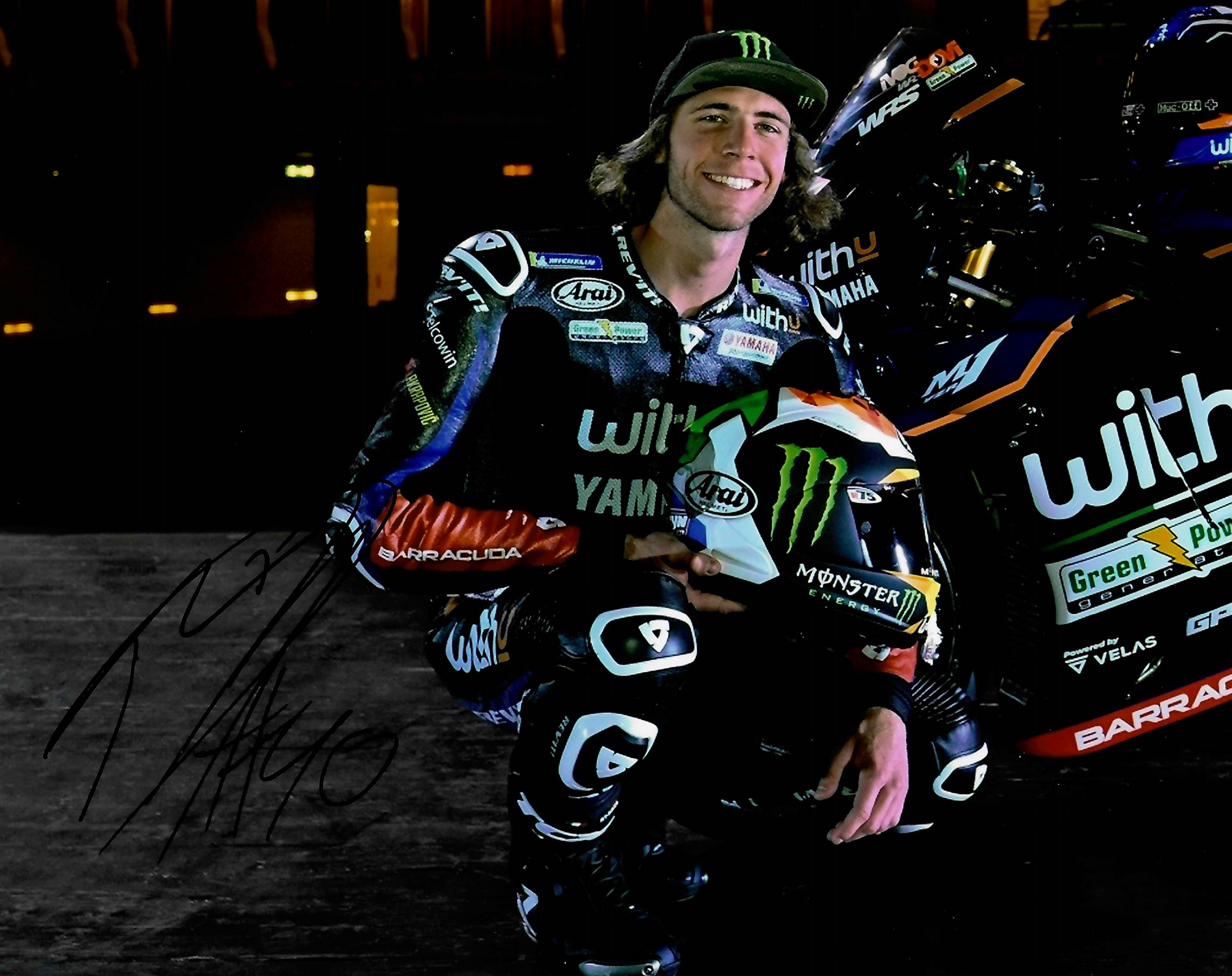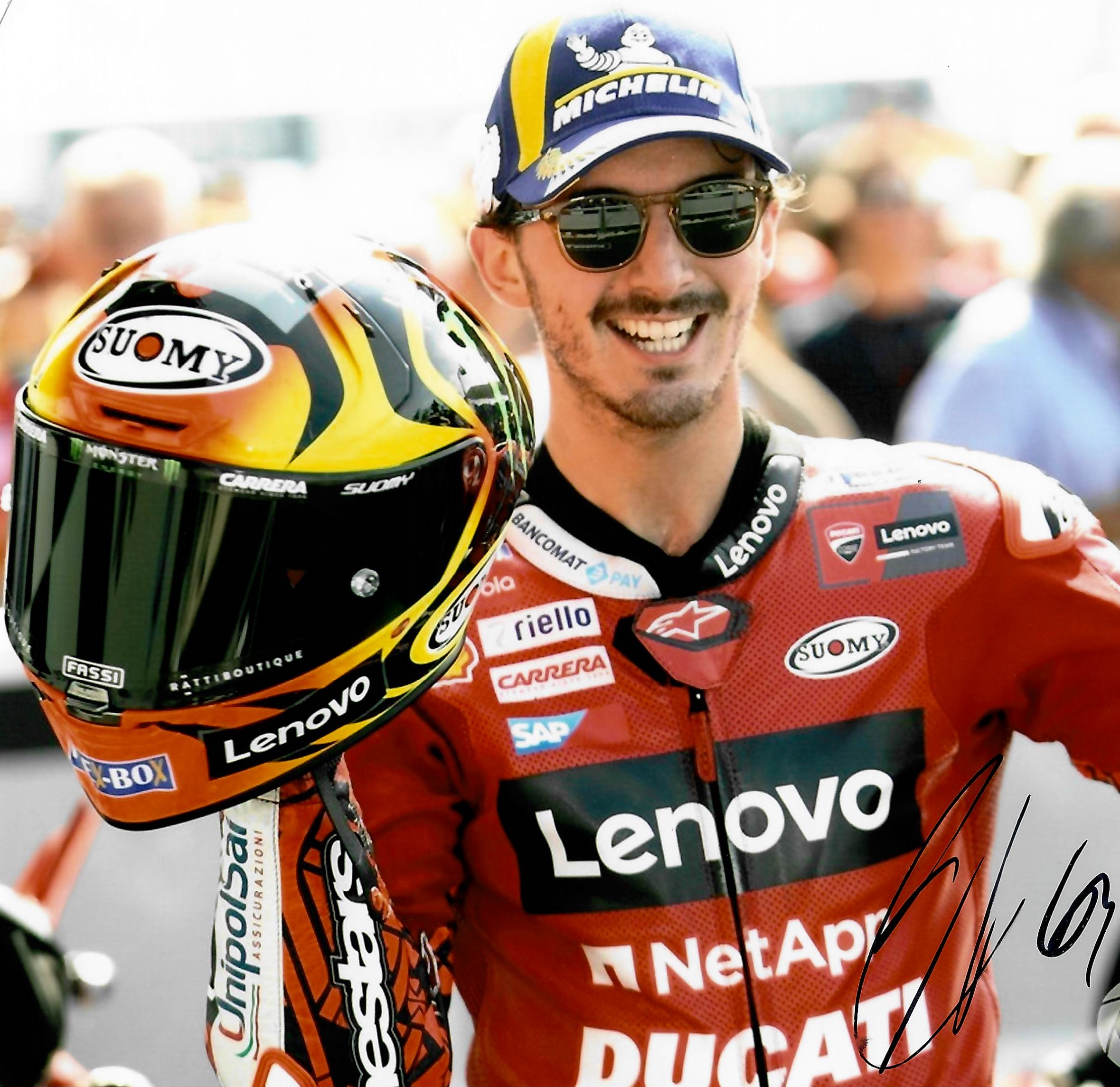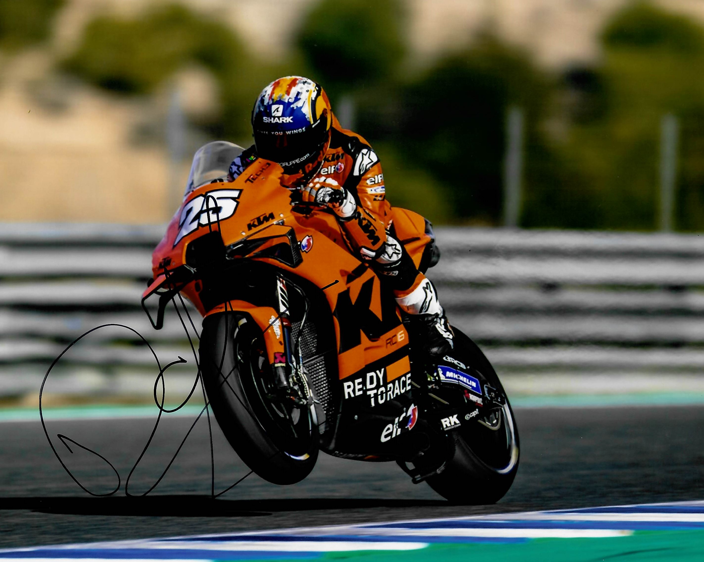 Moto GP: 2022 Moto GP Season, collection of signed 8 by 10in. photographs by 21 MotoGP riders, comprising (1) Fabio Quartararo (France – 2021 Moto GP World Champion) – #20 Monster Energy Yamaha MotoGP team, (2) Franco Morbidelli (Italy) #21 Monster Energy Yamaha MotoGP team, (3) Marc Marquez (Spain) Collection (2013, 2014, 2016, 2017, 2018, 2019 Moto GP World Champion)- #93 Repsol Honda, (4) Francesco "Pecco" Bagnaia (Italy – 2022 Moto GP World Champion)- #63 Ducati, (5) Jack Miller (Australia) #43 Ducati, (6) Joan Mir (Spain – 2020 Moto GP World Champion) - #36 Suzuki Ecstar, (7) Alex Rins (Spain) -#42 - Suzuki Ecstar, (8) Remy Gardner (Australia) #87 – Tech 3 KTM, (9) Raúl Fernández (Spain) #25 – Tech 3 KTM, (10) Aleix Espargaró (Spain) - #41 – Aprilla, (11) Jorge Martín (Spain) #89 – Pramac, (12) Johann Zarco (France) #5- Pramac, (13) Marco Bezzecchi (Italy) #72 Mooney VR46 Racing team, (14) Luca Marini (Italy) - #10 Mooney VR46 Racing team, (15) Fabio Di Giannantonio (Italy) #49 – Gresini Racing Team, (16) Enea Bastianini (Italy) #23 - Gresini Racing Team, (17) Miguel Ângelo Falcão de Oliveira (Portugal) #88 Red Bull KTM, (18) Brad Binder (South Africa) #33 Red Bull KTM, (19) Álex Márquez (Spain) #73 – LCR Honda Castrol, (20) Darryn Binder (South Africa) #40 – With U Yamaha, (21) Jake Dixon (UK) #96 With U Yamaha. Comes with Certificate of Authenticity and Photo proof, (22)