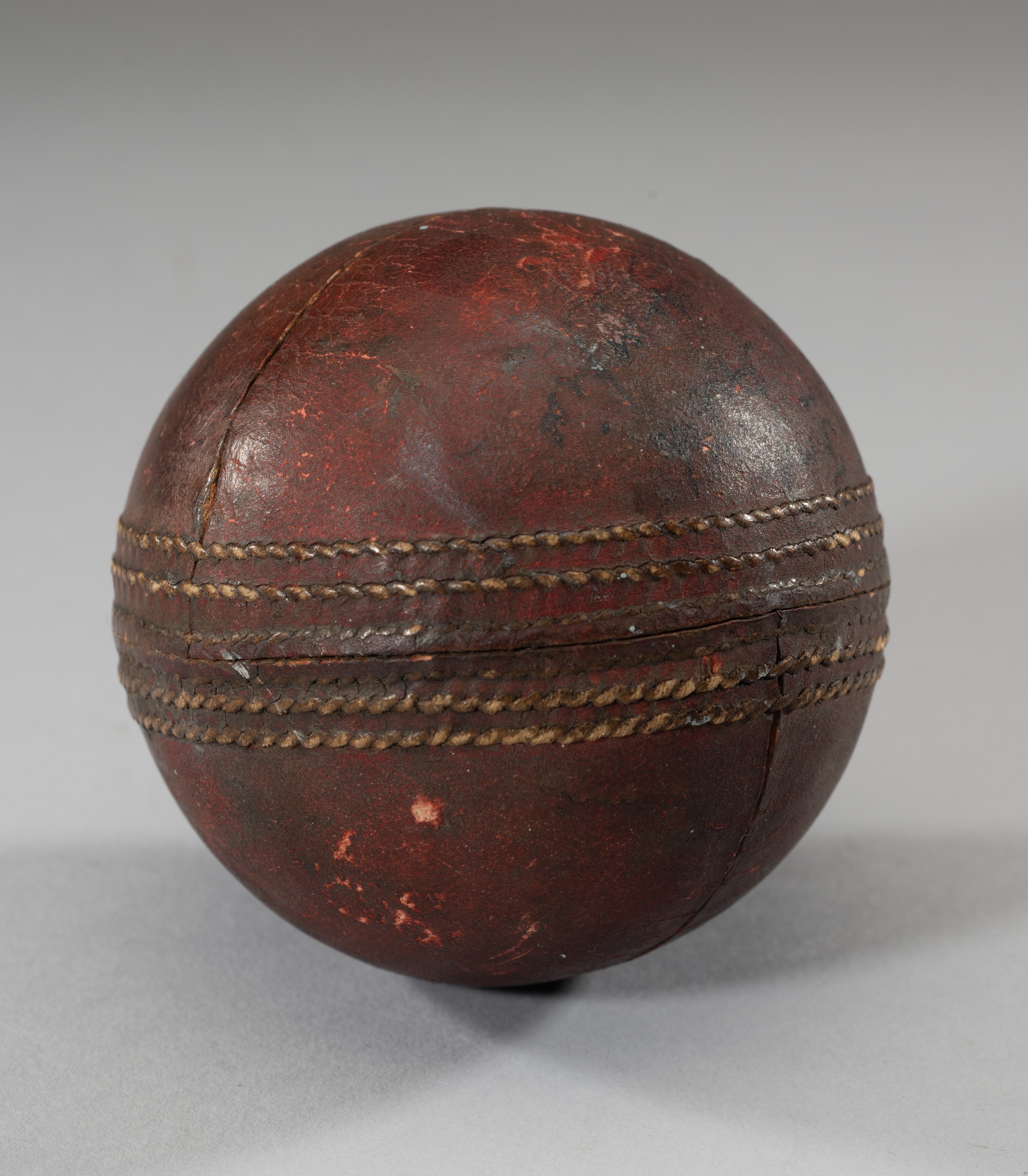 A circa 1937 cricket ball autographed by Frank Woolley after a Kent County Cricket match, indistinctly signed and inscribed Ball shows signed of match use, signature and inscription faded