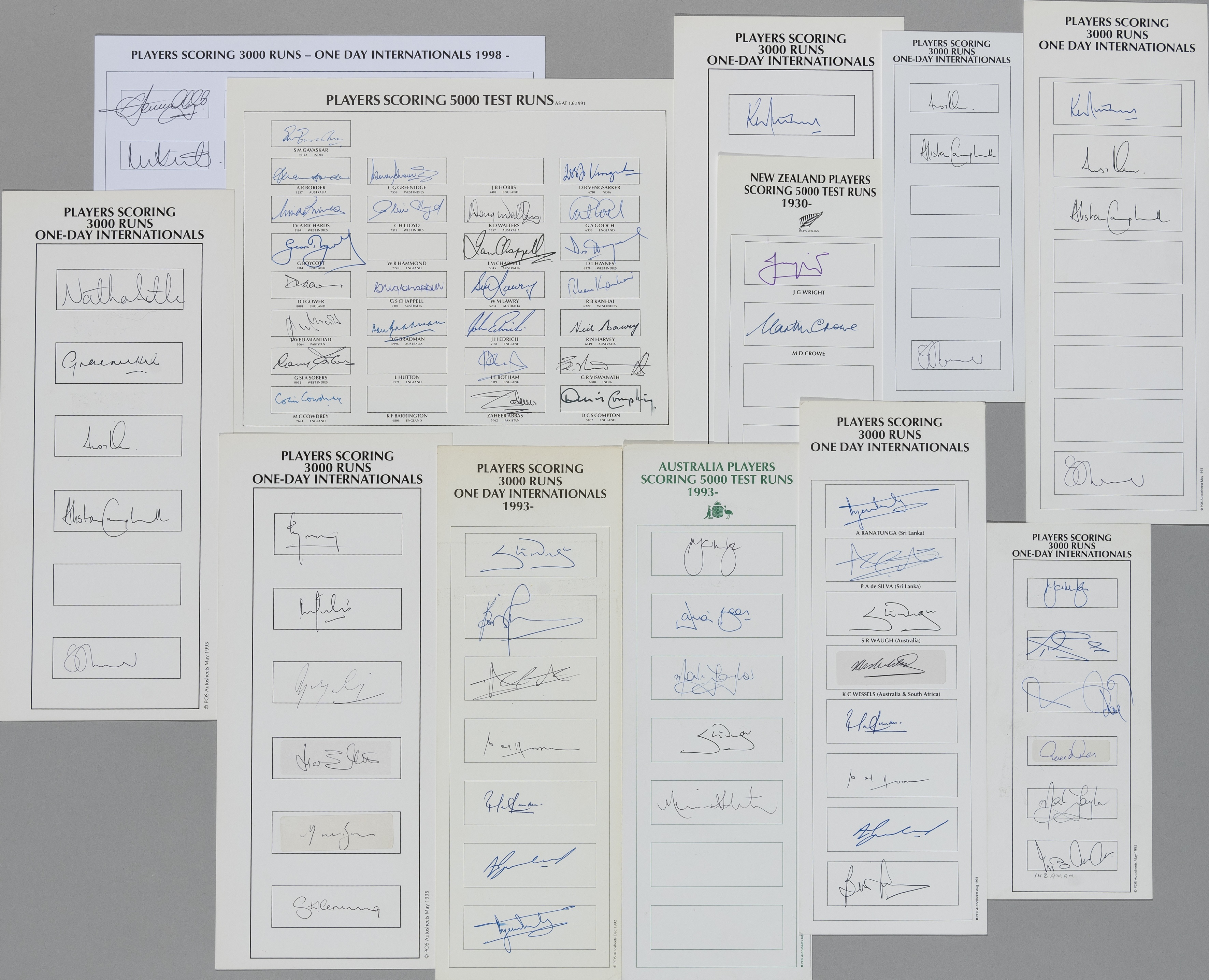 A collection of cricket autographs, including Australia, New Zealand players scoring 5000 test runs, other for 3000 runs The above is being sold