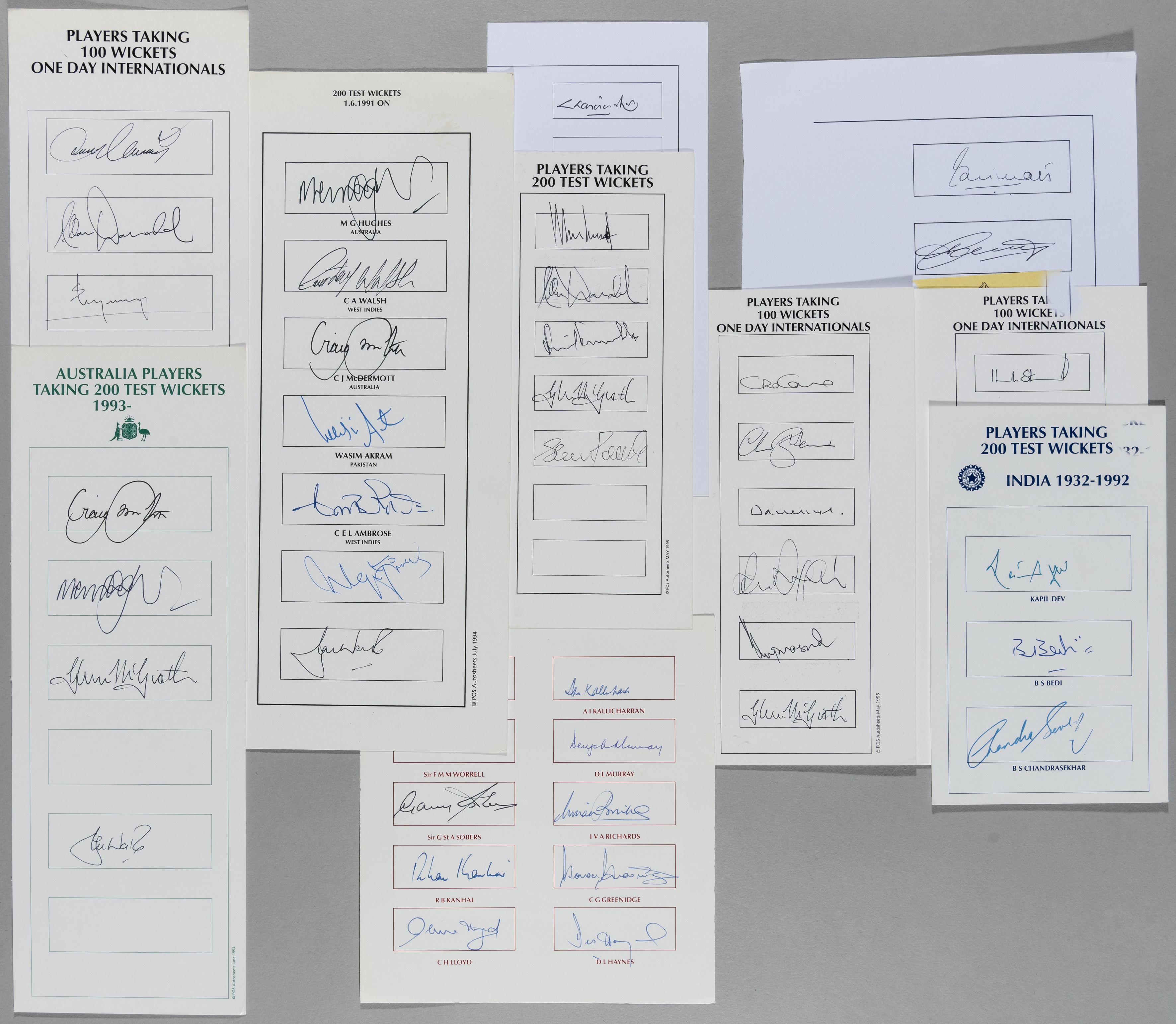 A collection of bowlers autographs, including players who have taken 100, 200 and 300 wickets The above is being sold by the Lord's Taverners and all proceeds will be benefit the charity