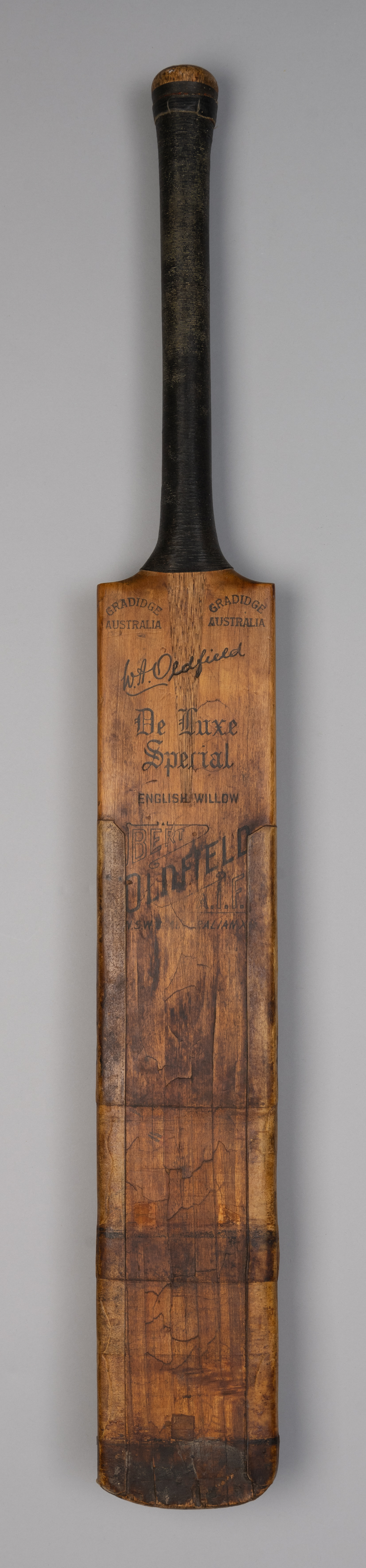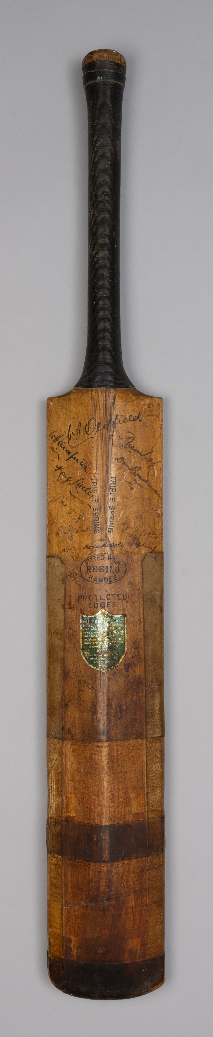 1930s Gradidge W. A. Oldfield De Luxe Special cricket bat, bearing numerous autographs including, Don Bradman, Ray Little, Bill Brown, Jack O'Connor
