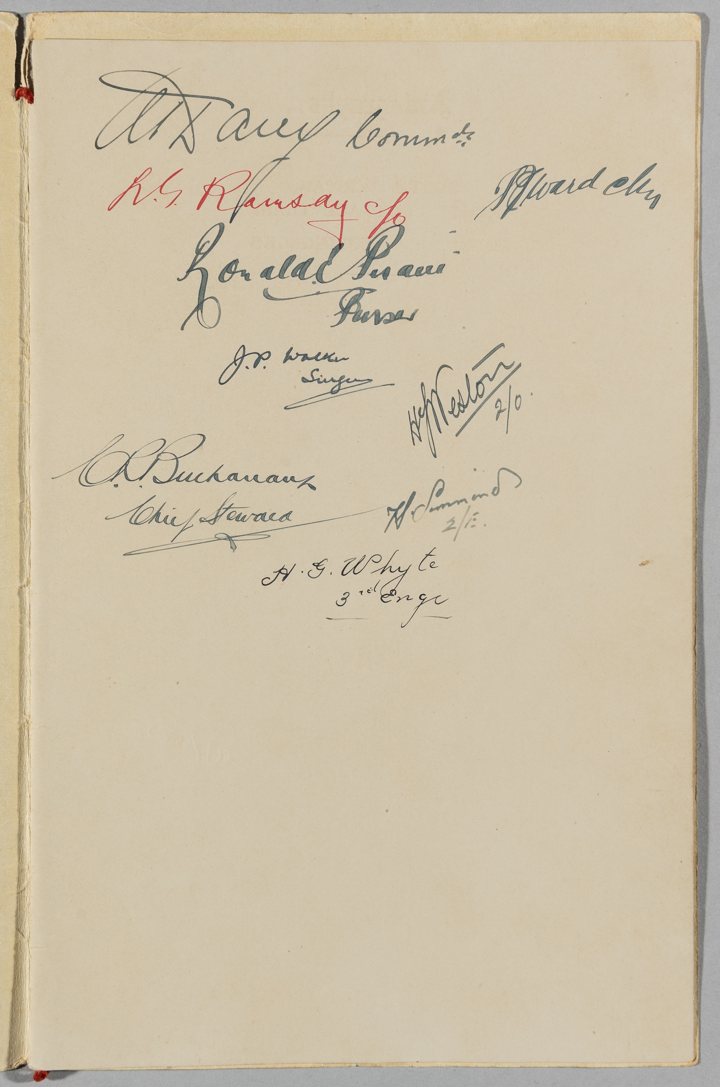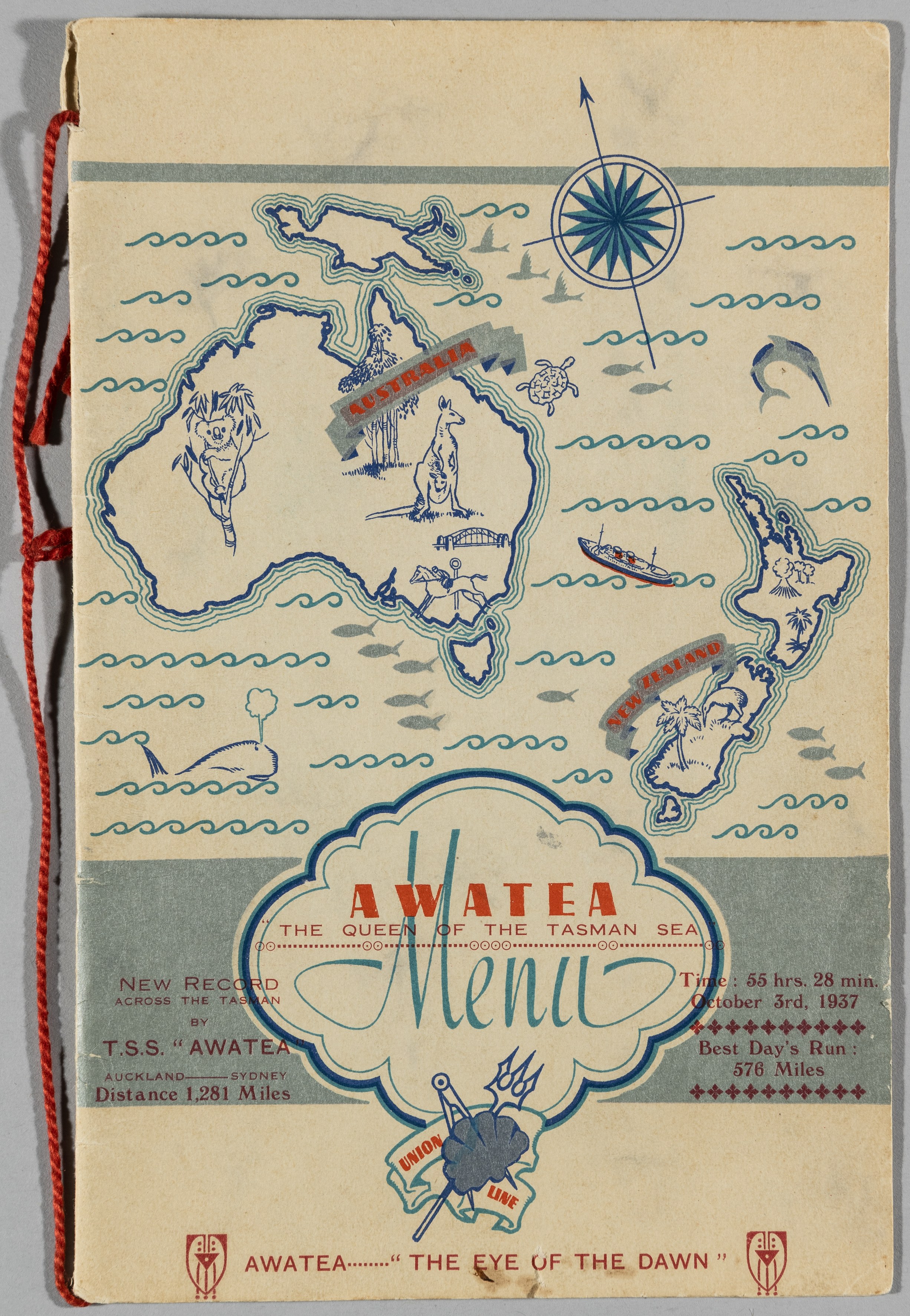 Signed South Africa tour to Australia dinner menu from the voyage on the T.S.S. Awatea on 3rd October 1937, signed by some of the ships crew in ink