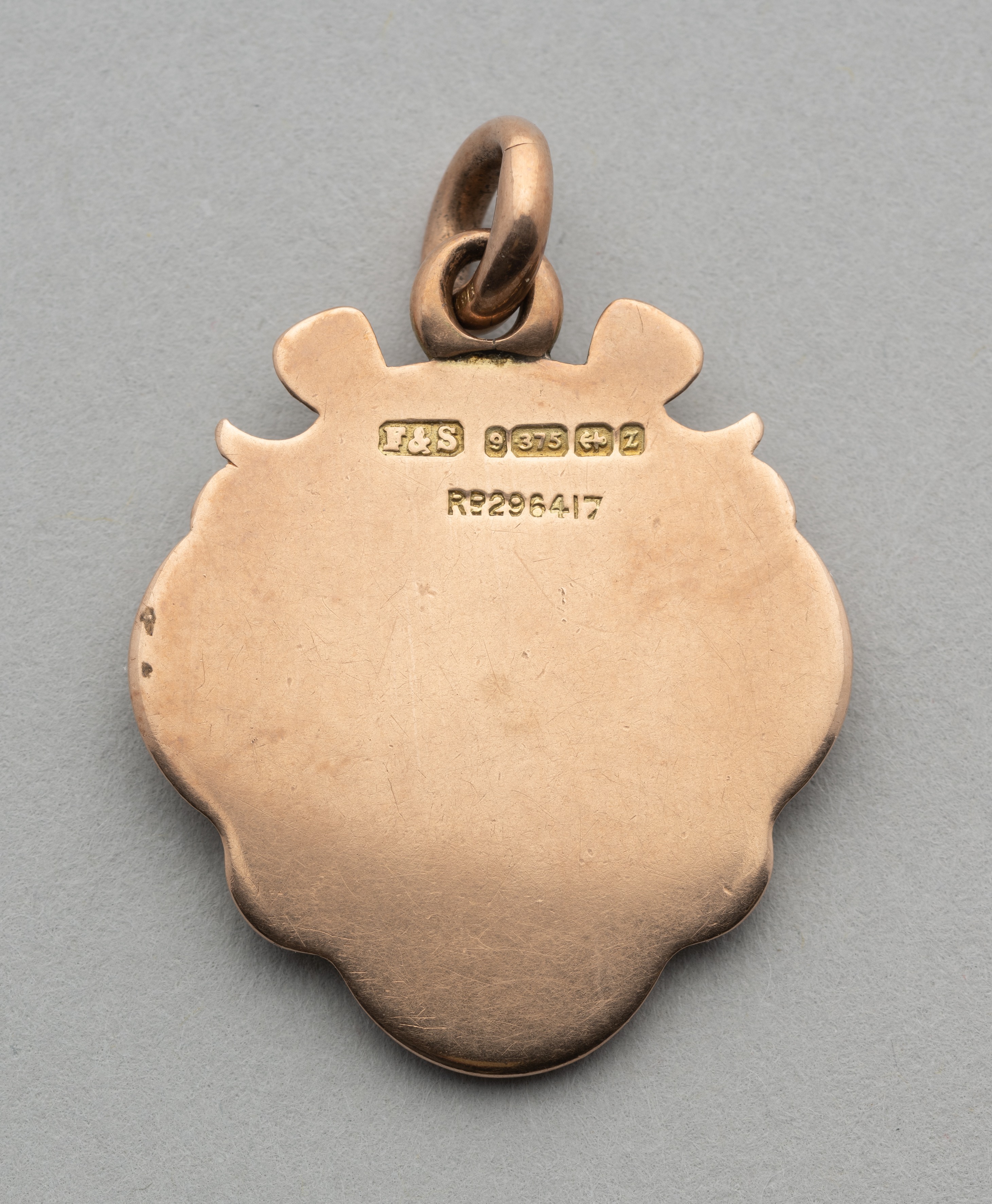 A 9ct gold and enamel Rugby League Challenge Cup Medal, 1898-99, the obverse inscribed Lancashire, Cheshire, Yorkshire, Northern Rugby Football Union Challenge Cup, the reverse blank with ring suspension by Fattorini & Son and with date letter Z, 12grms Some rubbing to enamel