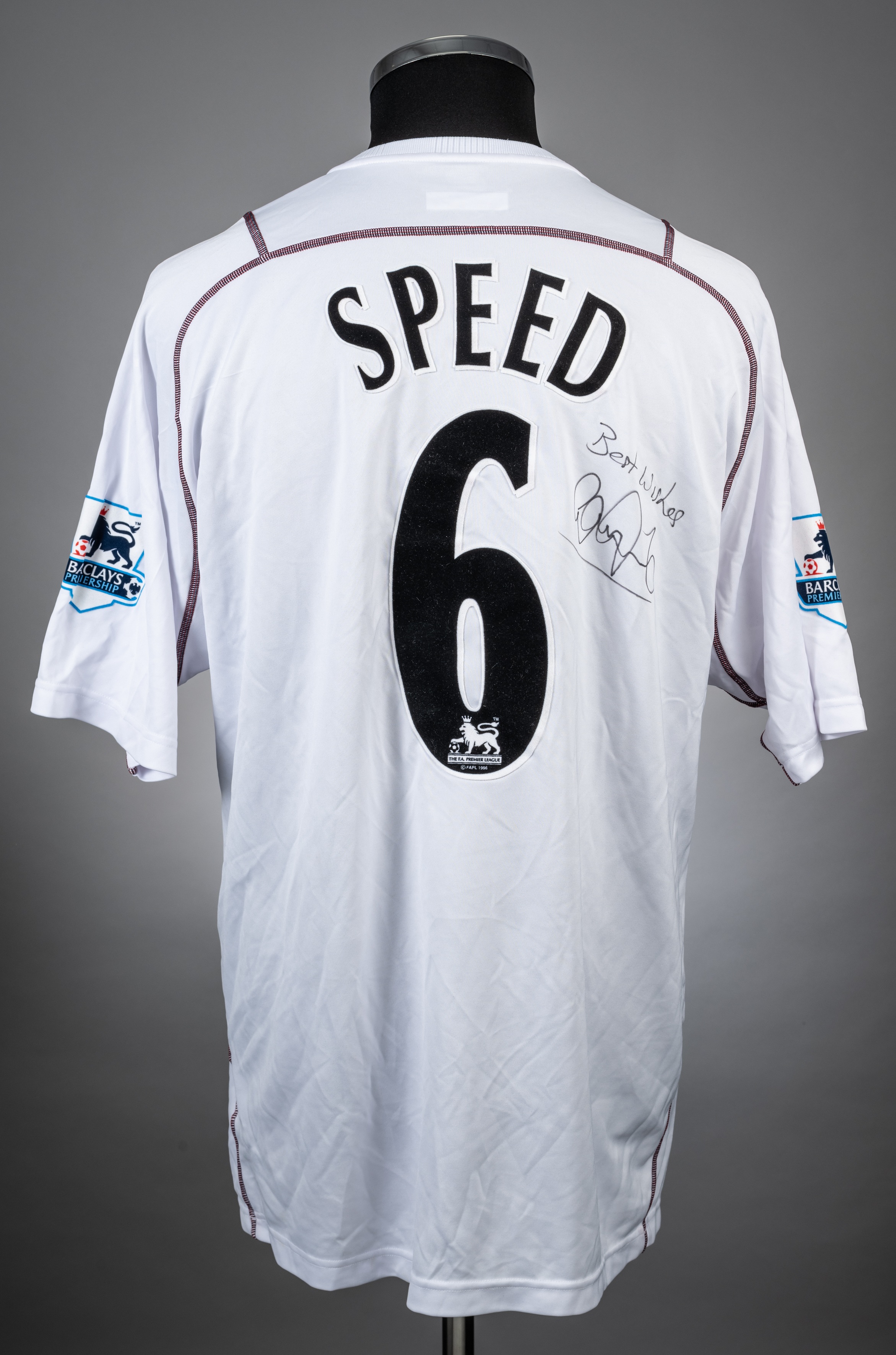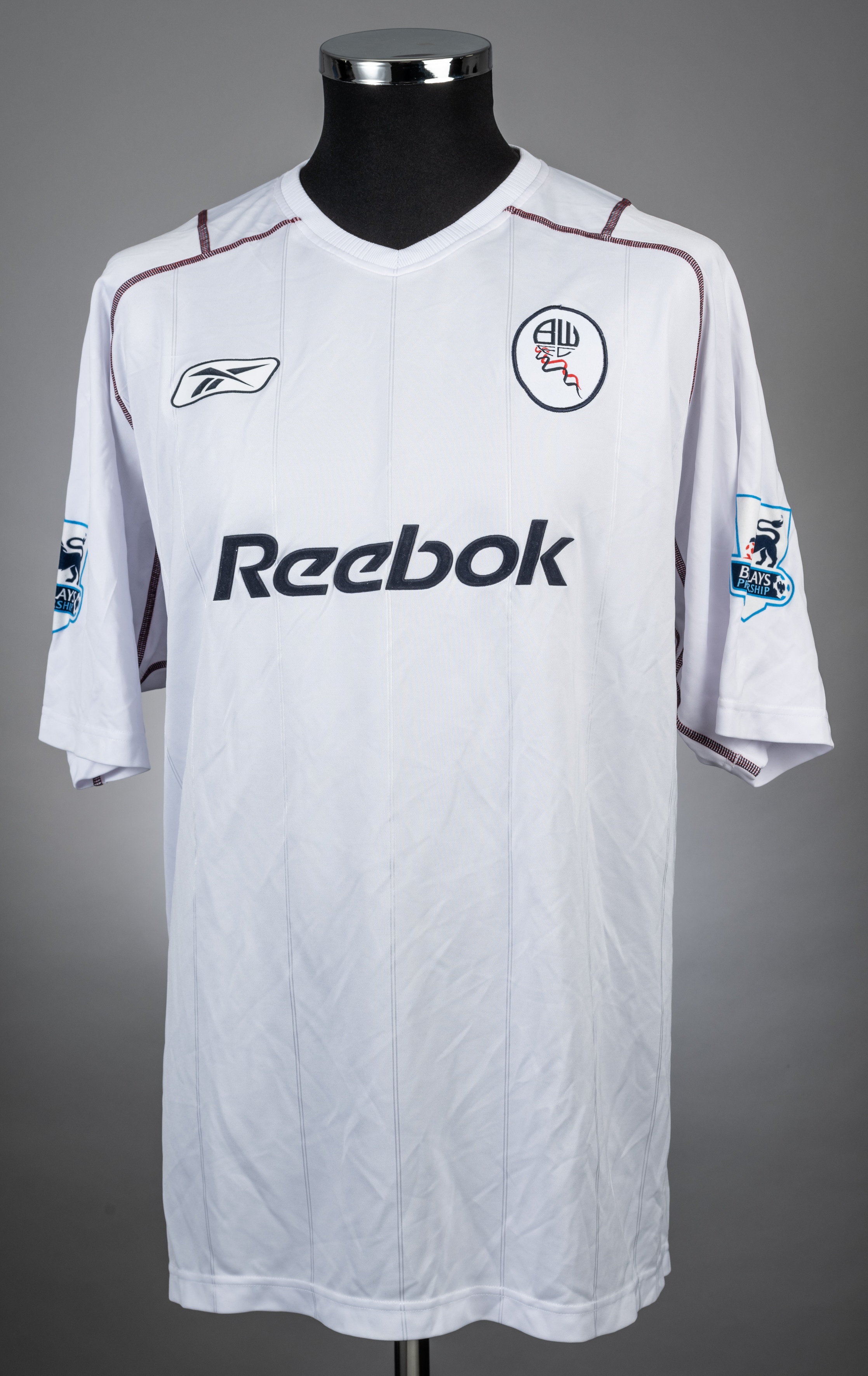 Gary Speed white No.6 replica Bolton Wanderers short-sleeved jersey, 2004-05, Reebok, the reverse autographed by Gary Speed