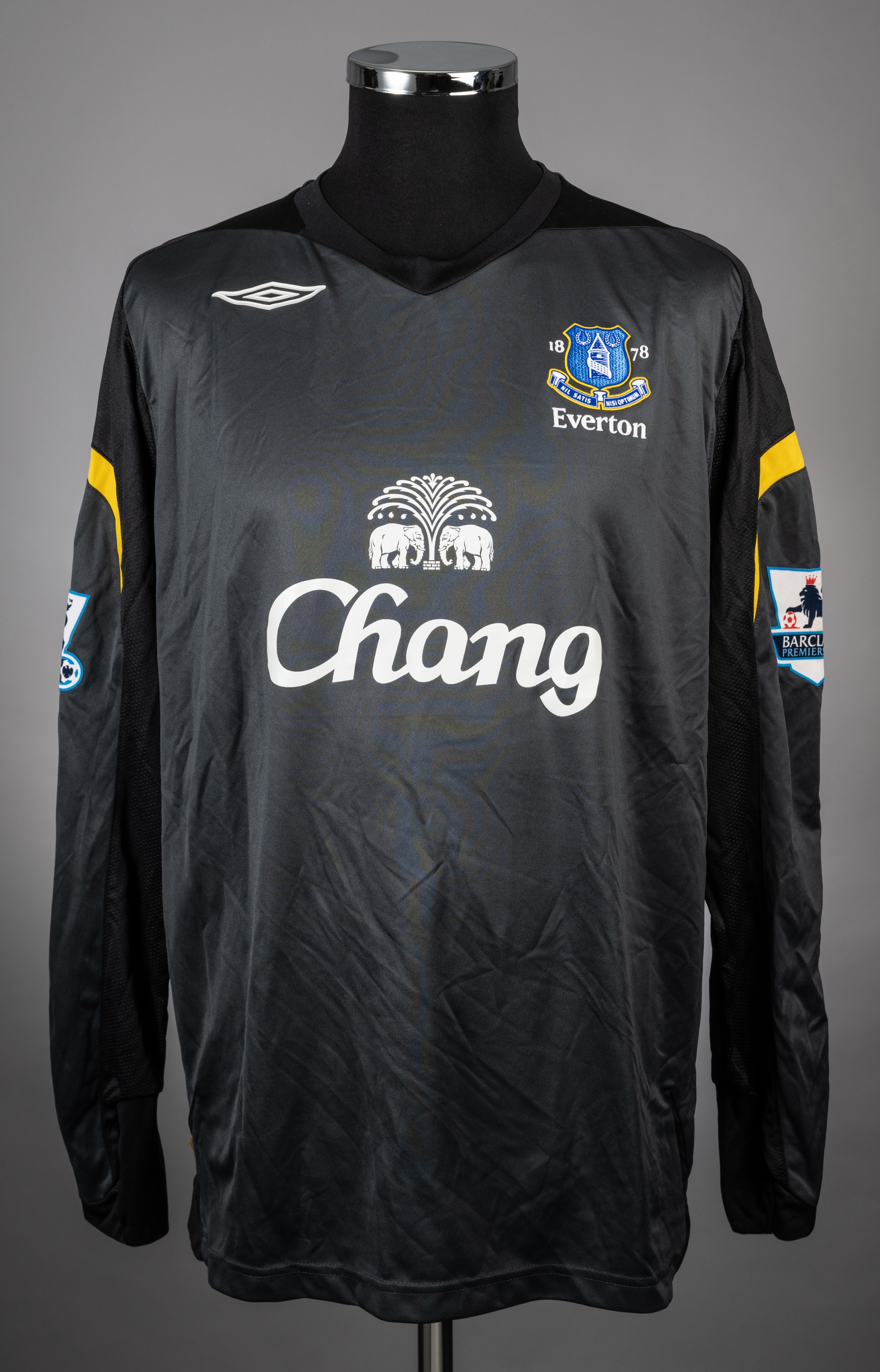 Tim Howard black and yellow No.24 Everton goalkeepers jersey, 2006-07, Umbro, XXL with crew-neck collar and embroidered badge inscribed 1878 NIL SA