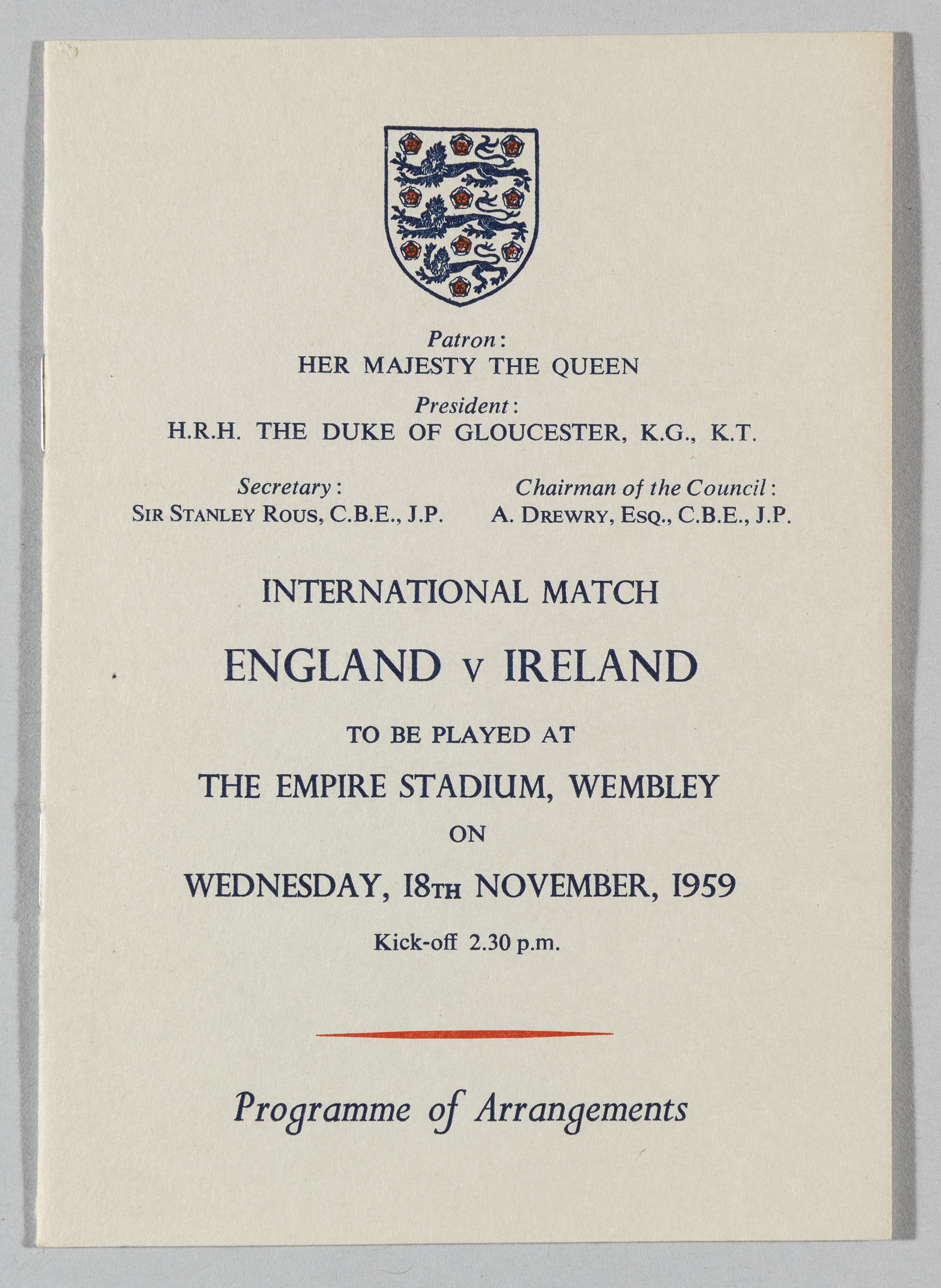 England v Ireland match Programme of Arrangements booklet 1959 that took place at Wembley Stadium on November 18th 1959