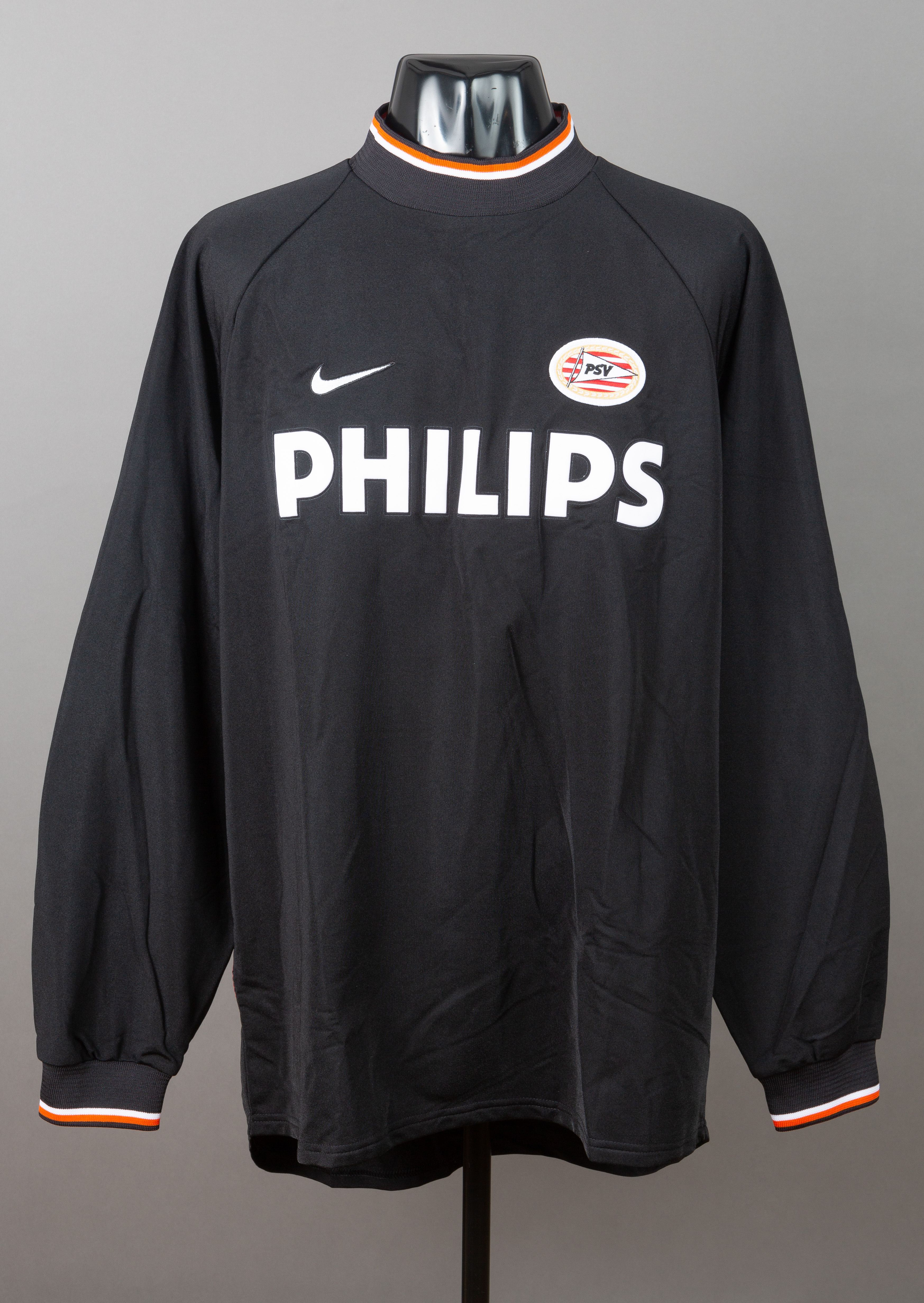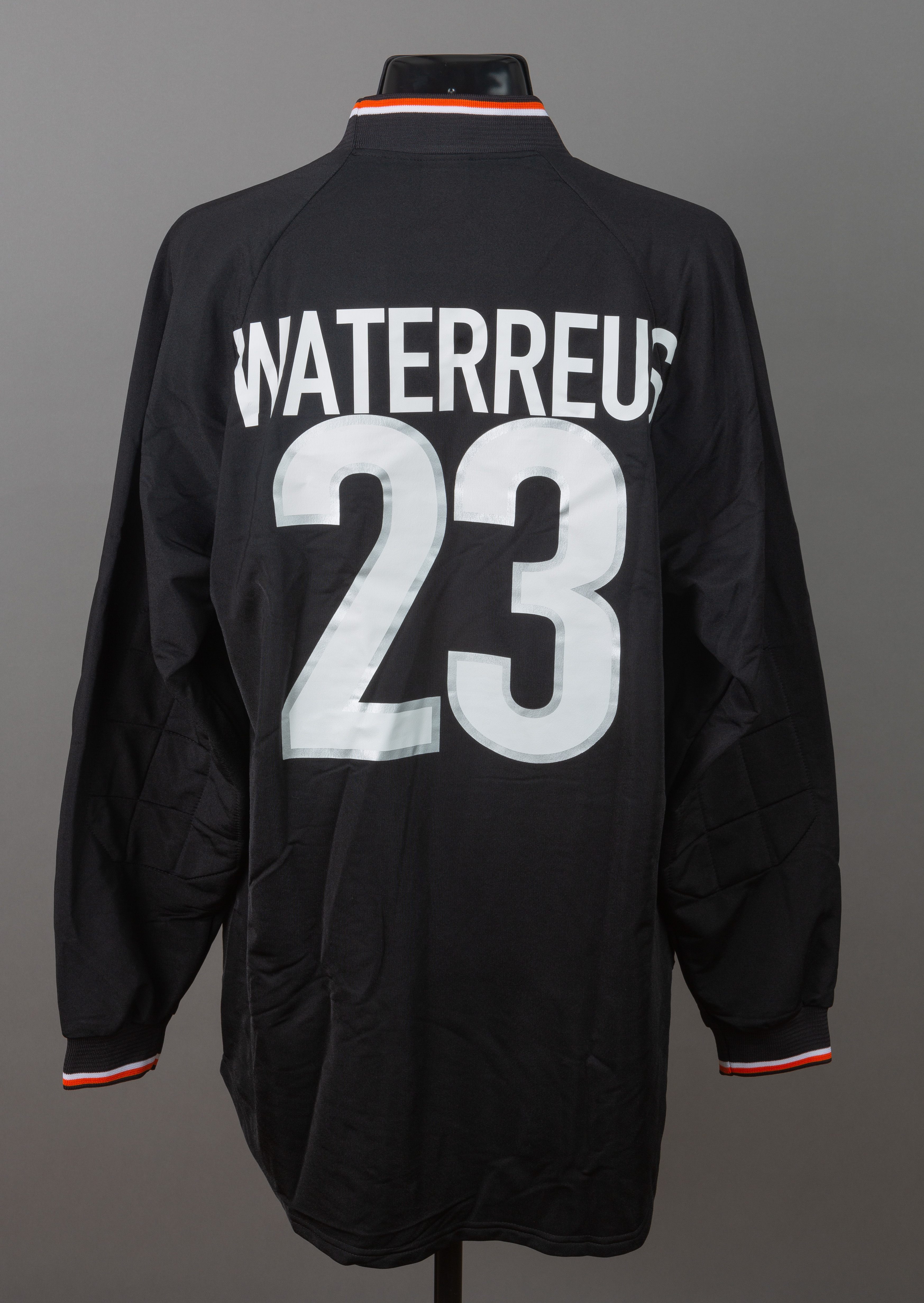 Ronald Waterreus black PSV Eindhoven no.23 goalkeeper's jersey, season 1997-98, Nike, long-sleeved with padded elbows, club crest and sponsor logo, reverse lettered WATERREUS, Condition: bears pen mark on letter p in the sponsors name on front