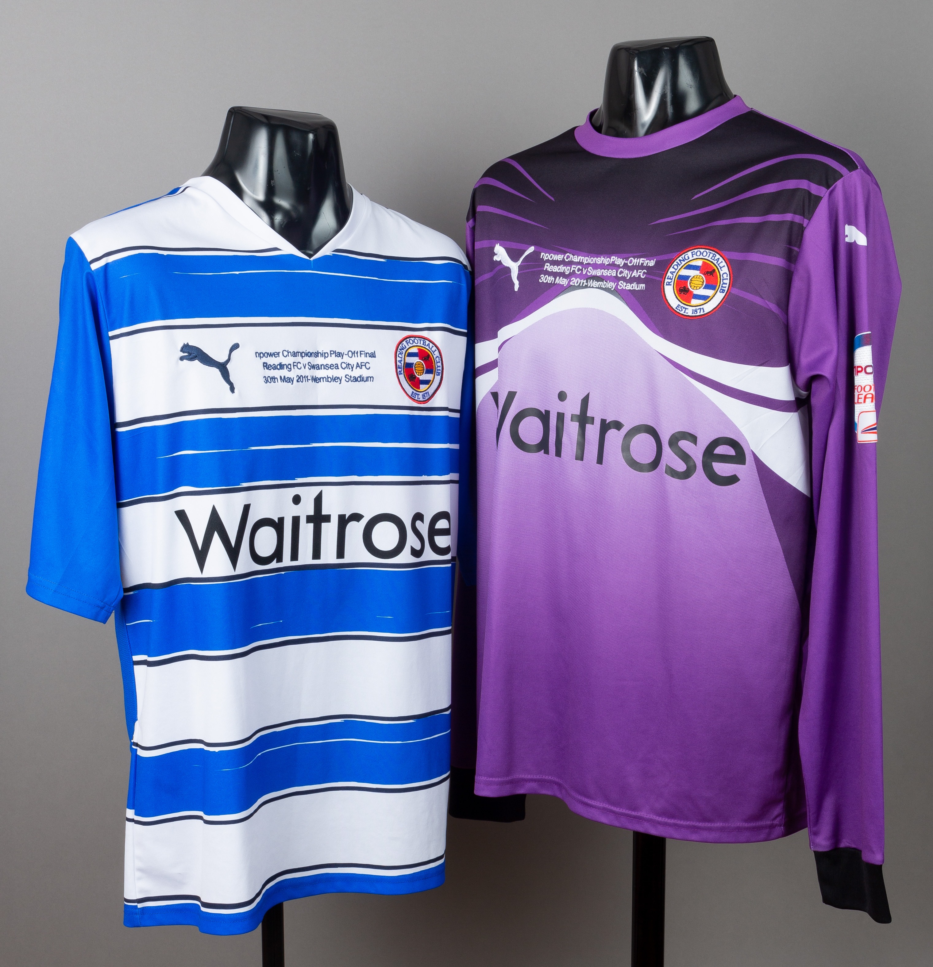 Two Reading Npower Championship play-off final jersey's v Swansea City AFC at Wembley, 30th May 2011, both by Puma with NPOWER FOOTBALL LEAGUE sleeve
