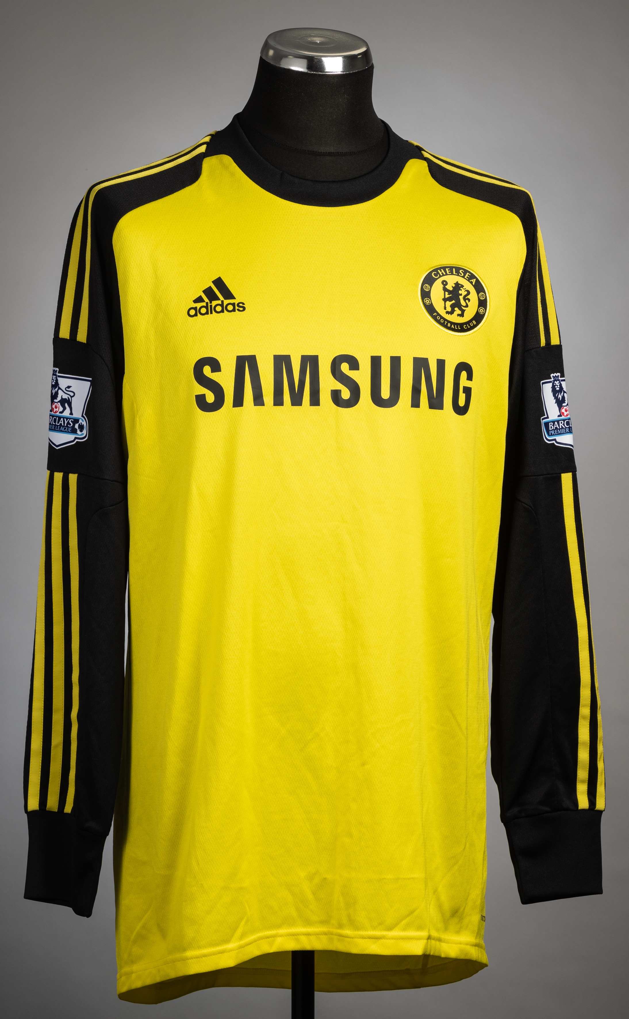 Mark Schwarzer signed yellow and black Chelsea no.23 goalkeeper's home jersey, season 2013-14, Adidas, long-sleeved with BARCLAYS PREMIER LEAGUE slee