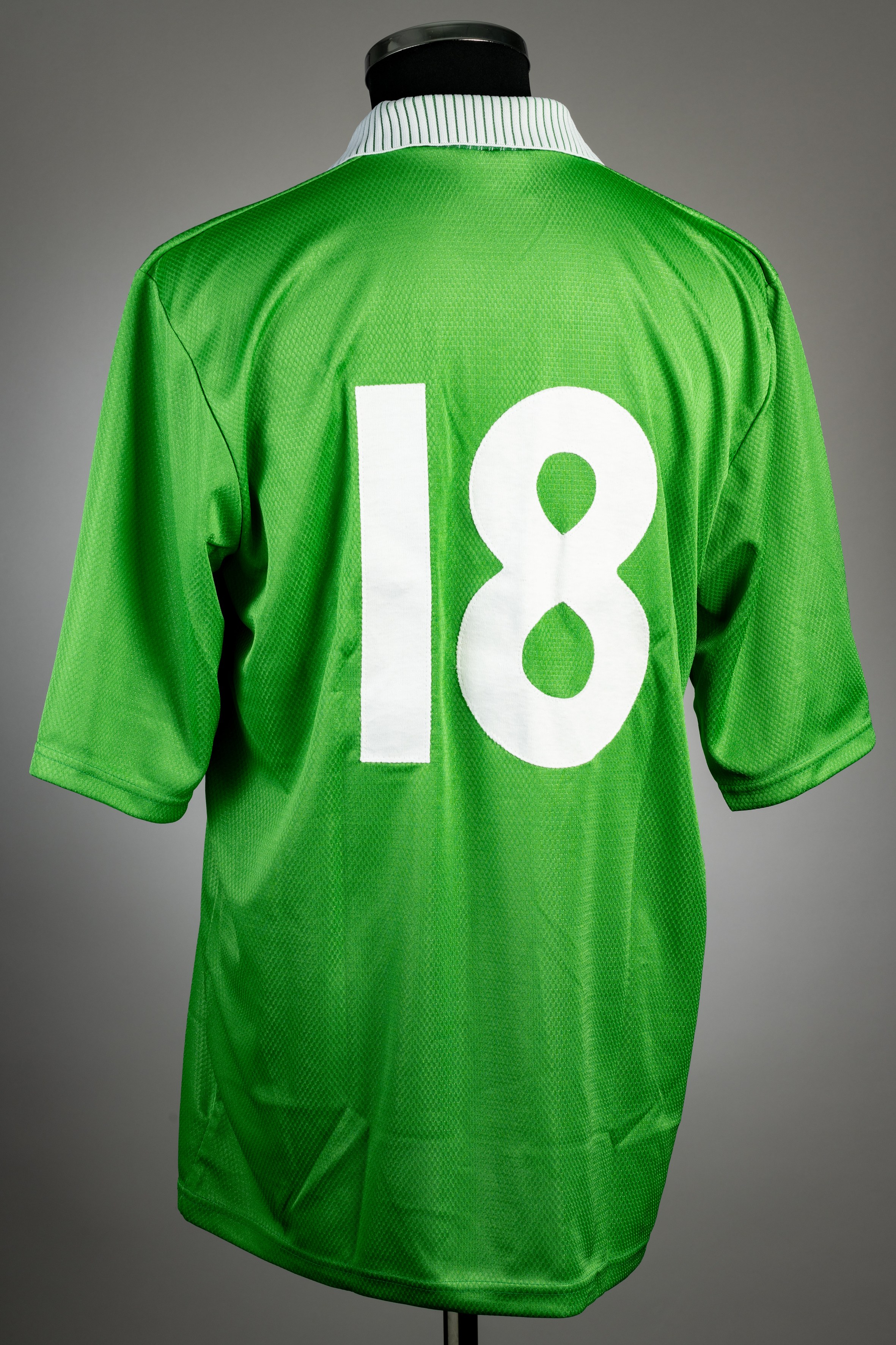 Green Northern Ireland no.18 jersey, circa 1994-95 Asics, short-sleeved with national emblem, reverse numbered 18, size large, condition is good