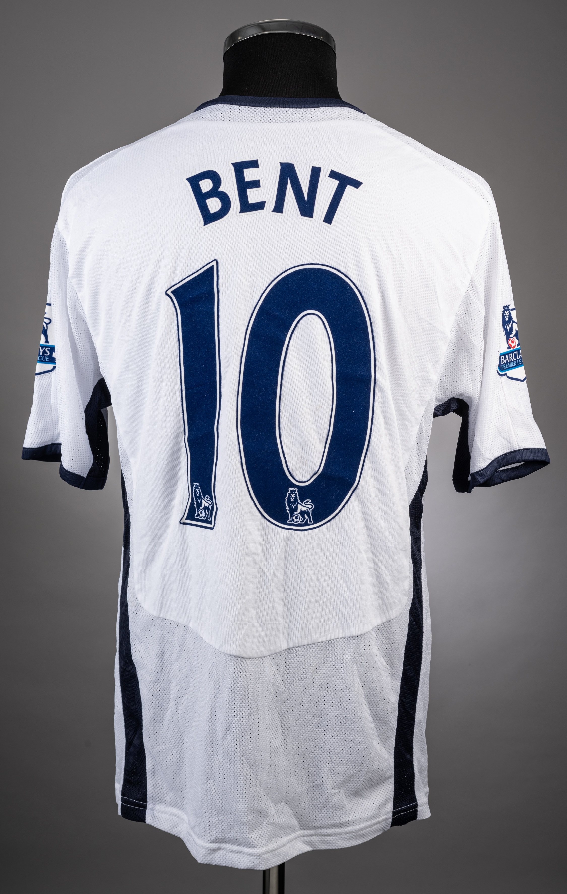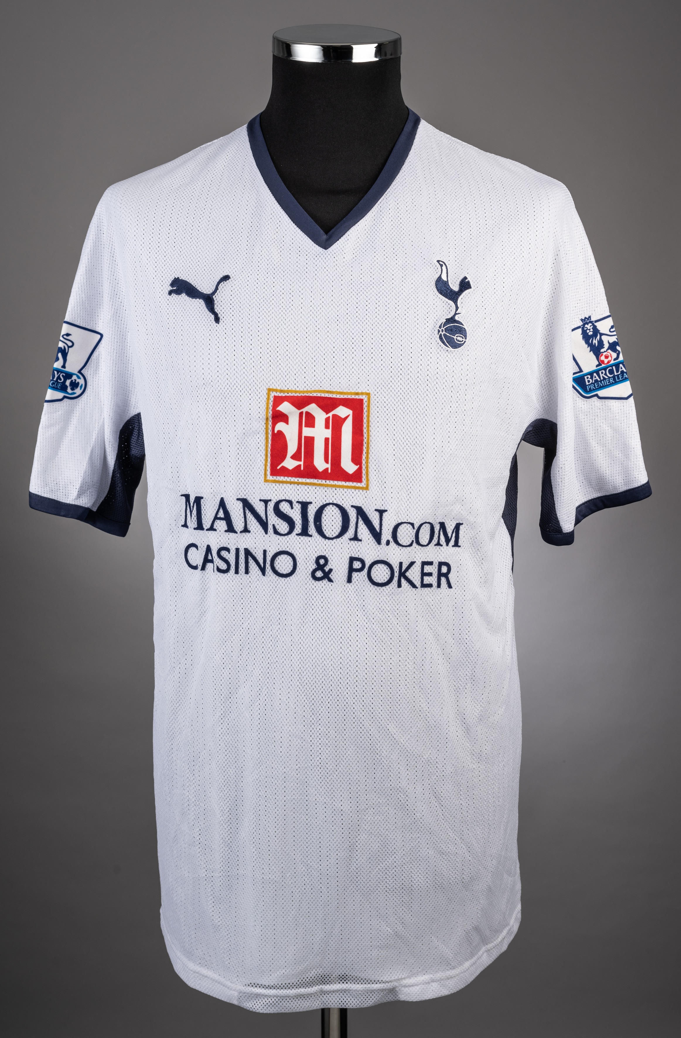 Darren Bent white No.10 Tottenham Hotspur short-sleeved jersey, 2008-09, Puma, L, with v-neck collar and embroidered badge, the reverse lettered BENT, the sleeves with Barclays Premier League flashes
