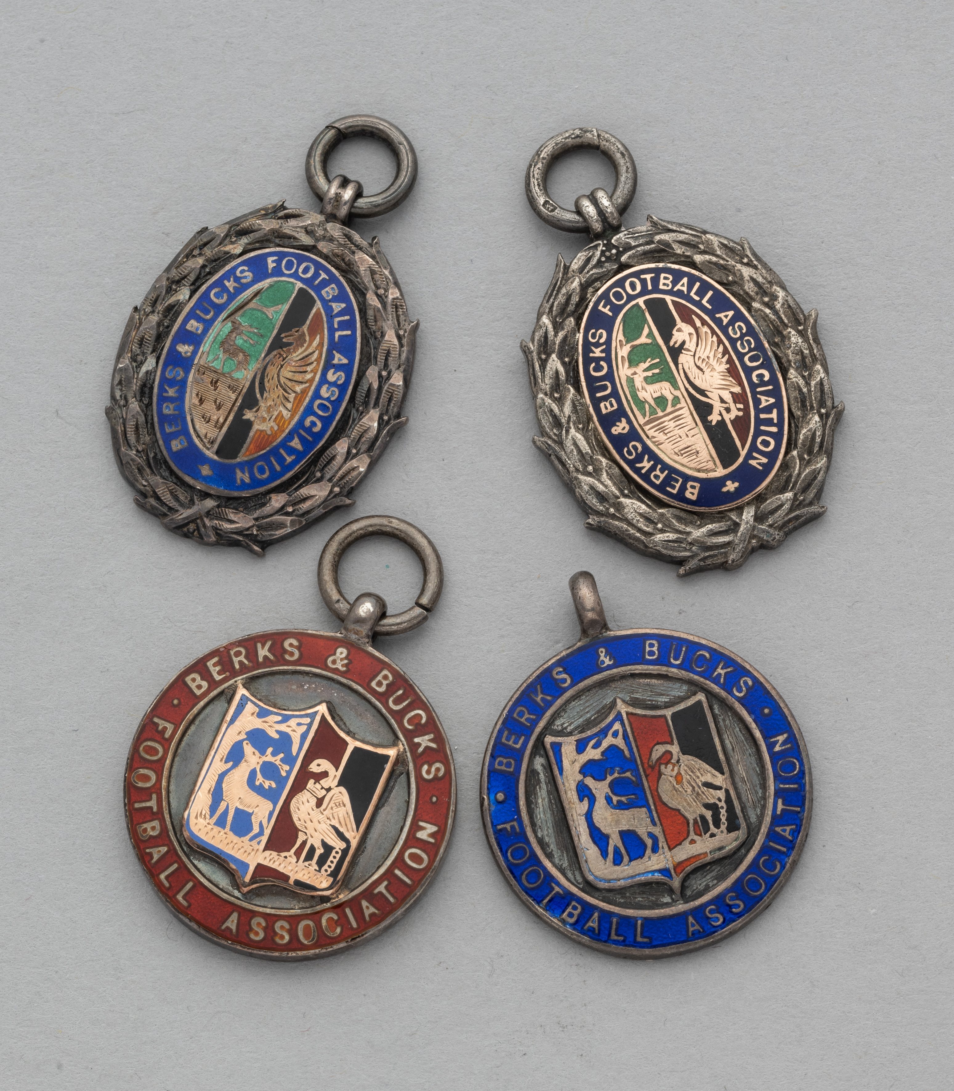 Four silver and enamel Berks & Bucks Football Association medals, 1920s/30s, the obverse of each inscribed Berks & Bucks Football Association, the r