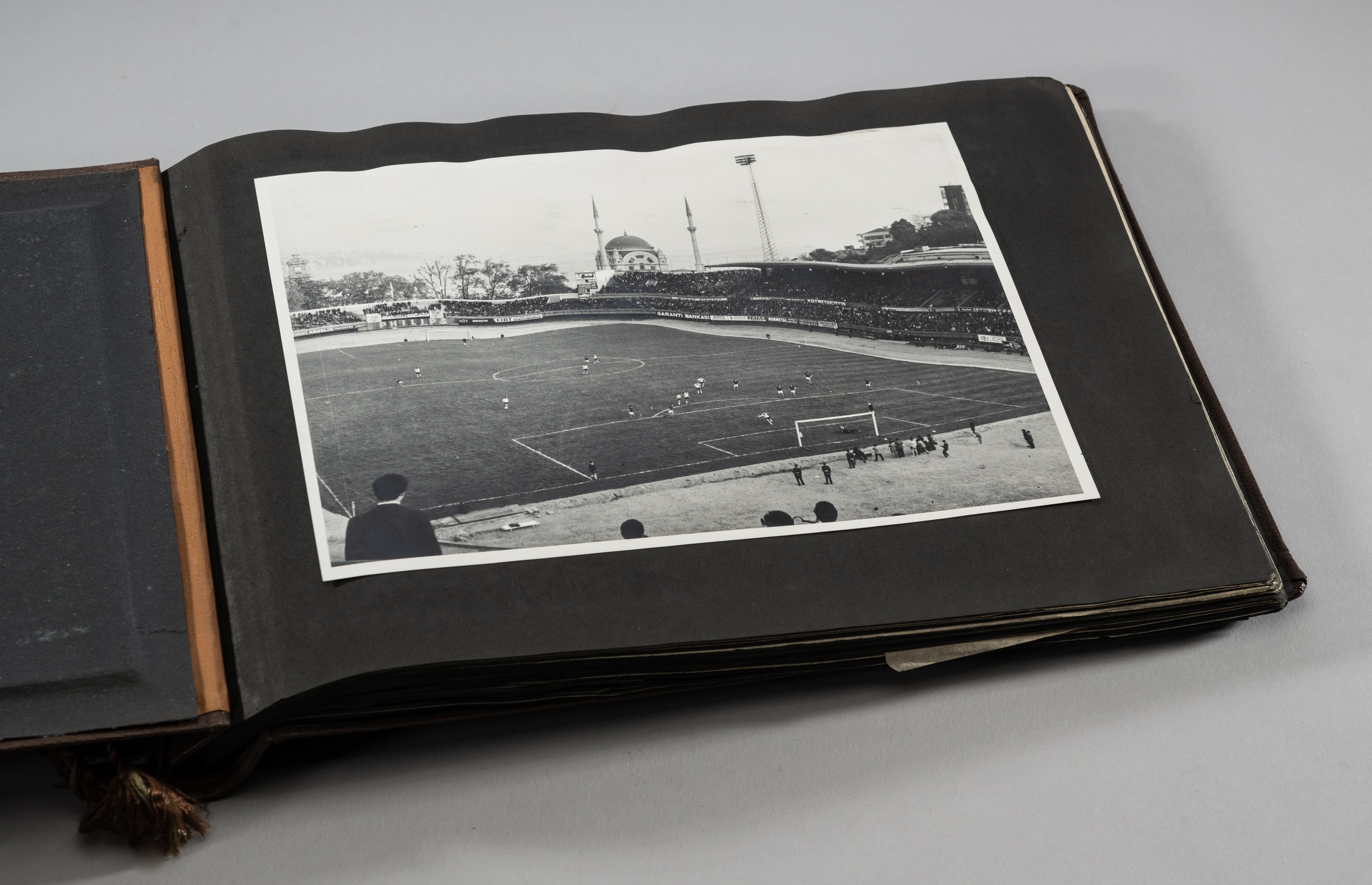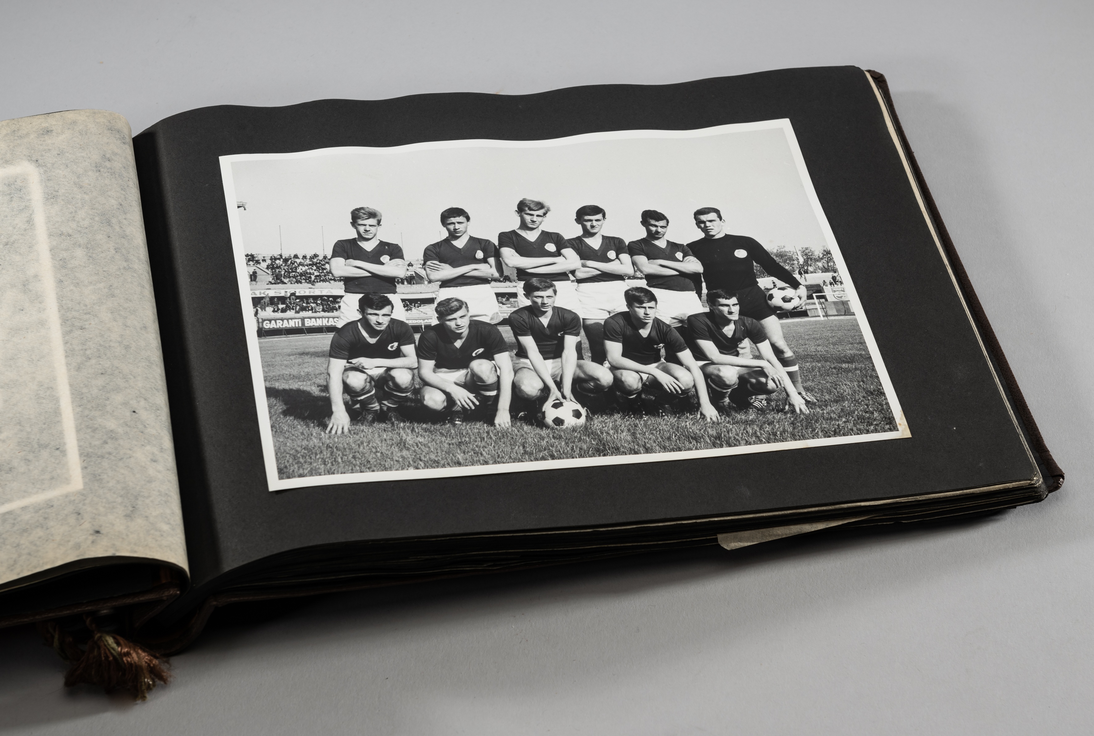 Official souvenir photograph album of the UEFA U-18 Youth tournament in Turkey in 1967, the leather bound album set with inset copper embossed pictor