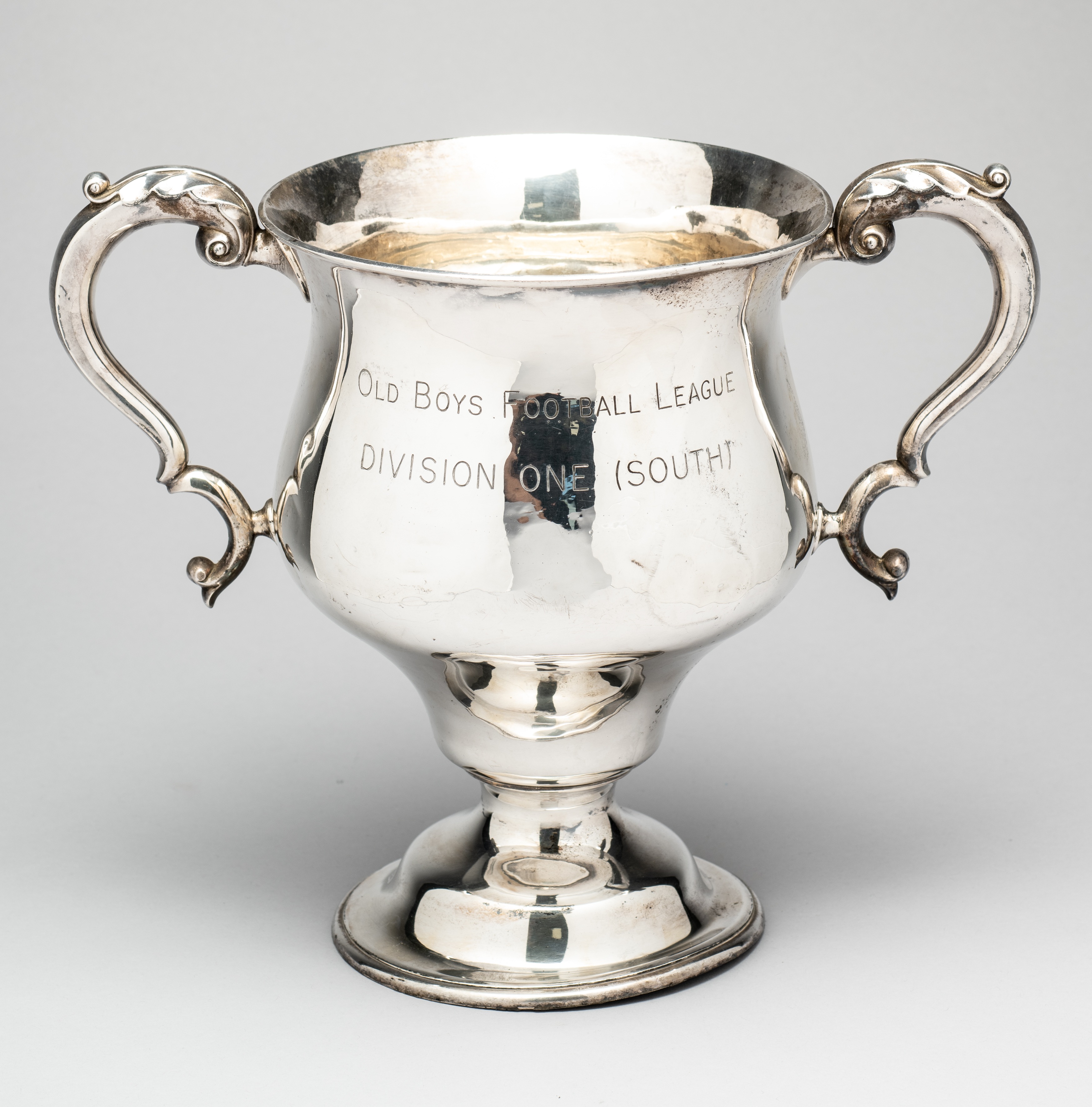 The trophy for the Old Boys Football League Division One (South) as presented by the Nemean Amateur Football League, in the form of a hallmarked silv