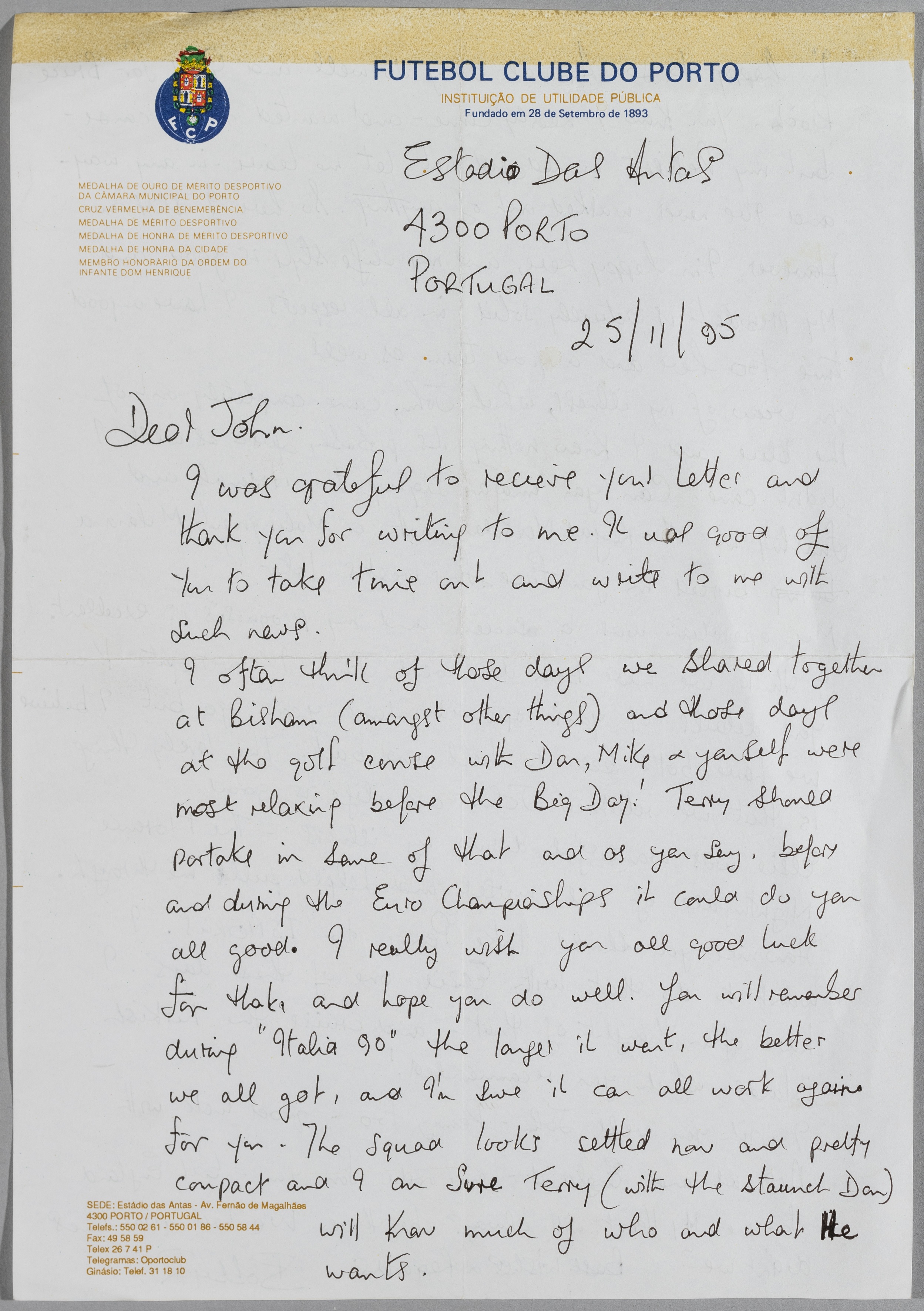 Bobby Robson handwritten and signed letter on Porto letterhead, dated 2005,