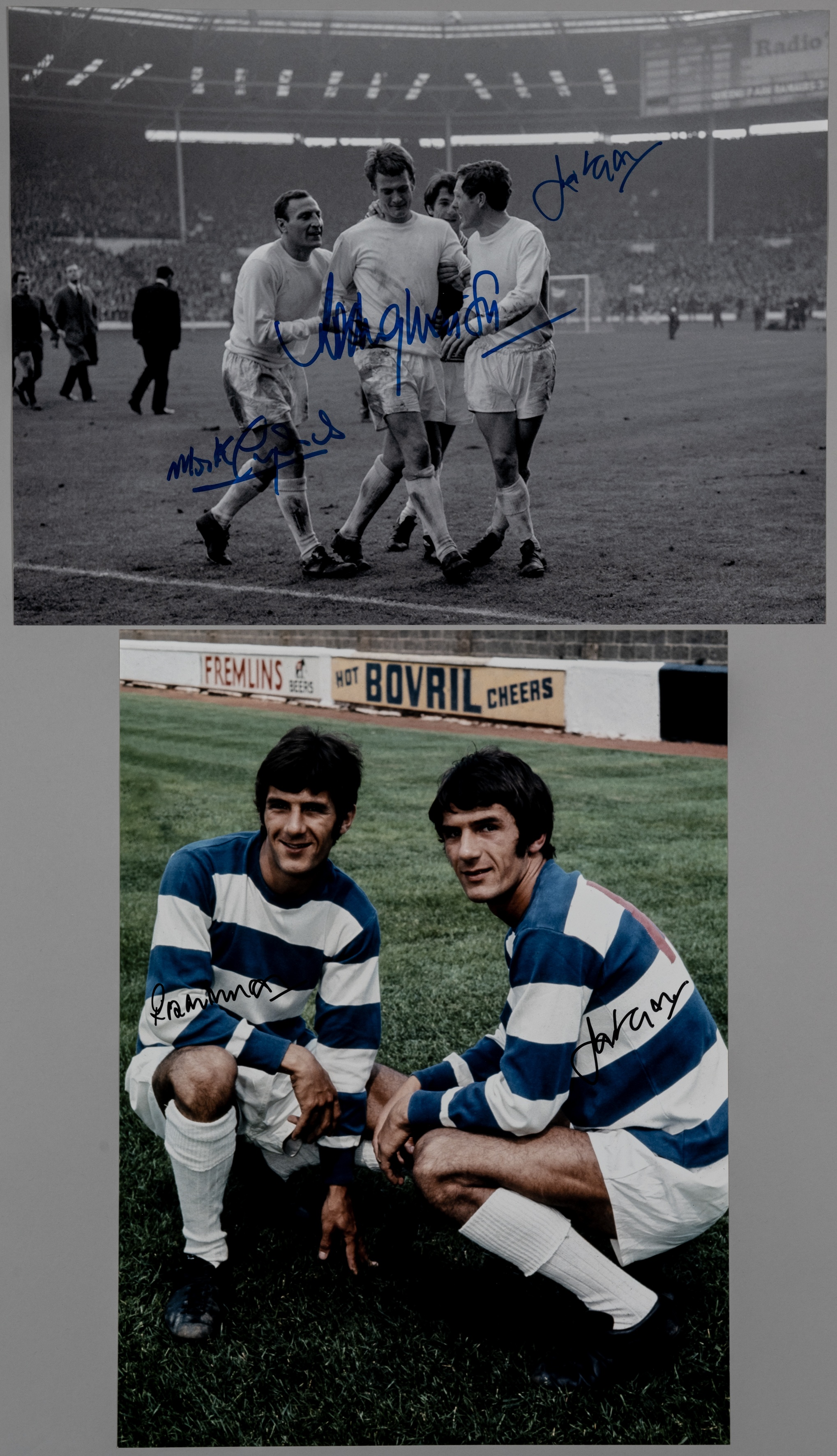 QPR 1967 League Cup Winners Rodney Marsh, Mark Lazarus and Ian Morgan, pair of large 16 by 12in. signed display photographs, Rodney Marsh, Mark Lazar