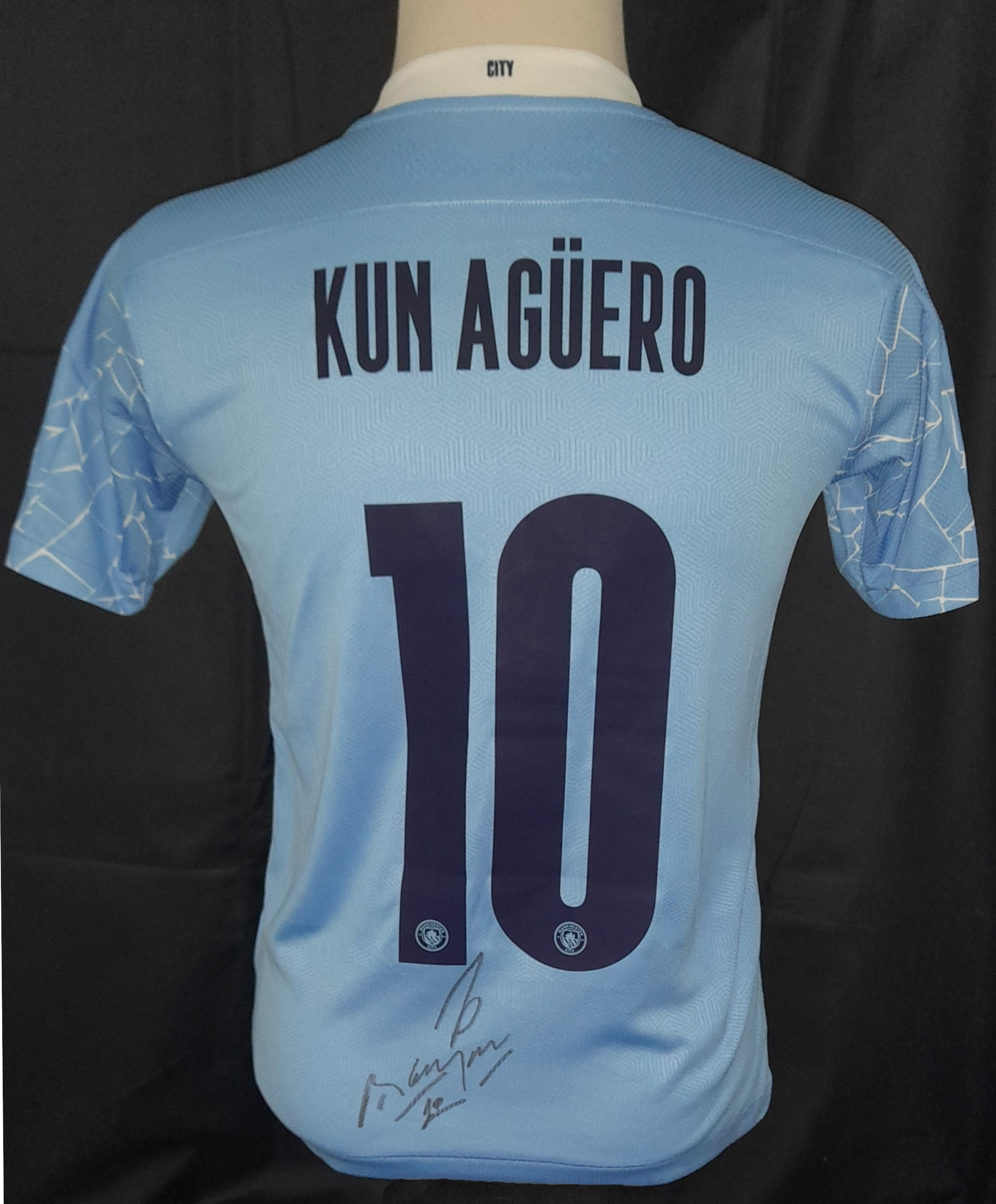 Sergio Aguero signed Manchester City 2020-21 home jersey, signed to rear below his name and number 10, shirt is size S, brand new with official club