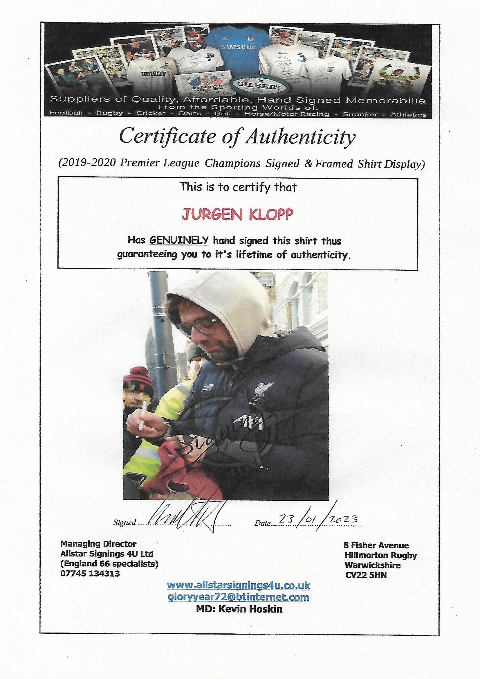 Liverpool manager Jurgen Klopp signed Liverpool 2019-20 Premier League season winning jersey, brand new official Liverpool FC merchandise with tags