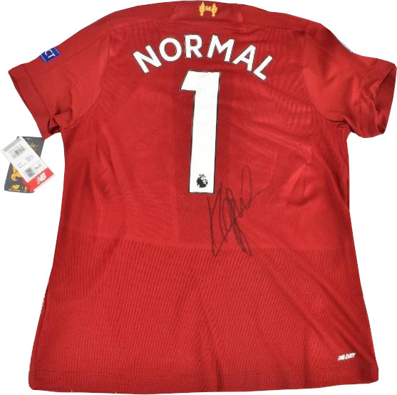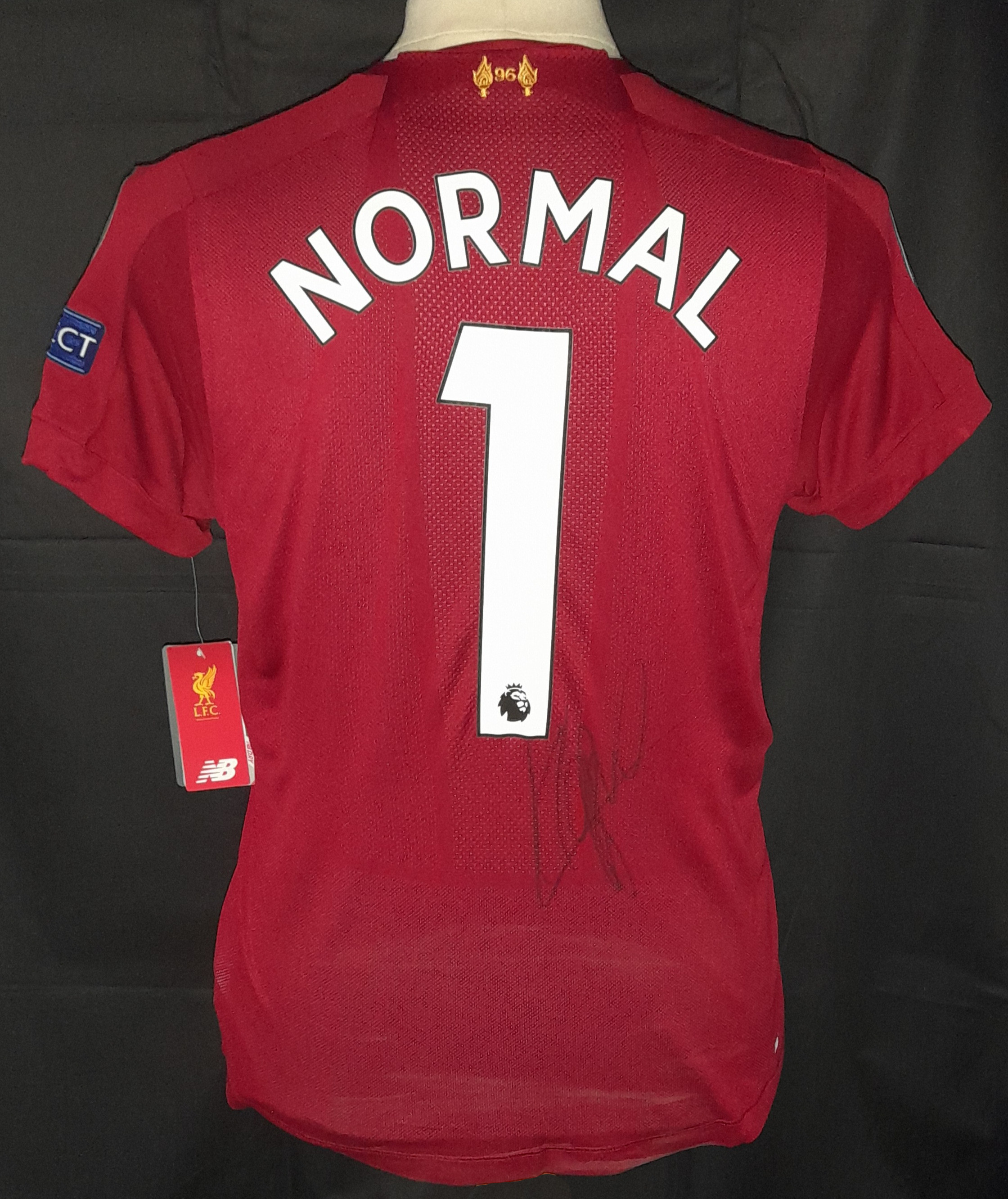 Liverpool manager Jurgen Klopp signed Liverpool 2019-20 Premier League season winning jersey, brand new official Liverpool FC merchandise with tags still attached, autographed by Klopp below how he called himself (with reference to Jose Mourinho) NORMAL 1 boldly and neatly, shirt has 6 European Cup/Champions League winners, UEFA Respect and current 2019 Champions League holders patches across both arms and comes with COA and photo proof