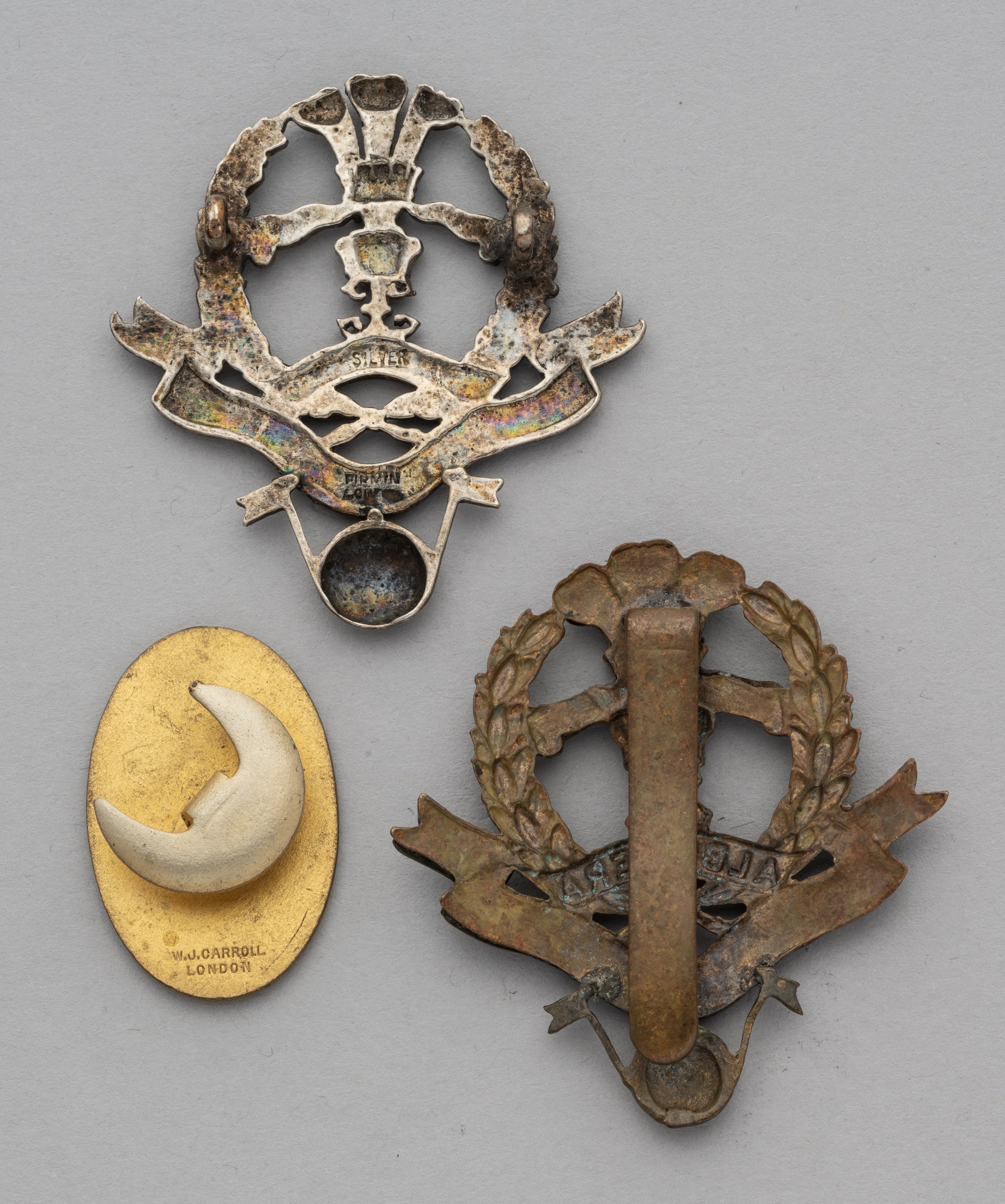 A silver Middlesex Regiment (Duke of Cambridge's Own) Football Battalion medal, another similar brass example and an Athletes' Volunteer Force gilt-metal and enamel lapel badge (3)