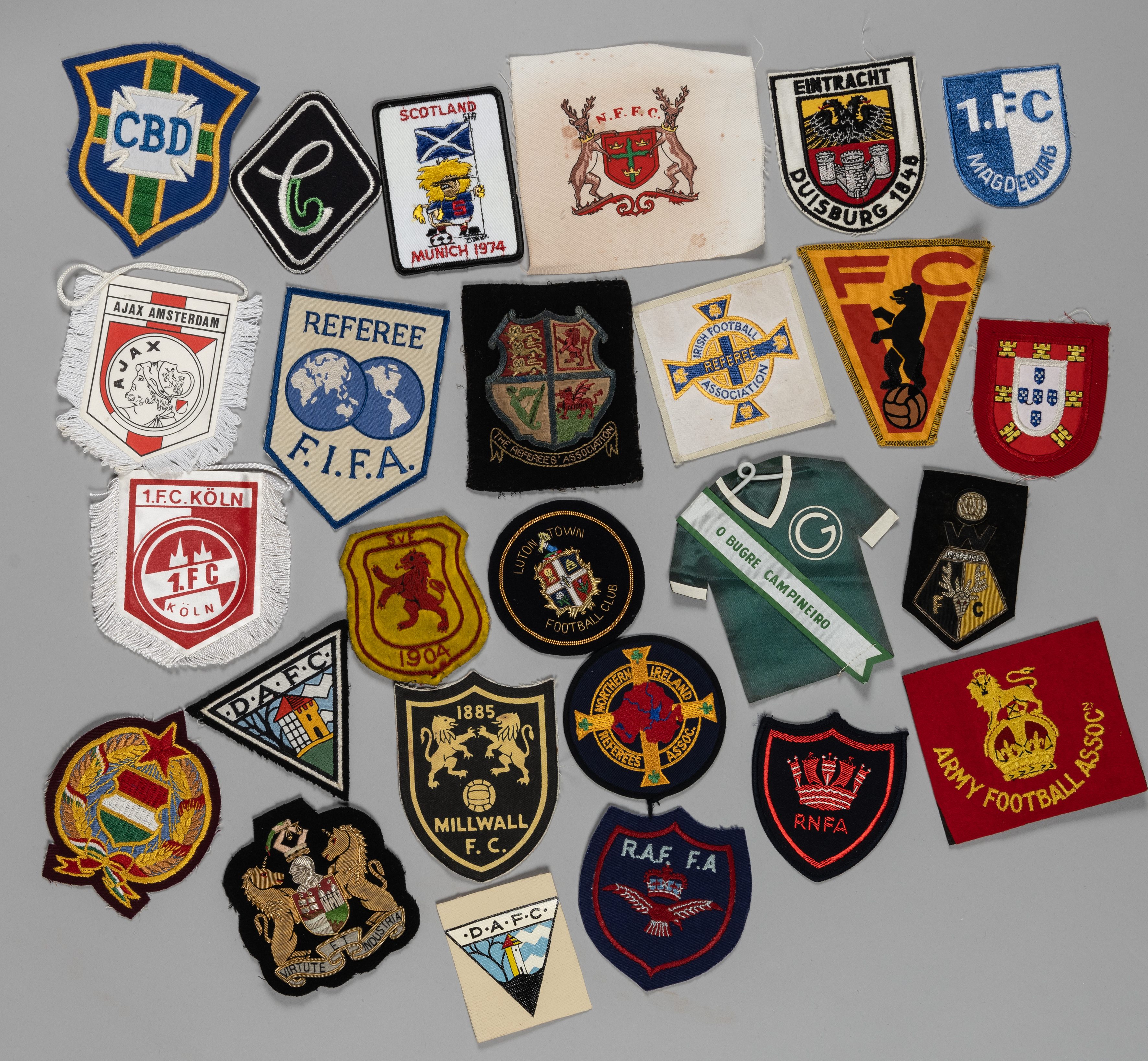A nice collection of blazer badges and Scottish International shirt badge, 1904 including, Northern Ireland F.A., Referees, Brazil, other European,