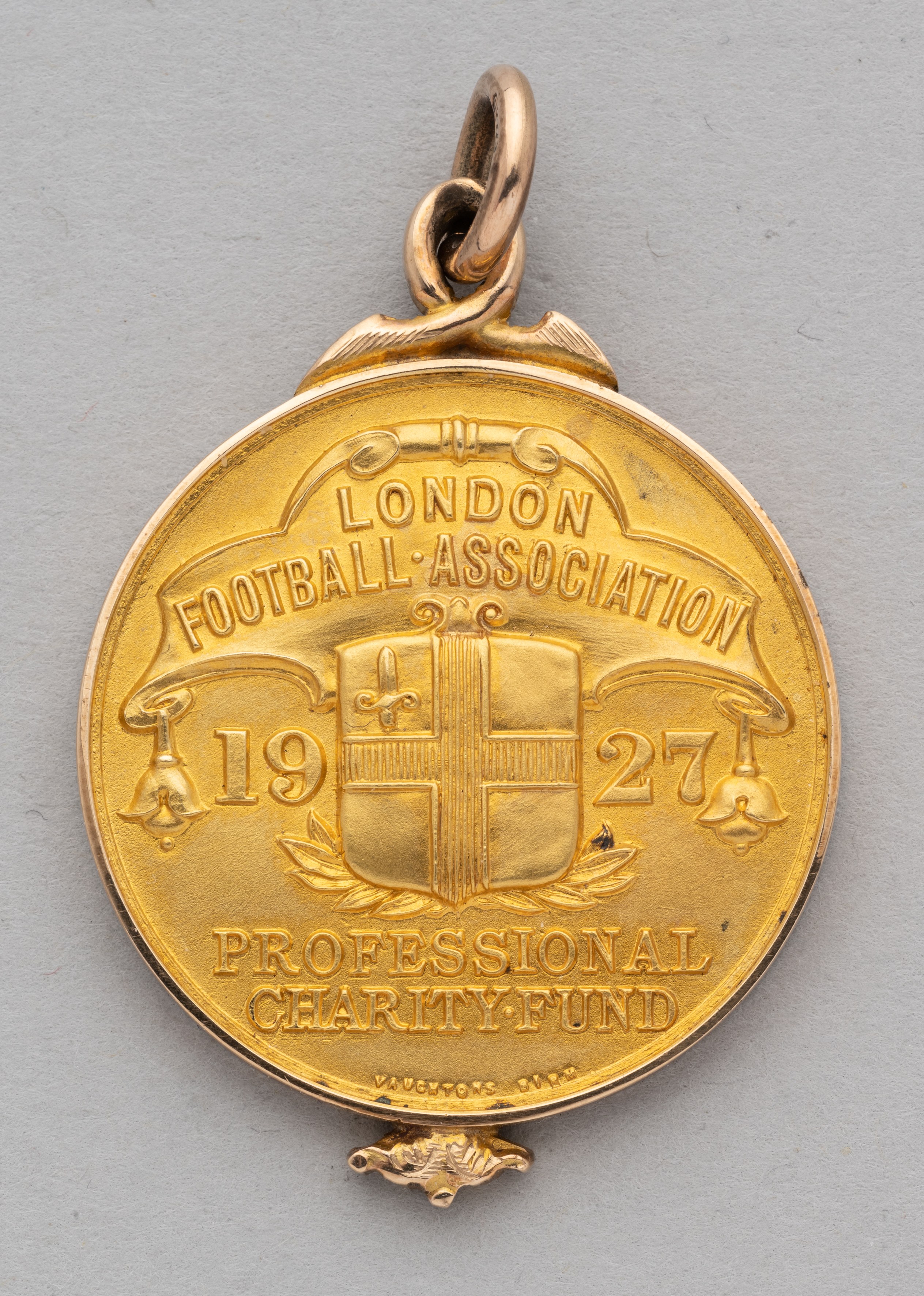 A 9ct gold London Football Association Professional Charity Fund medal, 1927, the obverse inscribed London Football Association Professional Charity Fund medal, 1927 with ring suspension in original inscribed fitted, 19grms