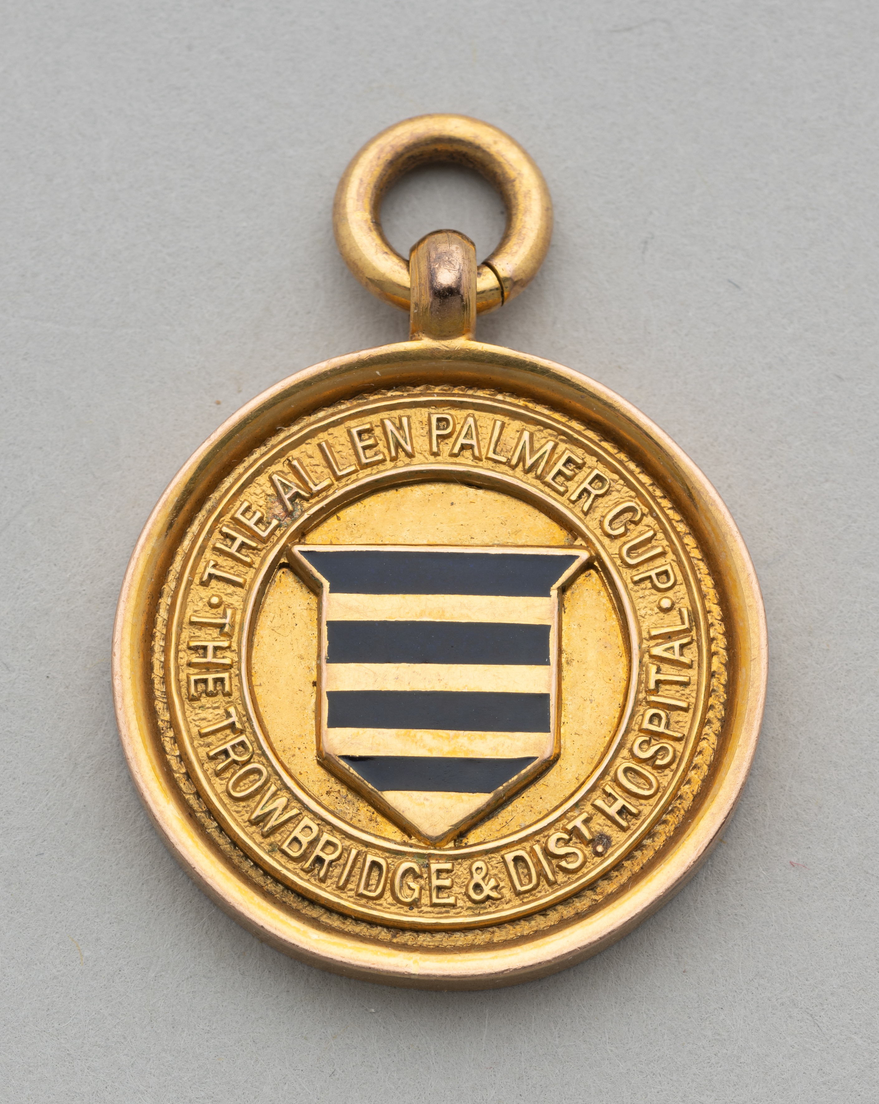 Bristol Rovers 9ct gold medal for the Allen Palmer Cup Trowbridge & District Hospital awarded to W Pickering, obverse with enamel crest, reverse eng