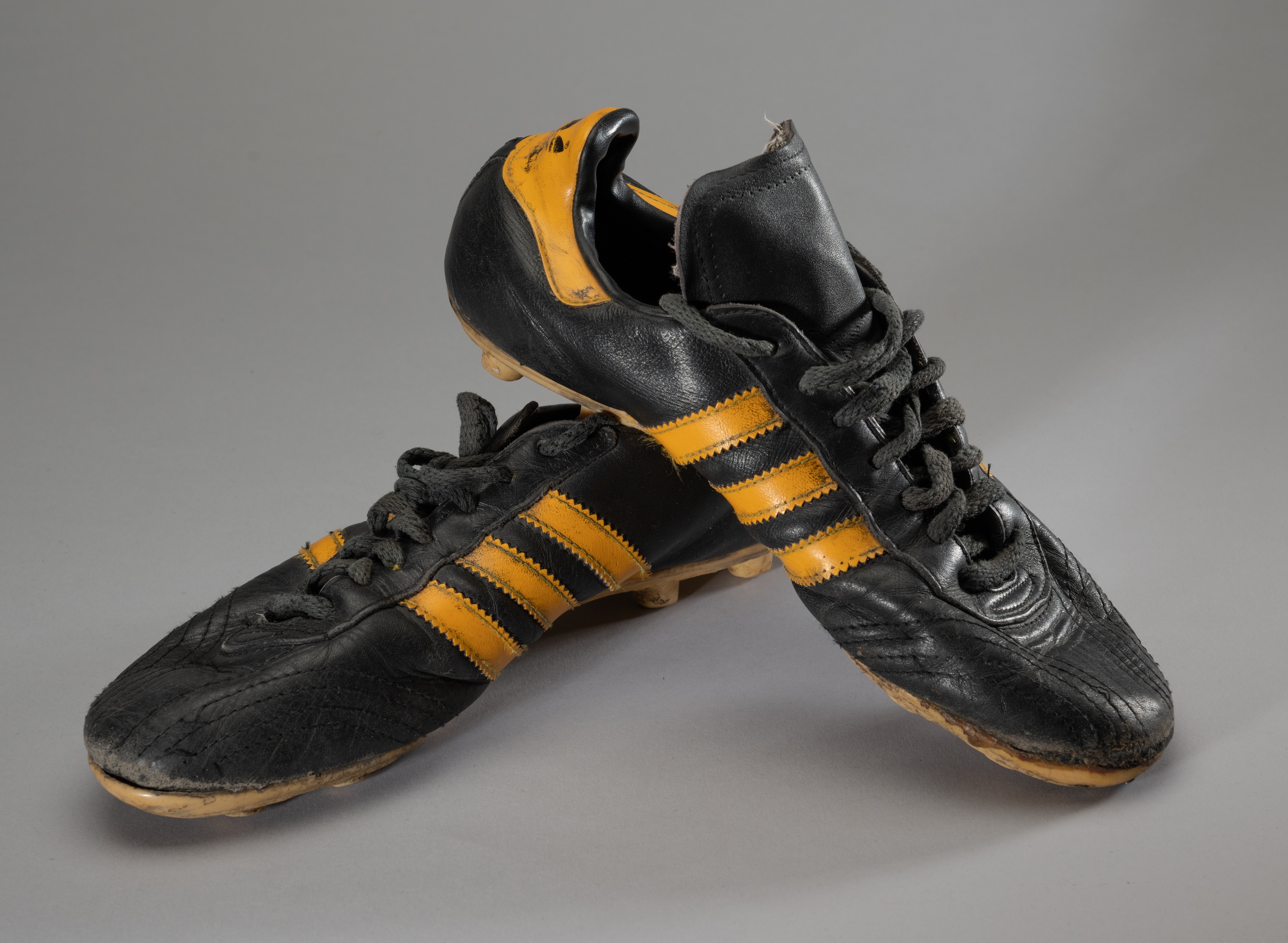 A pair of match worn Maradona, Adidas football boots from the 1976-77 season whilst a member of the Argentinos Juniors, size 7, the soles with rubber studs and they read "adidas Officially approved by FIFA, Maradona made 166 appearances for Argentinos Juniors between 1976-1981 scoring 116 goals Provenance: Racing Club Museum