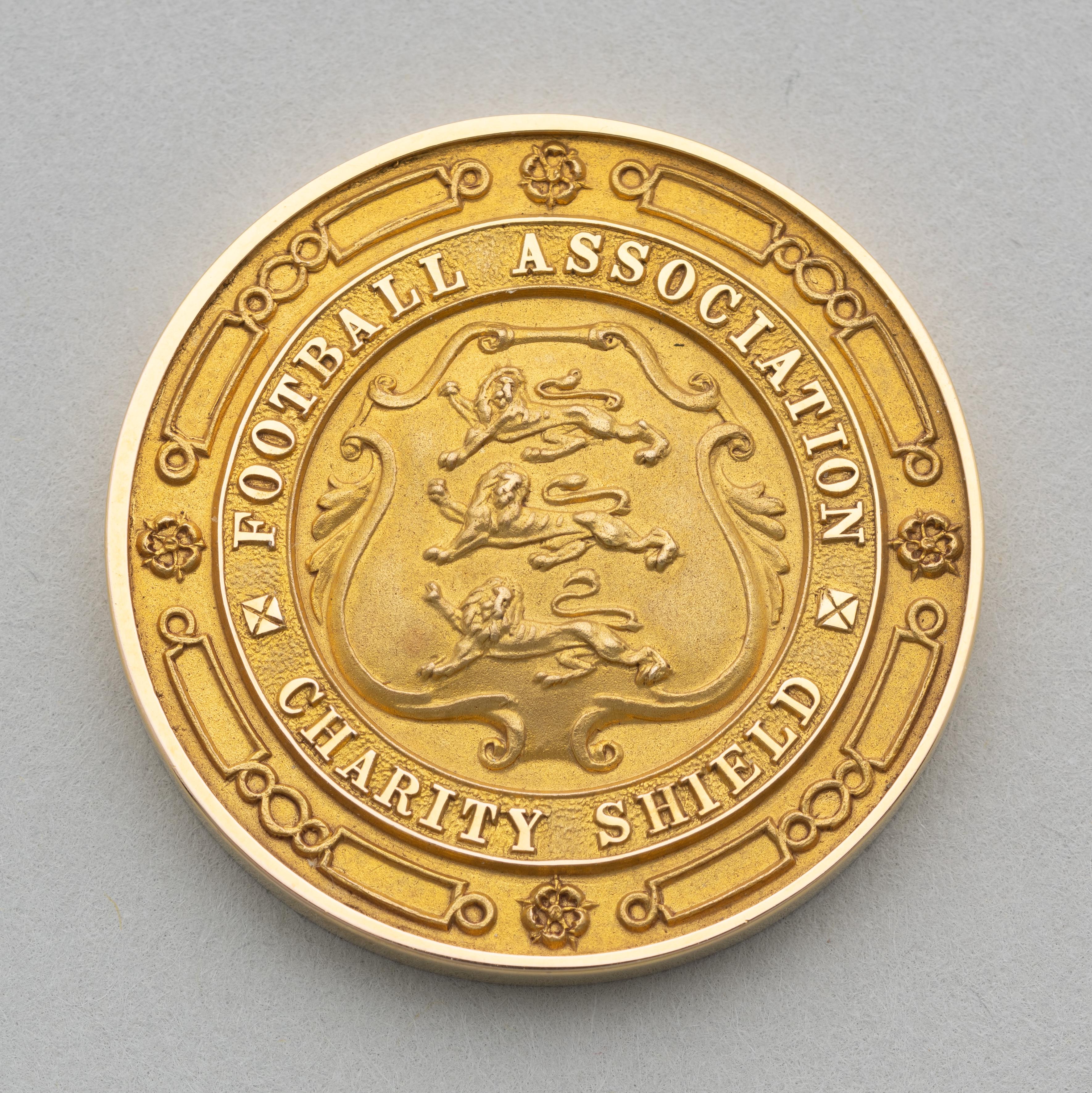 George Swindin 14ct gold 1948 Charity Shield medal, the obverse inscribed FOOTBALL ASSOCIATION CHARITY SHIELD, the reverse blank, in original fitted case, case inscribed THE FOOTBALL ASSOCIATION CHARITY SHIELD In the match played on 6th October 1948 at Highbury Arsenal defeated Manchester United 4-3 George Swindin joined Arsenal in April 1936 for £4,000 and made his debut against Brentford, playing 19 matches in his first season. The following season he played in 17 League matches helping arsenal to the League title. He continued to play through the WWII for Arsenal, while serving as a physical training instructor in the Army, making guest appearances for clubs including Leeds United, Clapton Orient and Southampton. At the resumption of football proper after the war he became the Arsenal undisputed No.1, a commanding keeper with excellent aerial ability and assured handling. He won a second league title in 1947-48 and a third in 1952-53 and appeared in two F.A. Cup finals. Lots 592-603 relate to the playing career George Swindin
