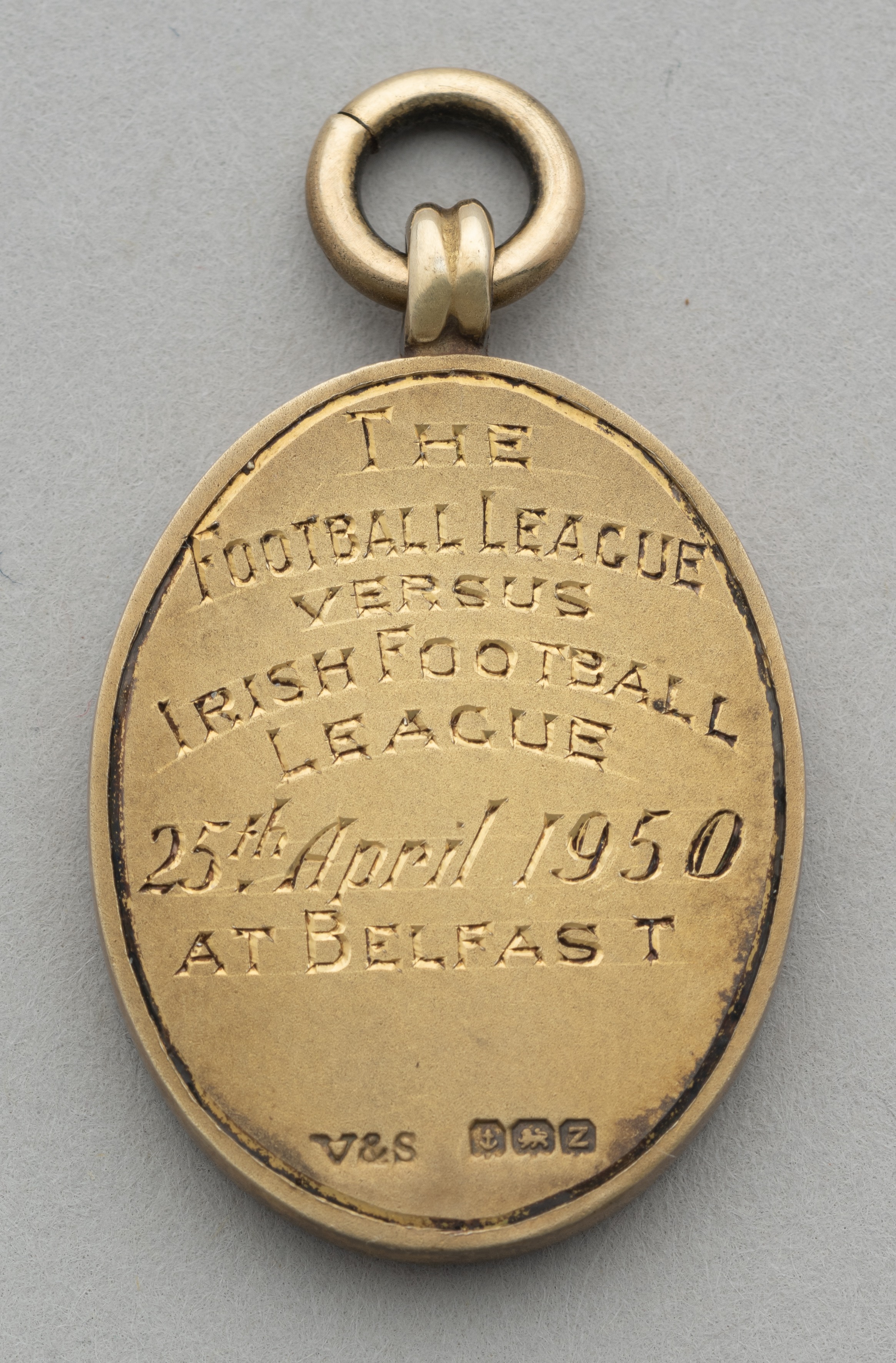 Peter Harris silver-gilt 1950 Football League Representative medal, the obverse inscribed THE FOOTBALL LEAGUE REPRESENTATIVE MATCH, the reverse inscribed THE FOOTBALL LEAGUE VERSUS IRISH FOOTBALL LEAGUE, 25th April 1950 at Belfast, in original fitted case In the match played on 25th April at Windsor Park, Belfast, The Football League defeated The Irish League 3-1 Lot 605 to 609 relate to Peter Harris