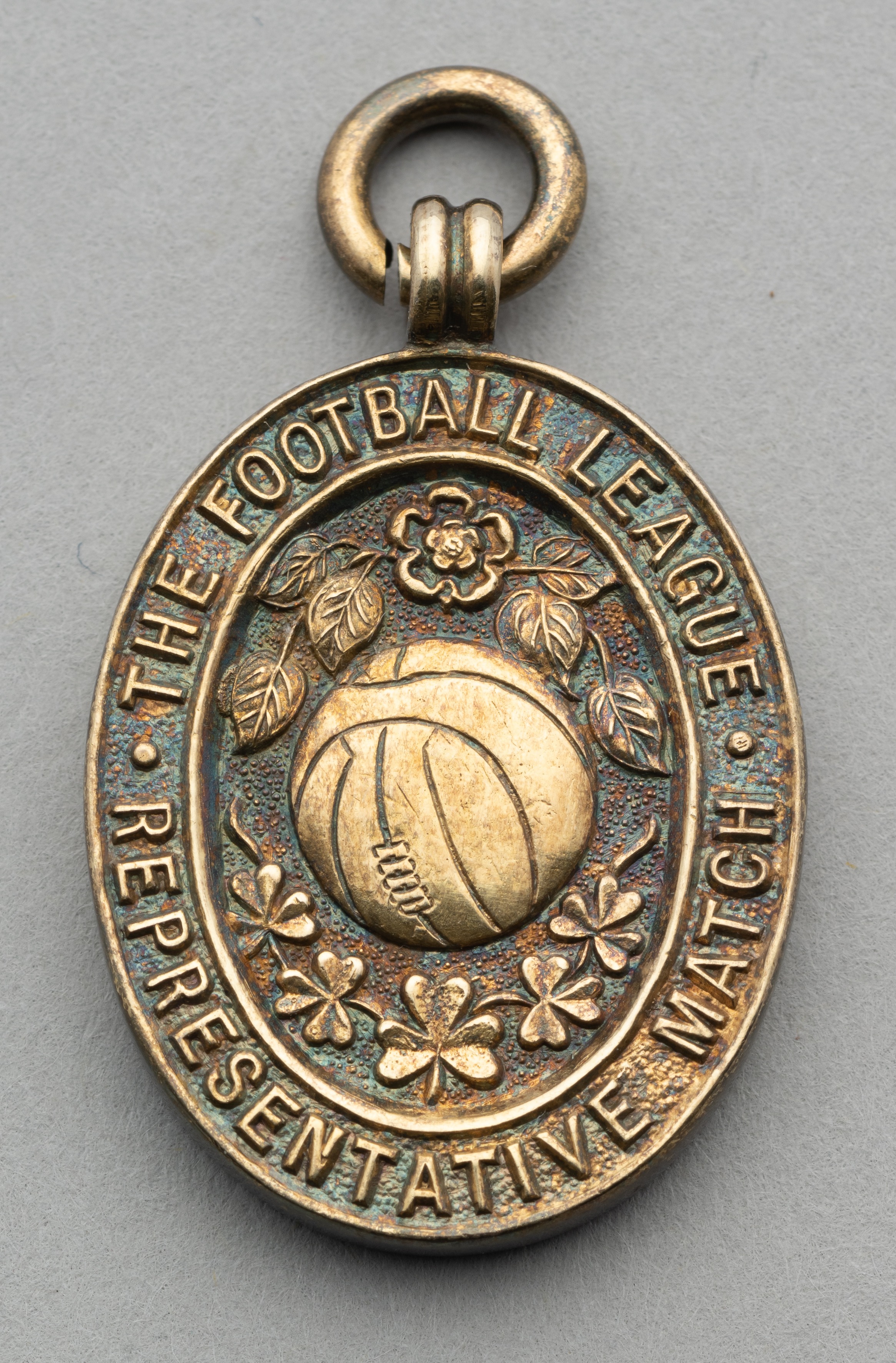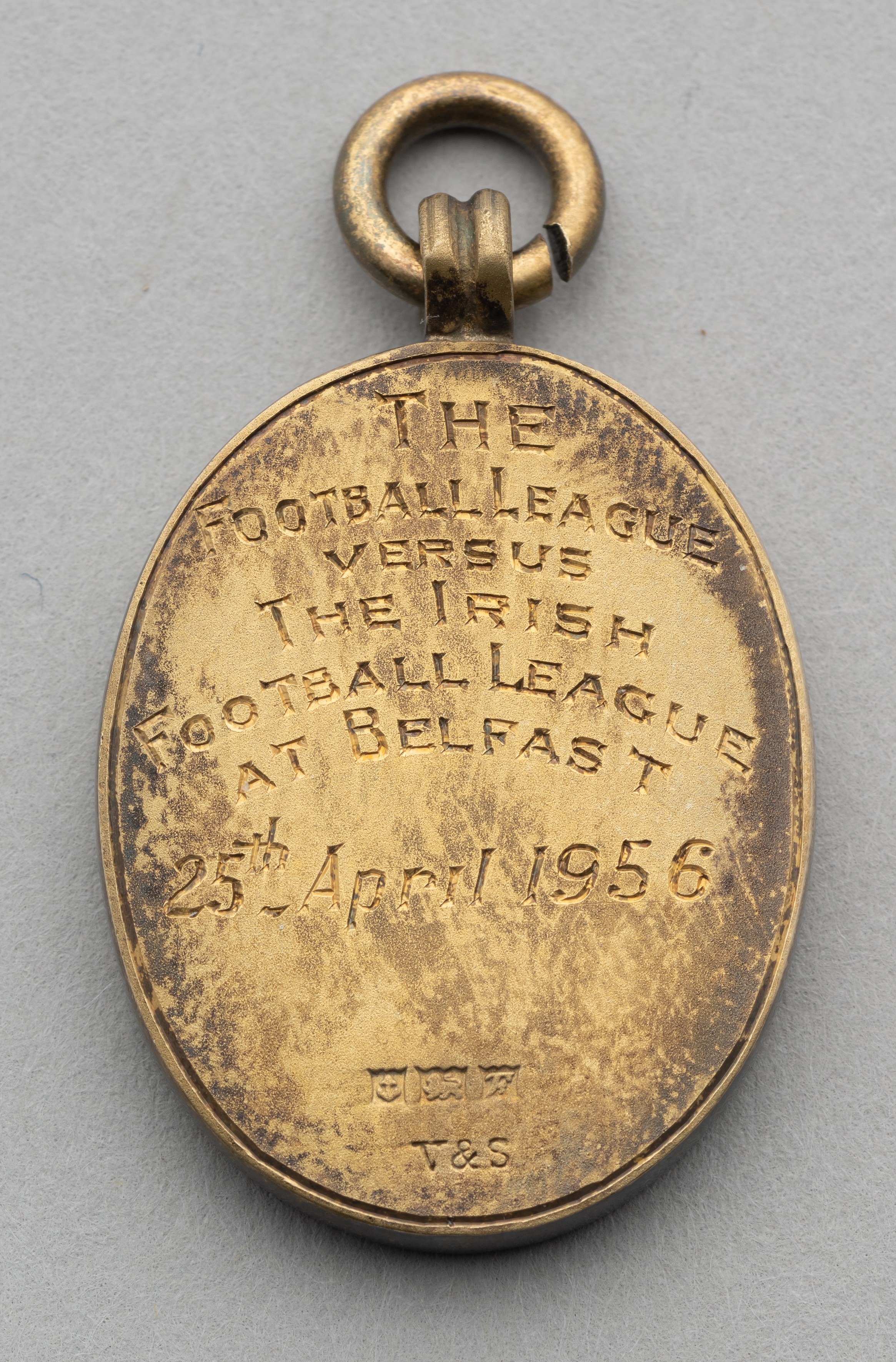 Peter Harris silver-gilt 1956 Football League Representative medal, the obverse inscribed THE FOOTBALL LEAGUE REPRESENTATIVE MATCH, the reverse inscribed THE FOOTBALL LEAGUE VERSUS THE IRISH FOOTBALL LEAGUE, at Belfast, 25th April 1956, in original fitted case In the match played on 25th April 1956 at Windsor Park, Belfast, The Irish Football League defeated The Football League 5-2 Lot 605 to 609 relate to Peter Harris
