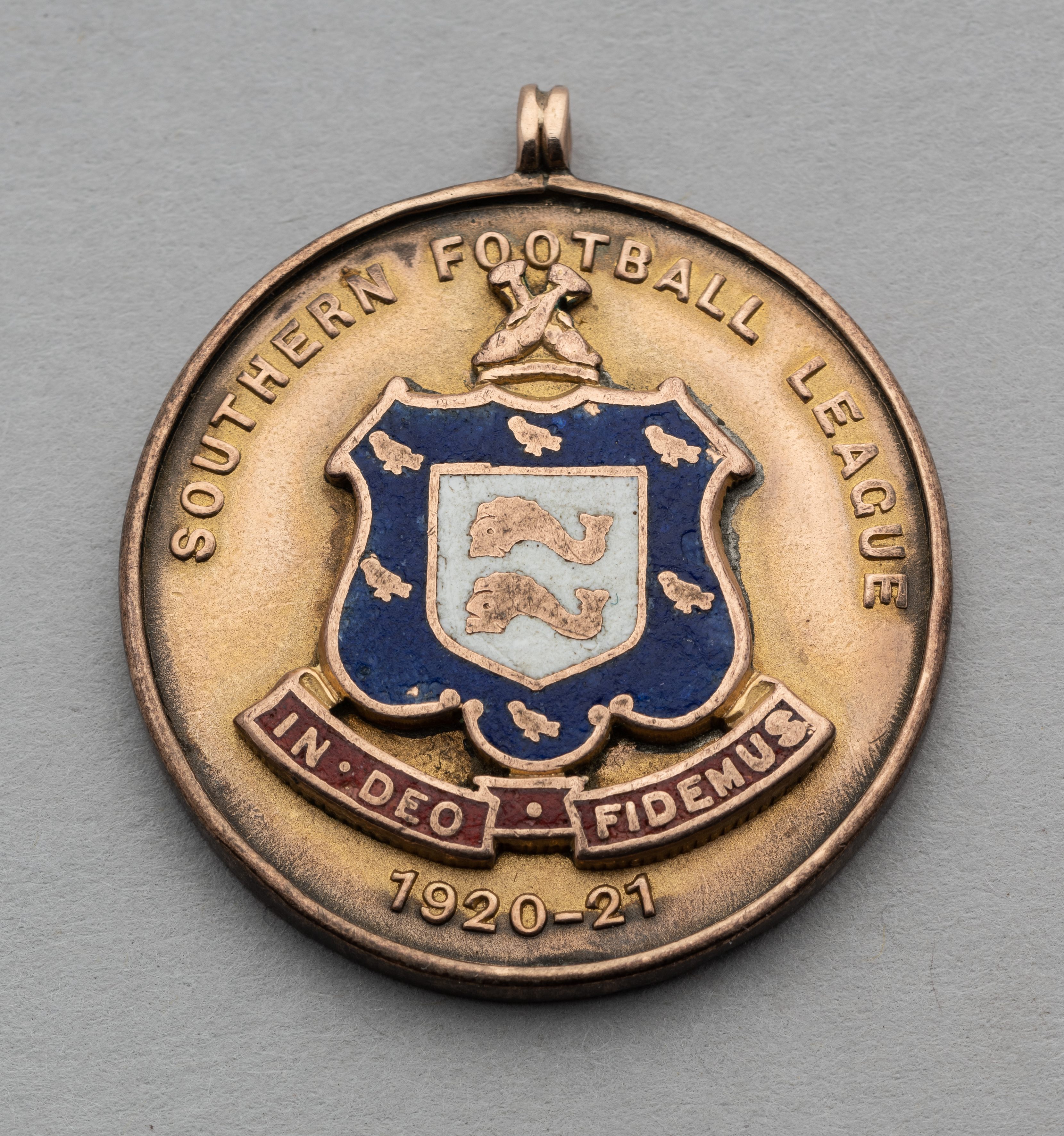 9ct gold & enamel Southern League Championship medal won by Dai Williams of Brighton & Hove Albion in season 1920-21, fully inscribed with competitio