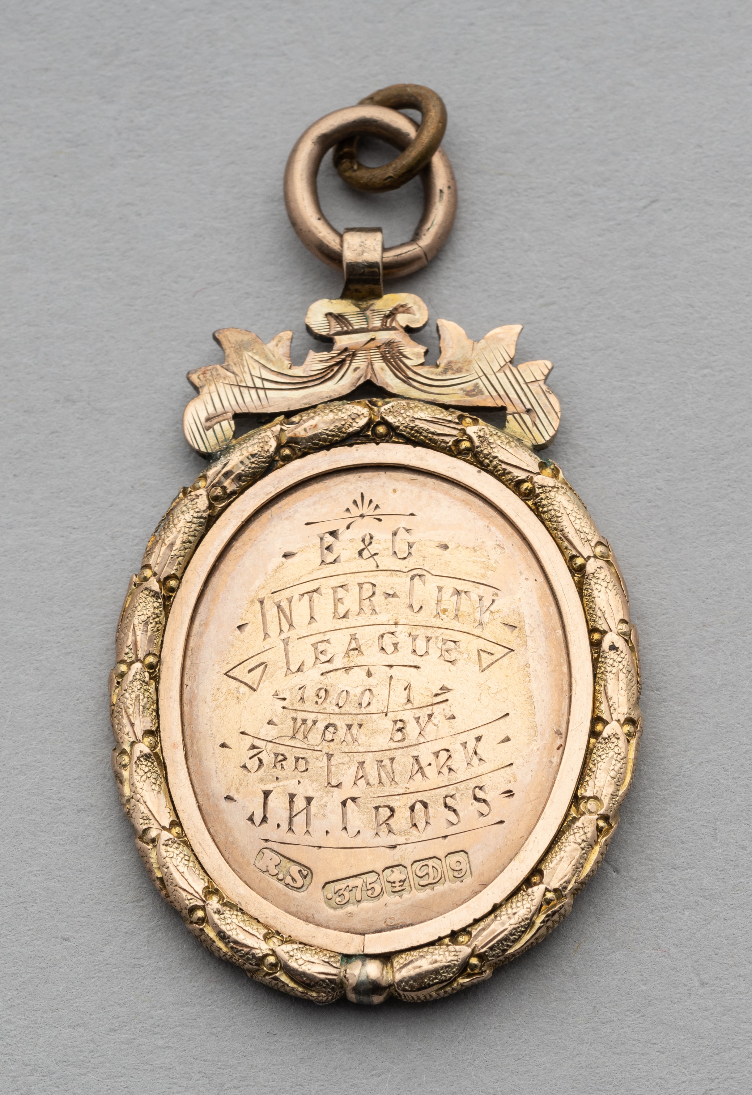 Edinburgh & Glasgow inter-city league winners medal awarded to J.H. Cross of Third Lanark FC in season 1900-01, 9ct gold, fully inscribed with compet