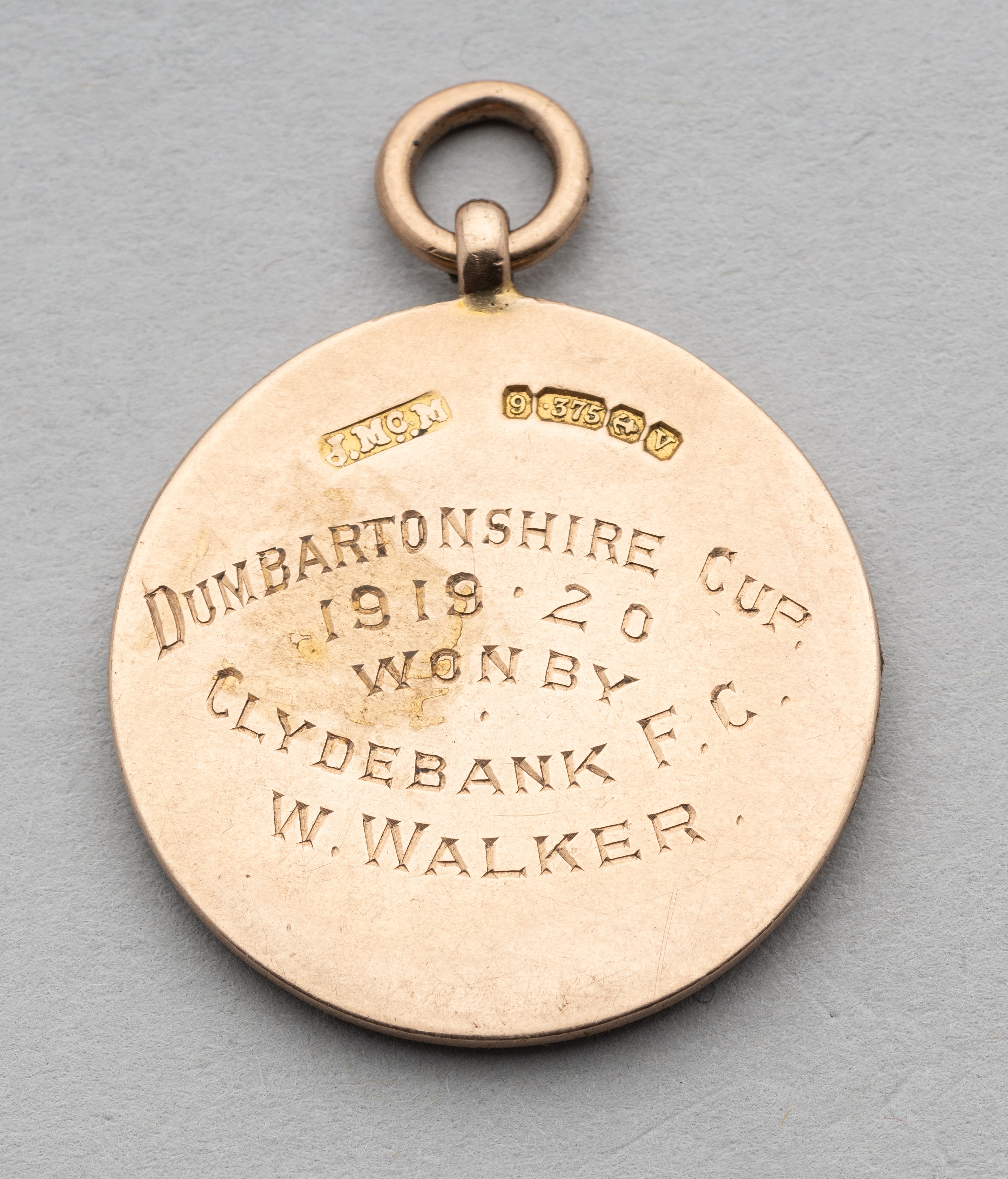 9ct gold & enamel Dunbartonshire Cup winner's medal awarded to William Walker of Clydebank FC in season 1919-20, fully inscribed with competition det