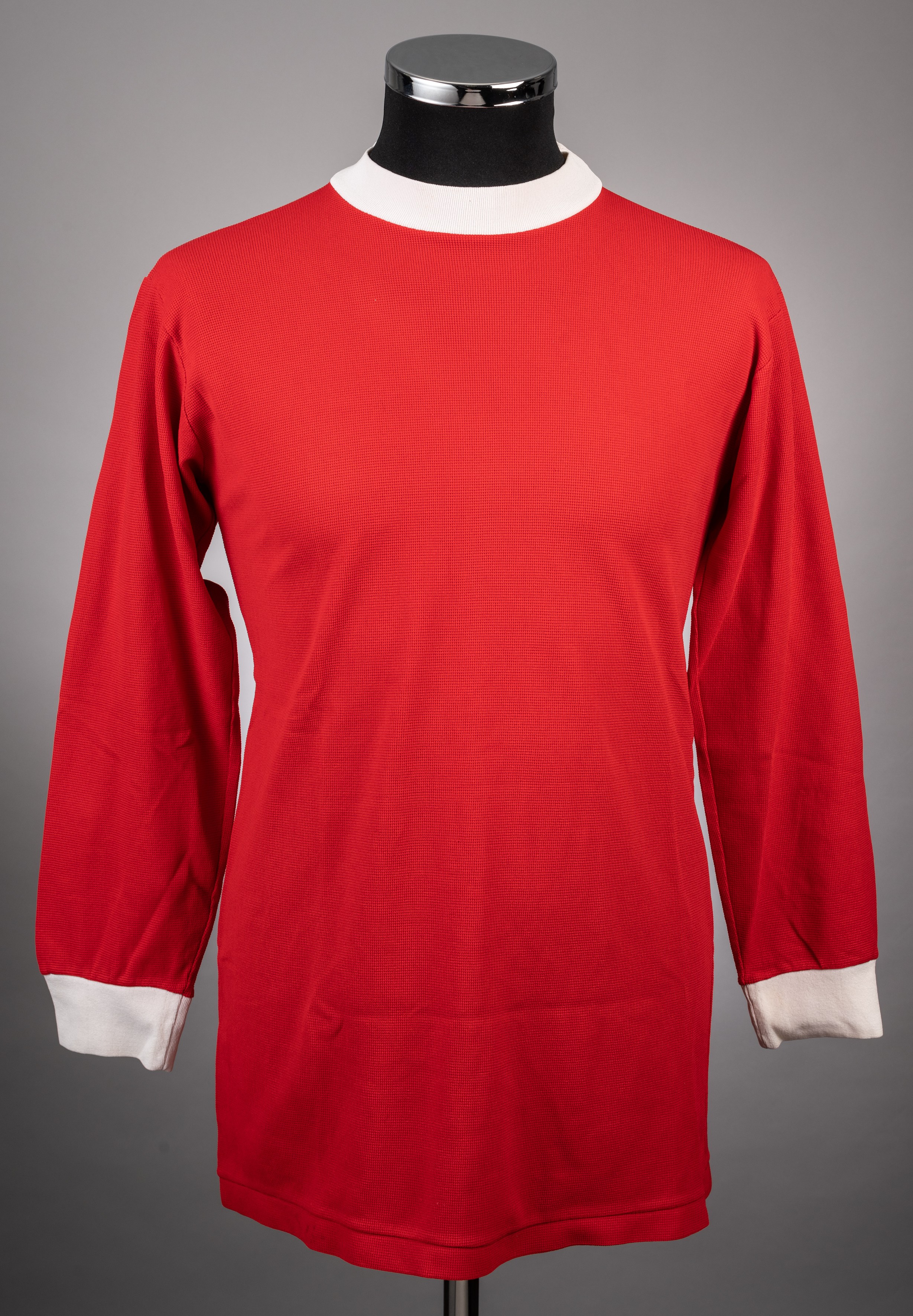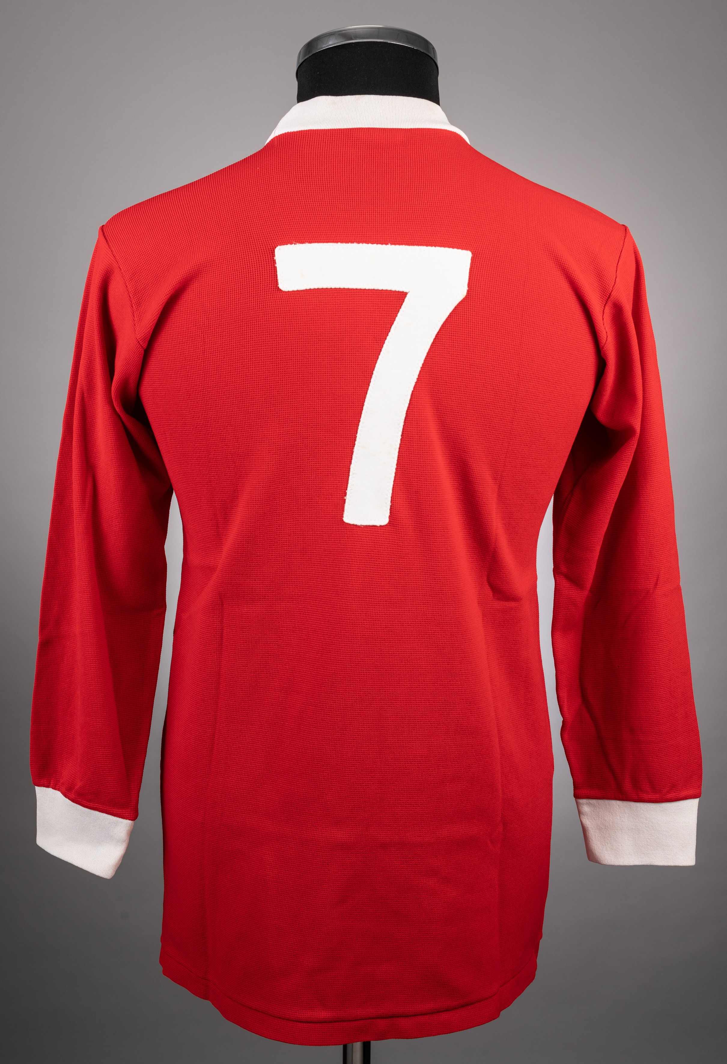 George Best red No.7 Manchester United jersey, 1967-68, Umbro, with crew-neck collar The jersey was worn by George Best and given to Tommie Hamilt