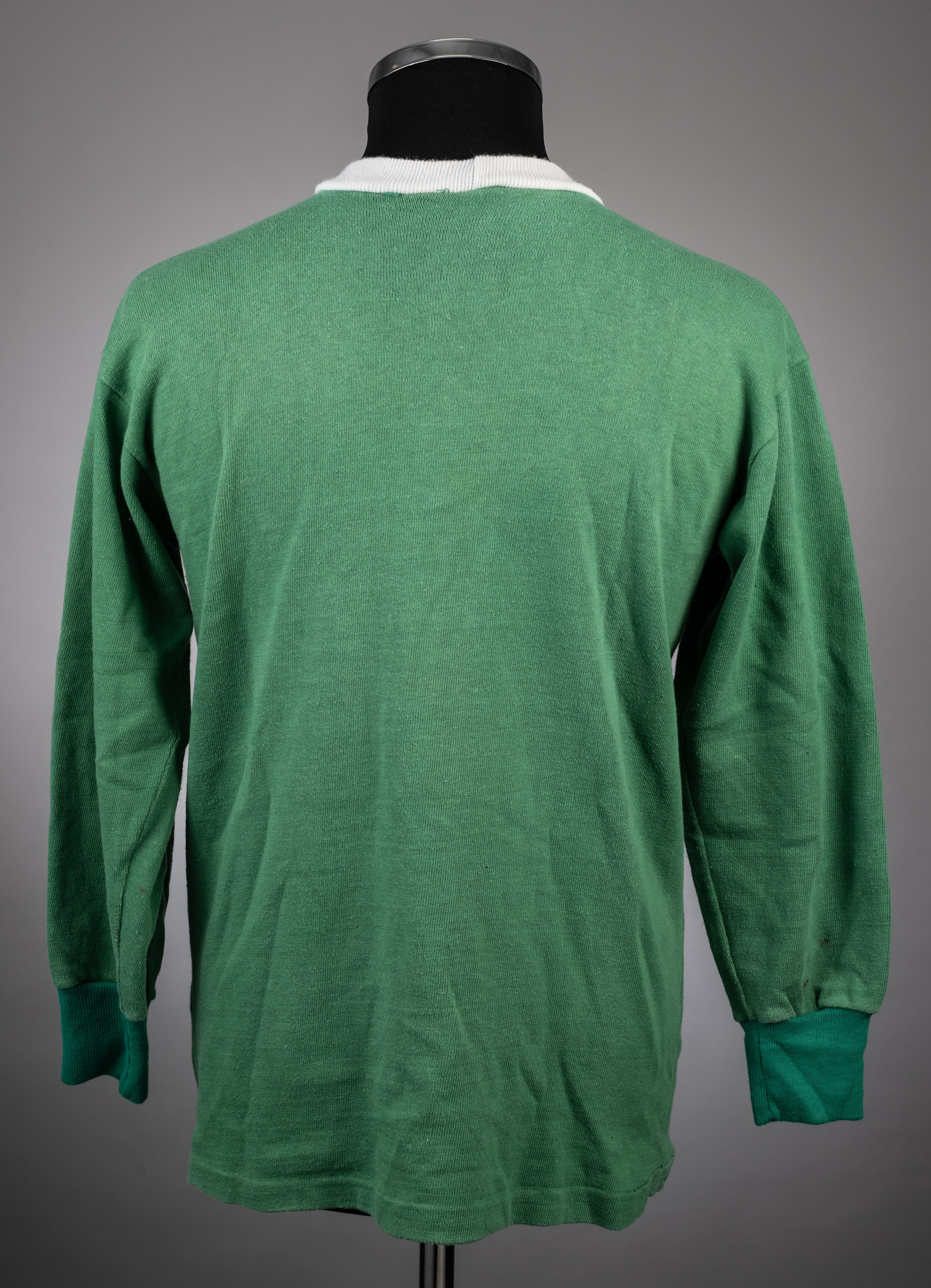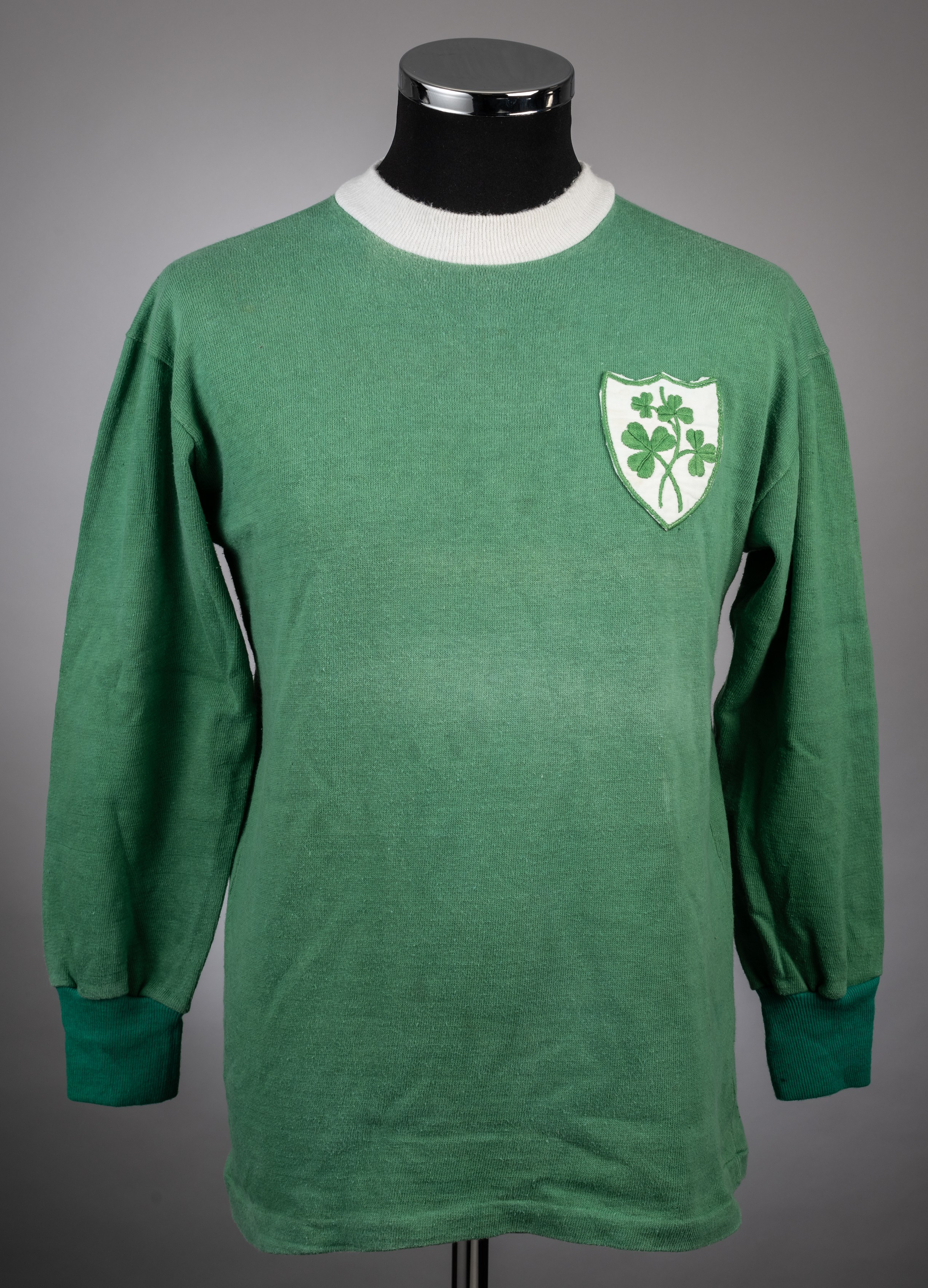 Rare green Republic of Ireland unnumbered jersey, late 1960s, no makers label with crew-neck collar and embroidered flour leaf clover badge and unus