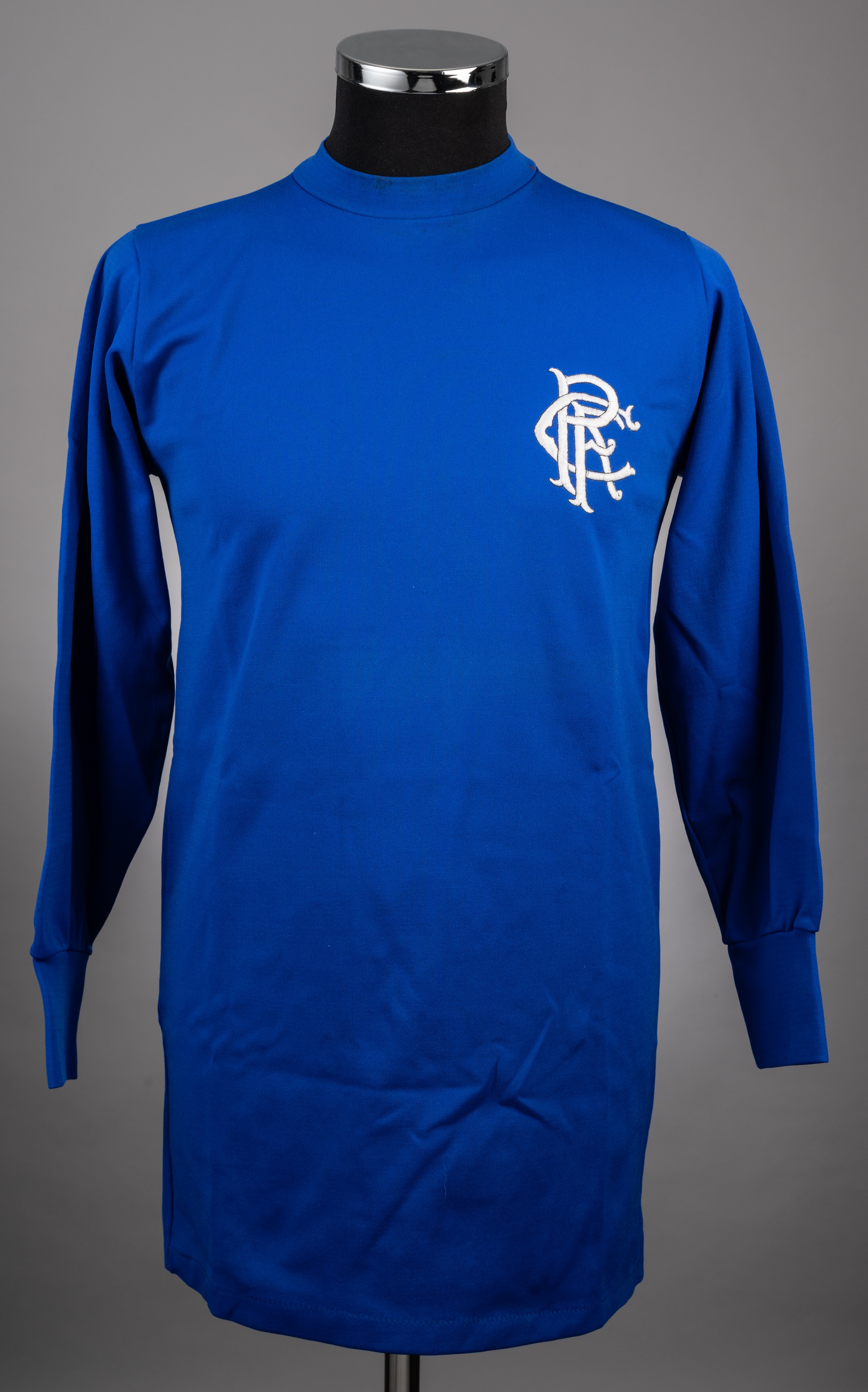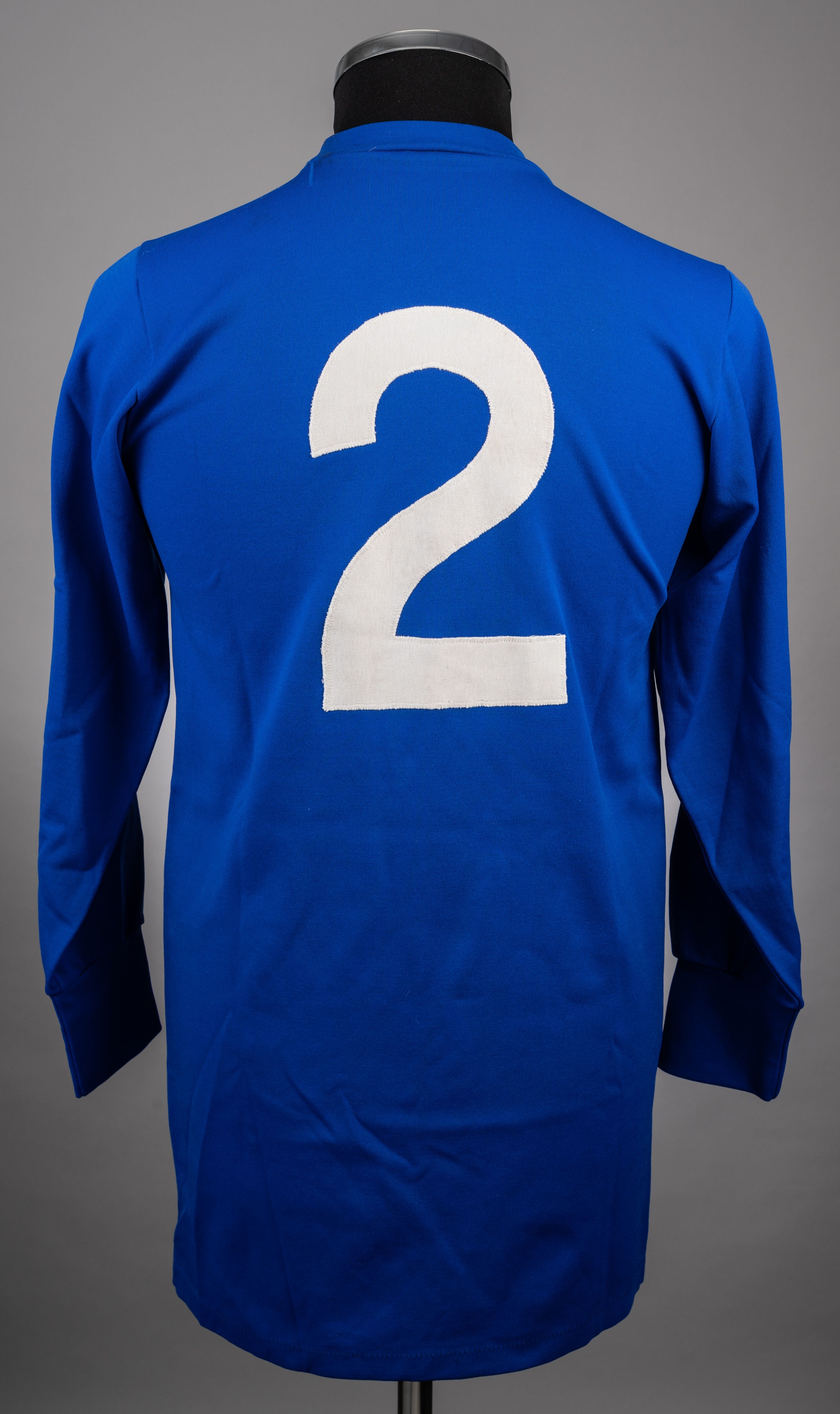 Rare late 1960s blue No.2 Rangers nylon jersey, Umbro, M, with crew-neck collar and embroidered badge inscribed RFC We are unable to identify who