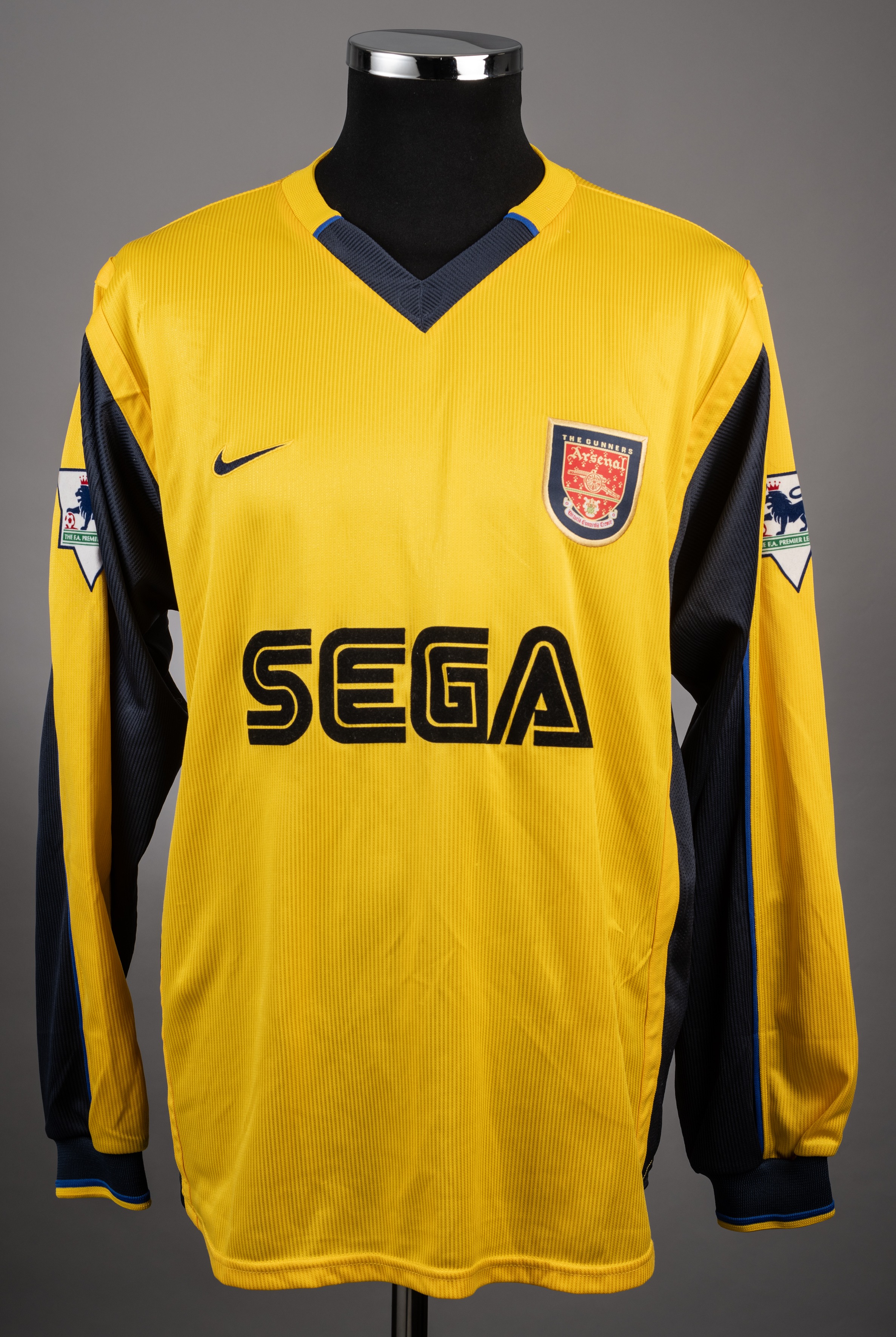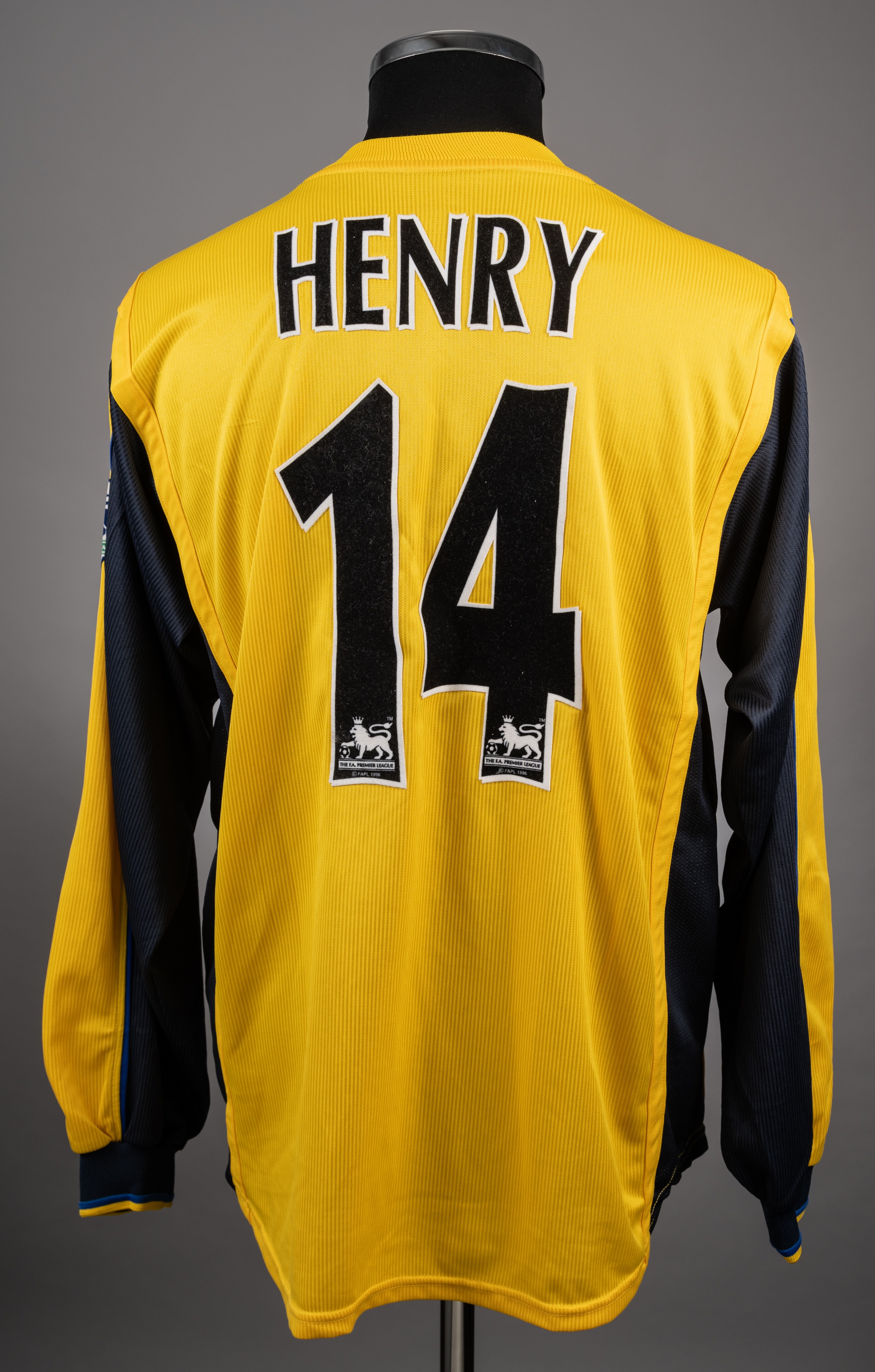 Thierry Henry yellow & dark blue Arsenal No.14 away jersey circa 2000, Nike, long-sleeved, Premier League sleeve badges, the reverse lettered HENRY Provenance: Graham Budd Auctions, 18th May 2015, lot 502.
