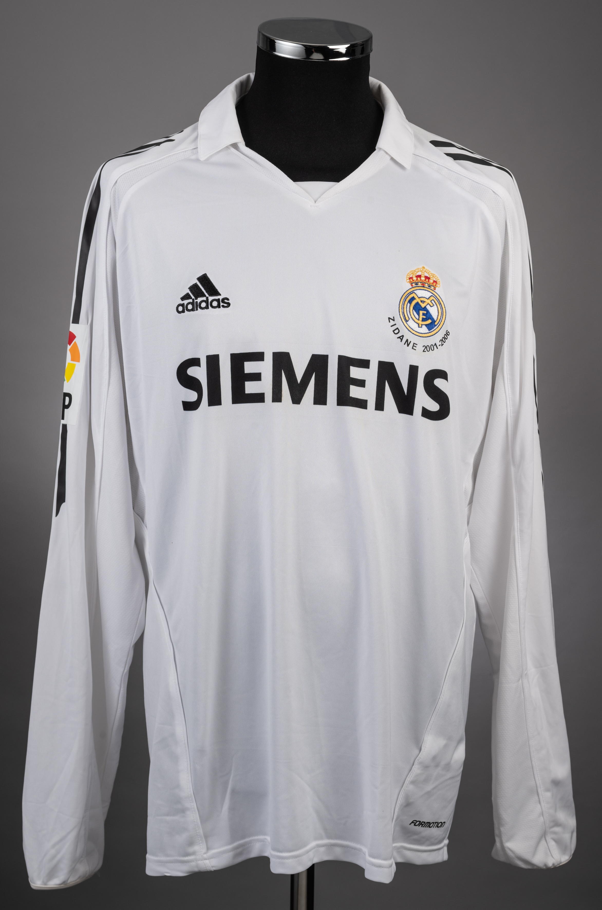 David Beckham white Real Madrid No.23 jersey, inscribed beneath club crest ZIDANE 2001-2006, long-sleeved, LFP badge to right sleeve, the reverse let