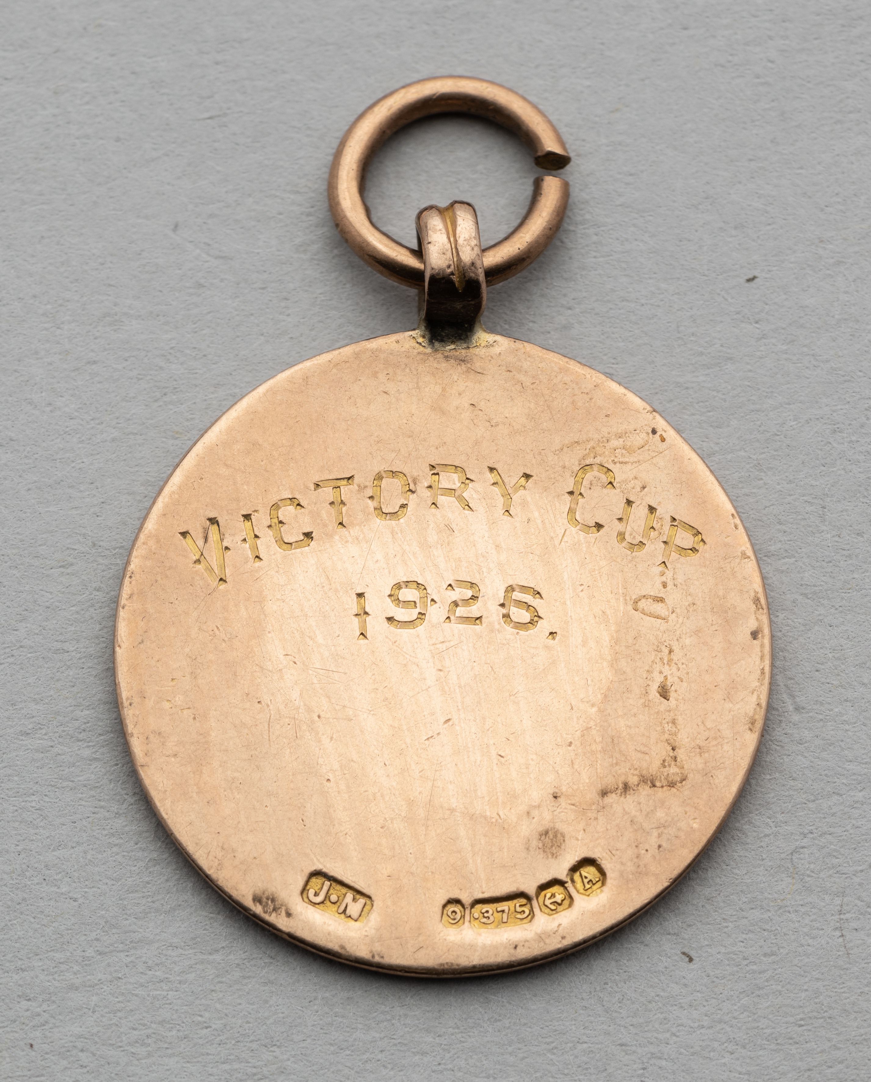 9ct gold St Albans FC Guernsey Tour medal 1926, inscribed with competition details, weight 6gms. An Easter Tour of the Channel Islands had become