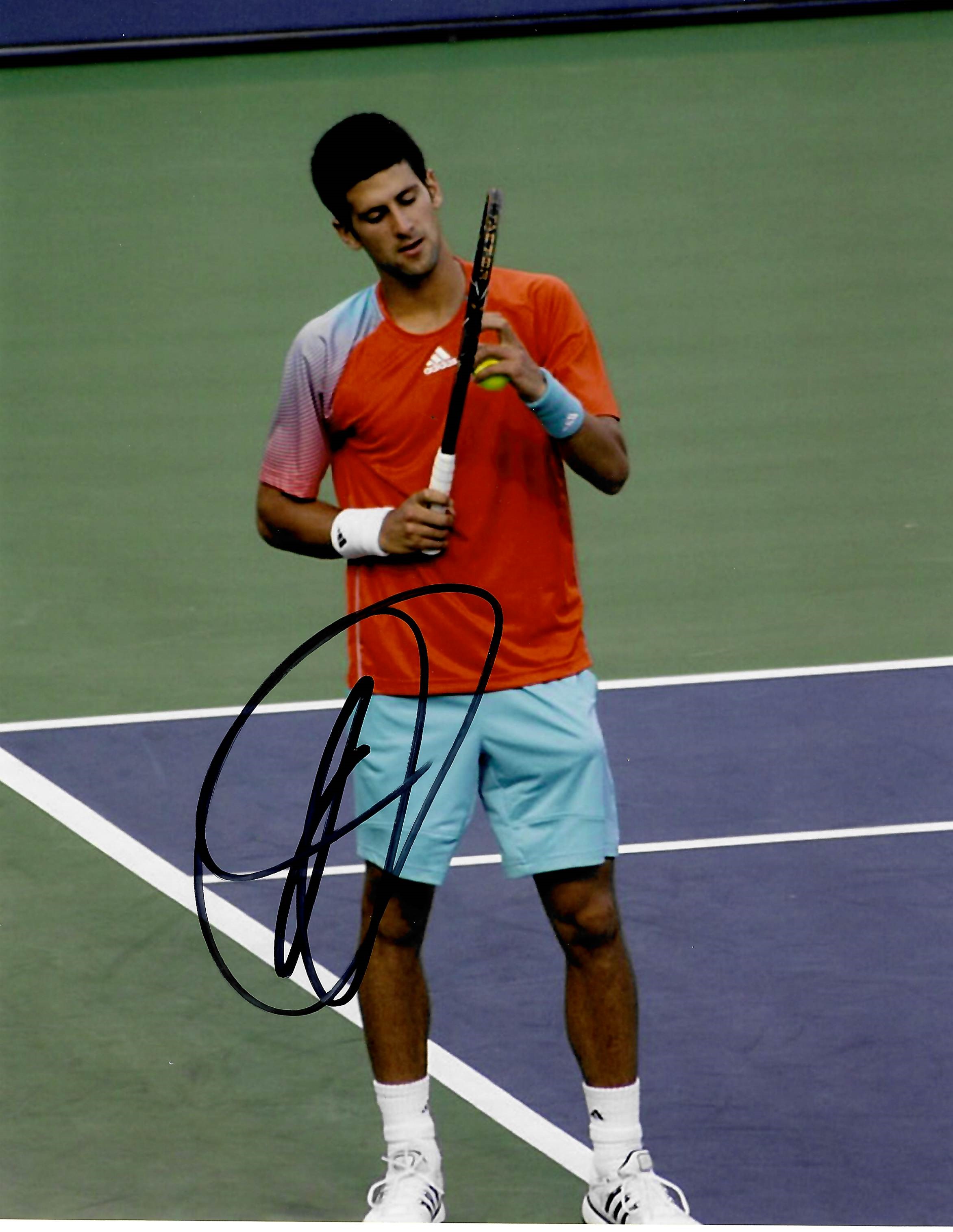 Novak Djokovic (Serbia) signed Australian Open tennis collection (2023 Champion), Novak Djokovic has won 22 Grand Slam tournaments, include Wimbledon seven times (2011, 2014, 2015, 2019, 2021 & 2022). Includes a signed Australian Open Wilson tennis ball, where he was champion in 2008, 2011, 2012, 2013, 2015, 2016, 2019, 2020, 2021 & 2023, signed with black sharpie and signed action 8 by 10in. tennis photo, signed with black sharpie. Also includes Certificate of Authenticity and photo proof of signing, (3)